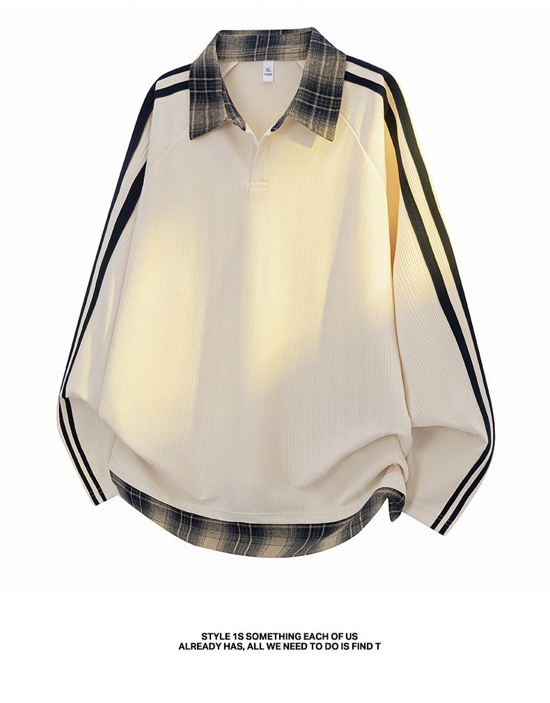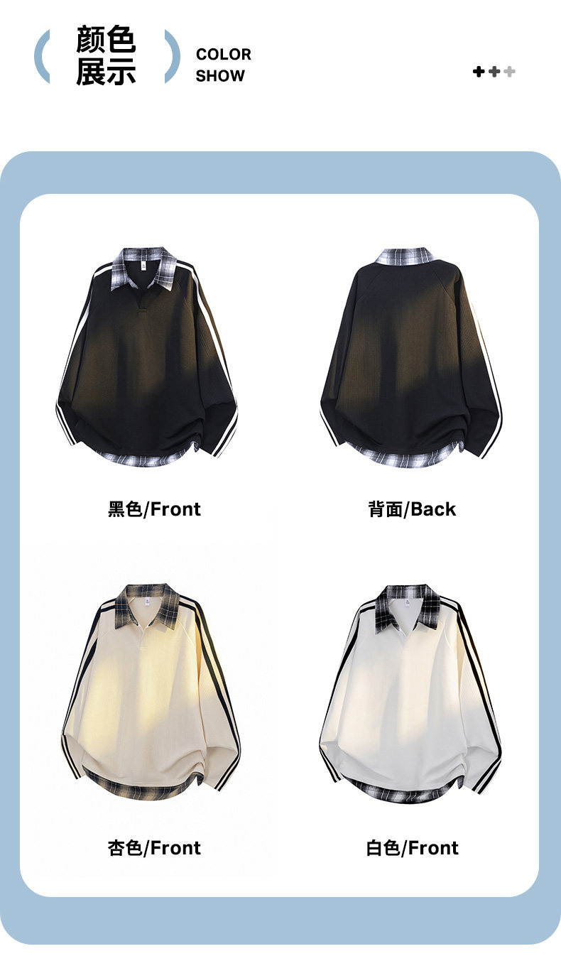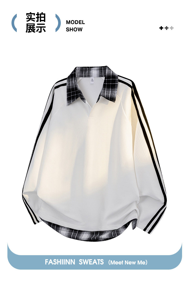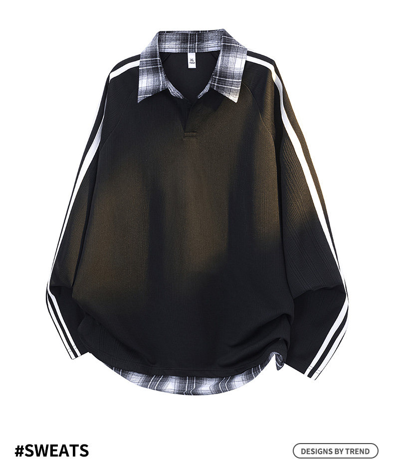 WASSUP GLORY拼接條紋衛衣男秋季美式潮牌寬鬆polo衫繙領長袖t恤