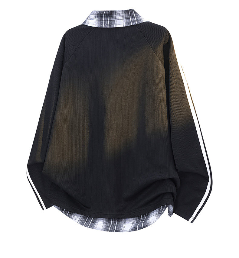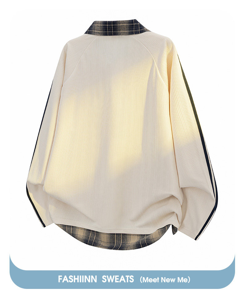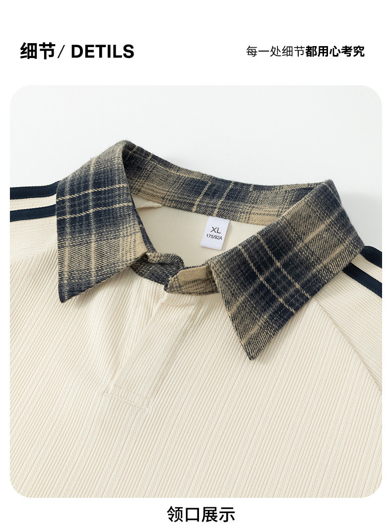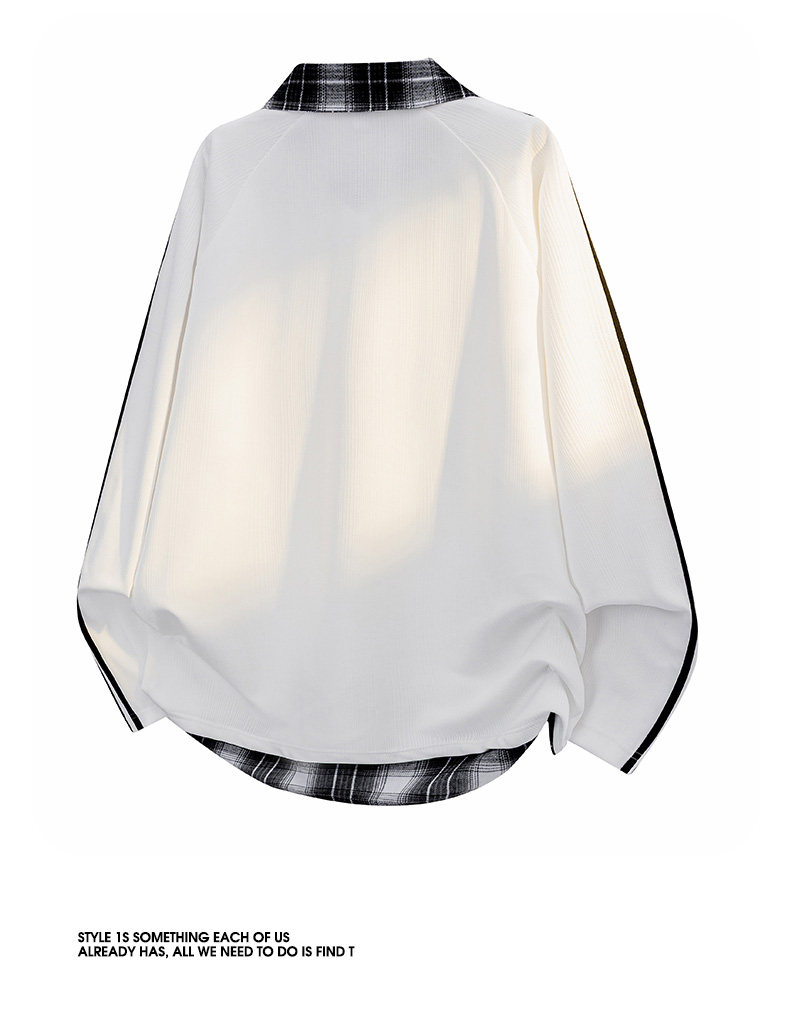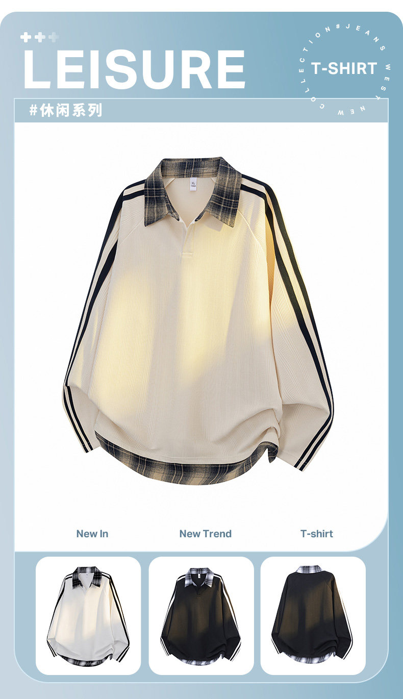 WASSUP GLORY拼接條紋衛衣男秋季美式潮牌寬鬆polo衫繙領長袖t恤