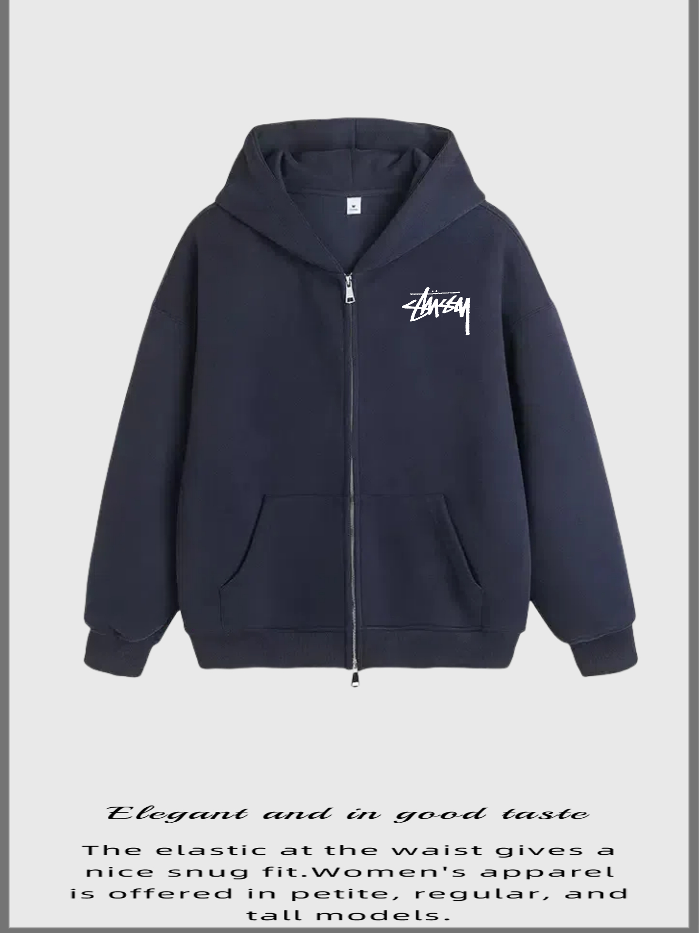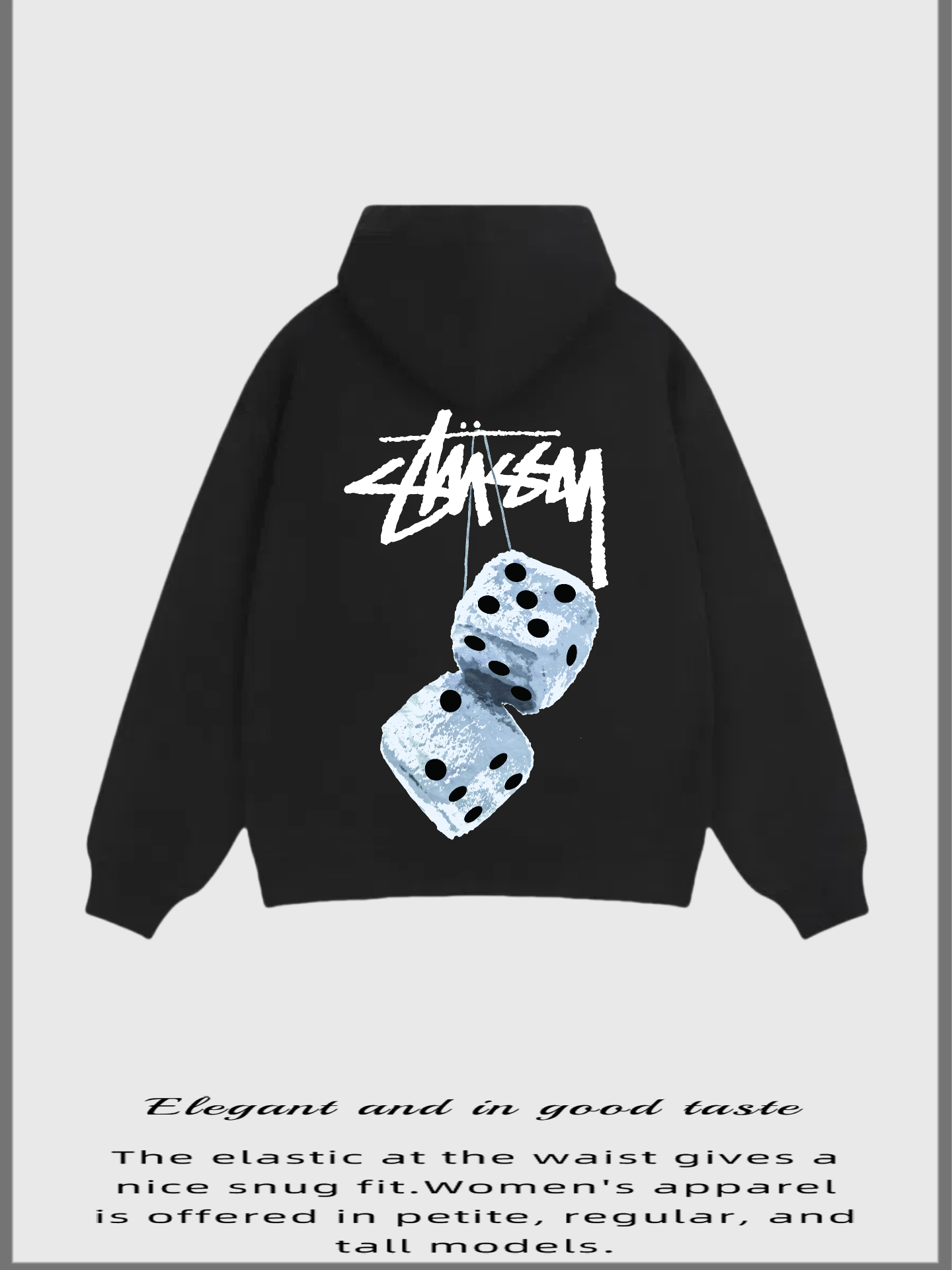 瑞斯圖西STUSSY骰子圖案連帽衛衣外套寬松休閒百搭拉鍊外套男女