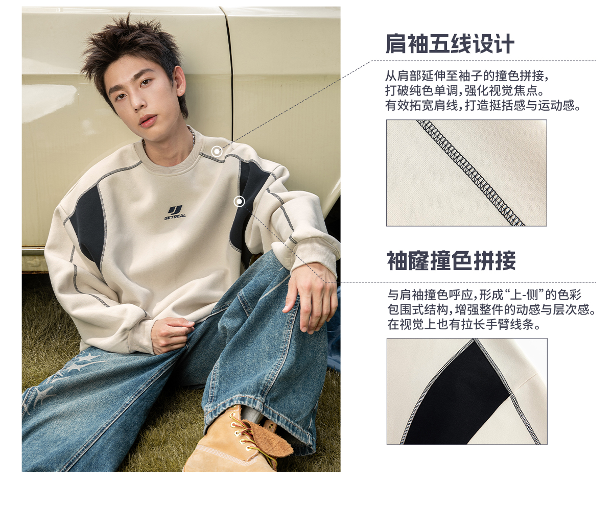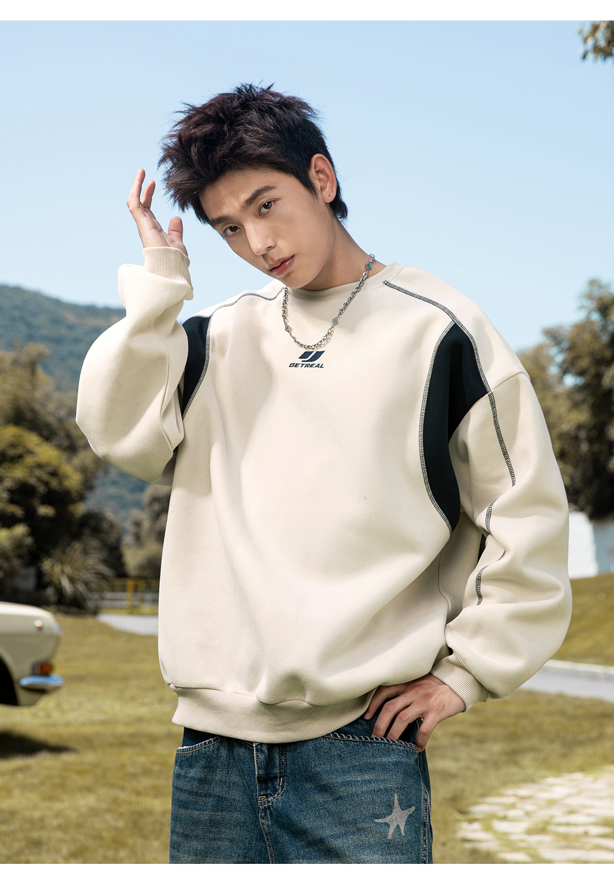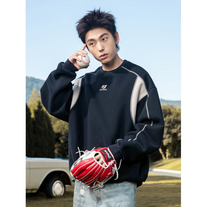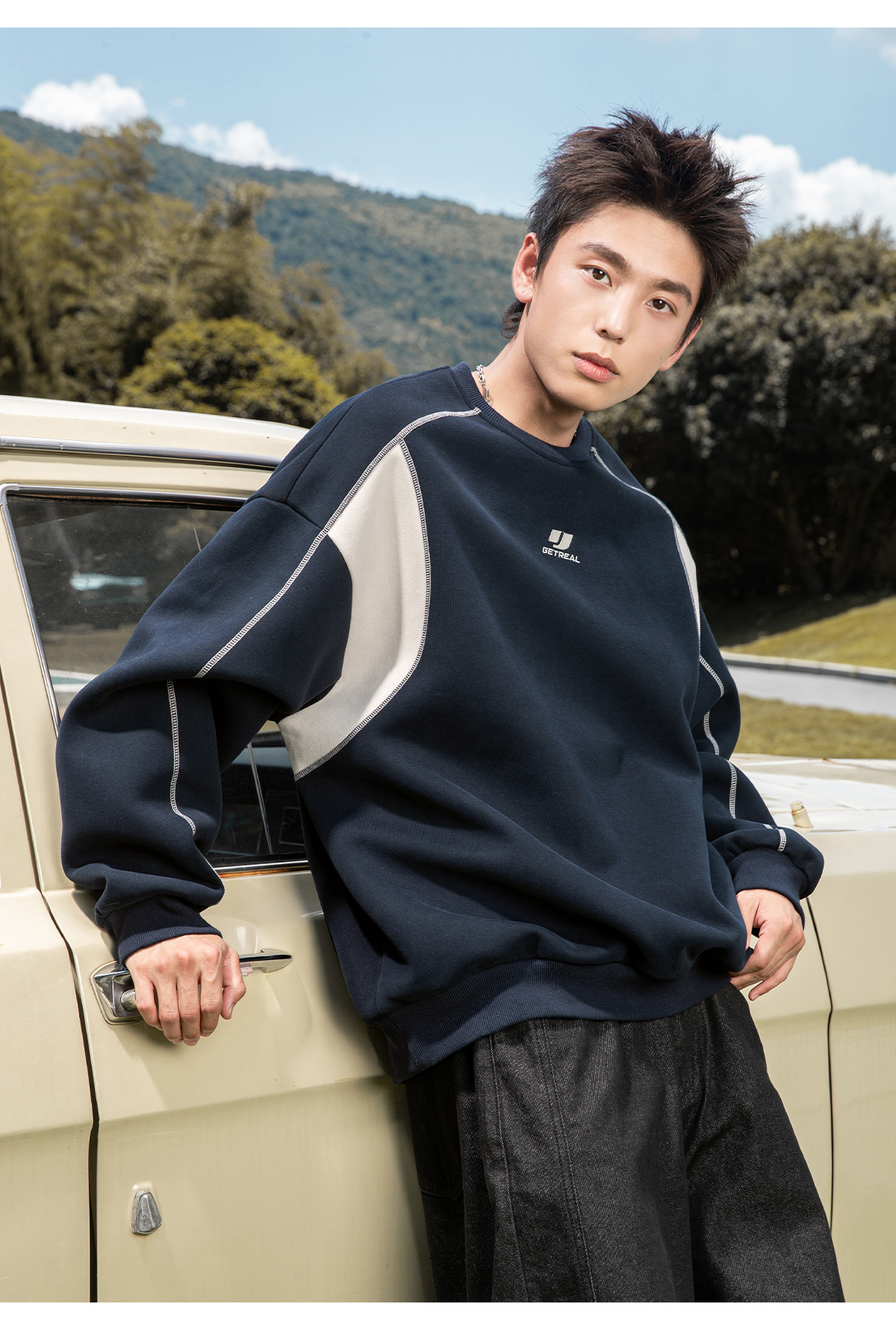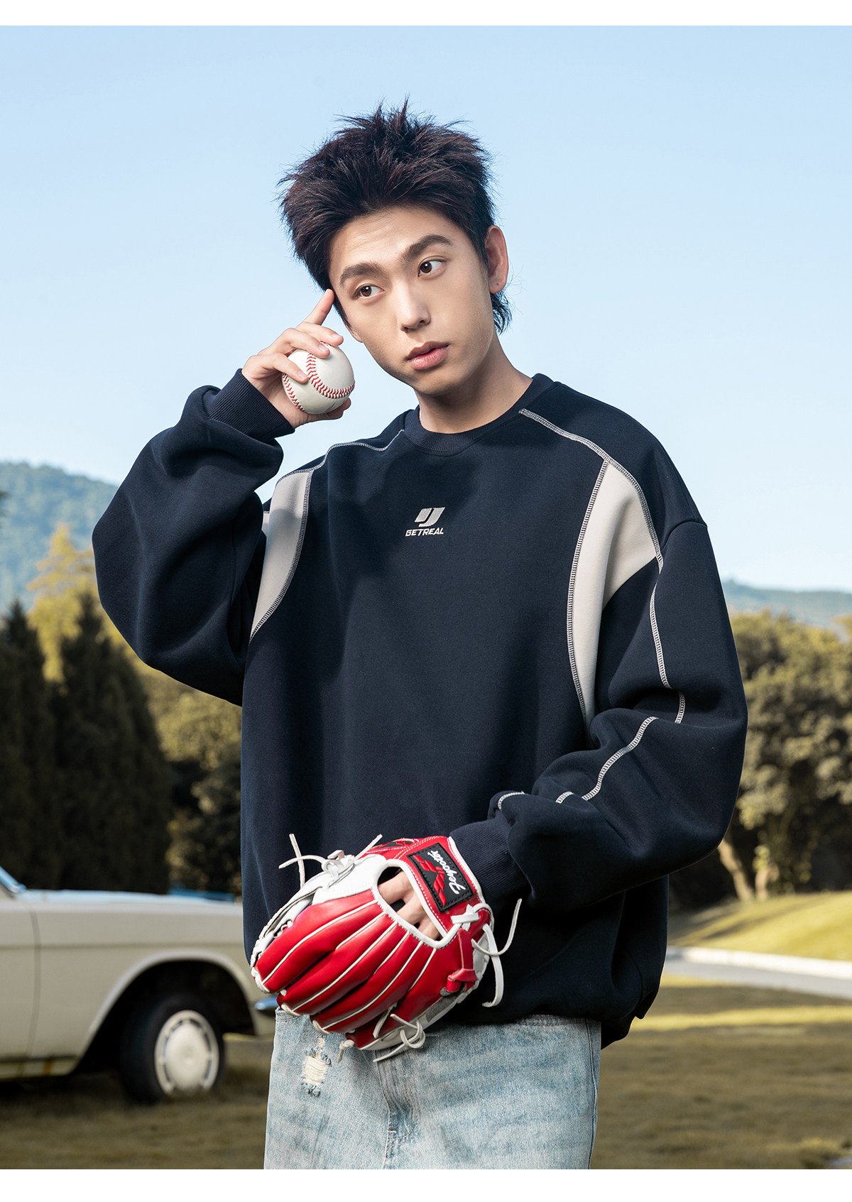 400G重磅圓領撞色衛衣冬季高街潮牌寬松運動上衣松弛感休閒外套男
