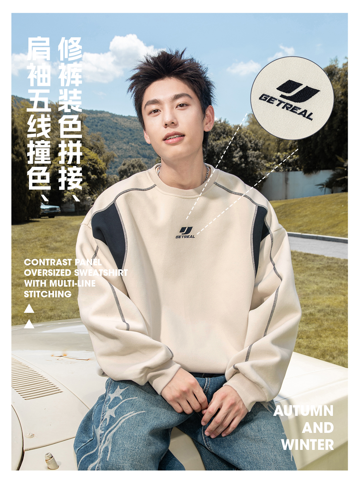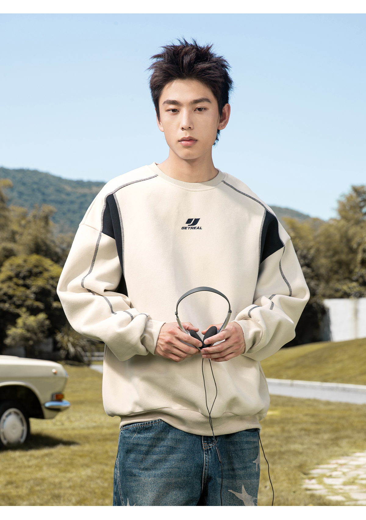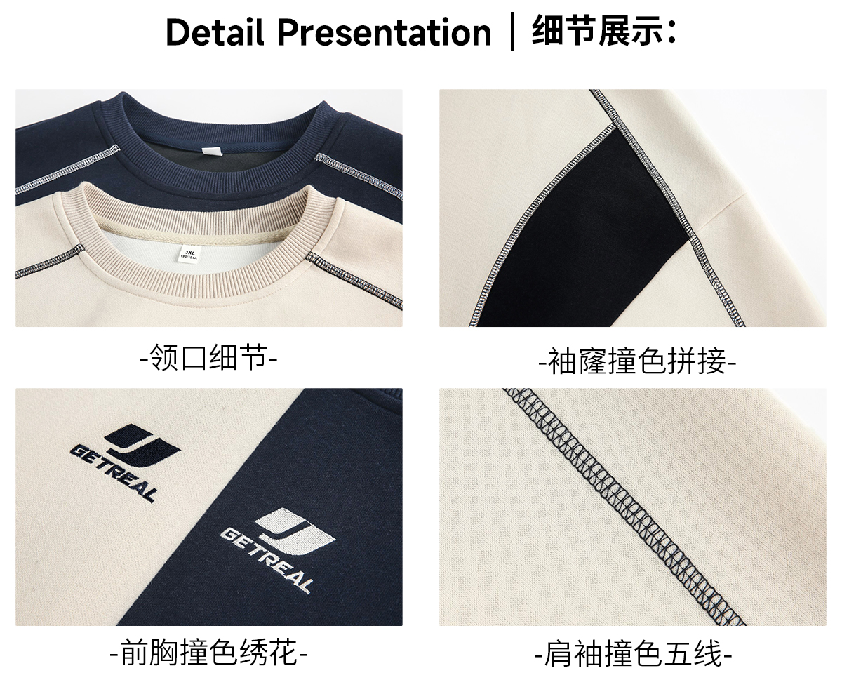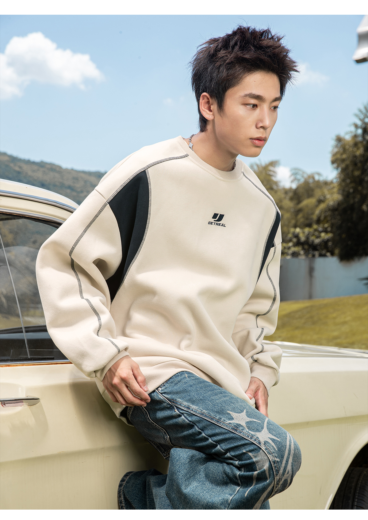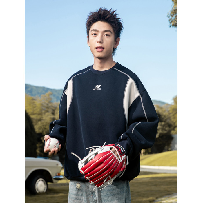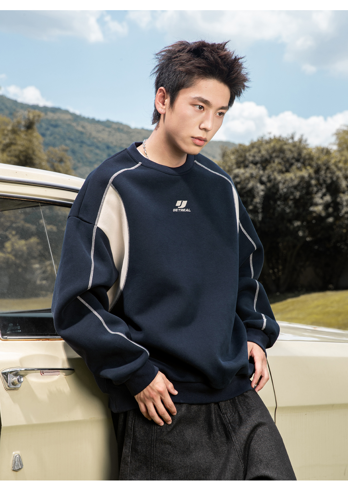 400G重磅圓領撞色衛衣冬季高街潮牌寬松運動上衣松弛感休閒外套男