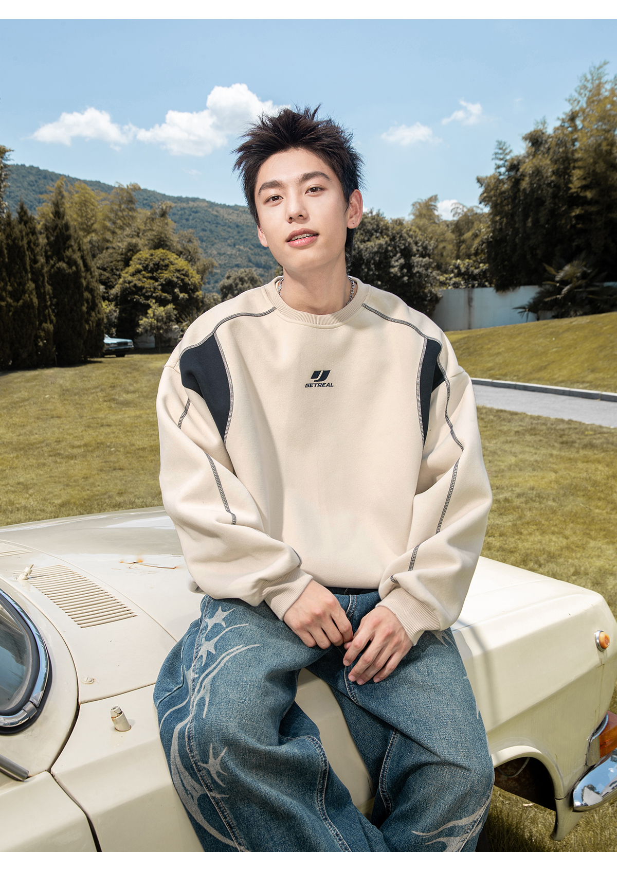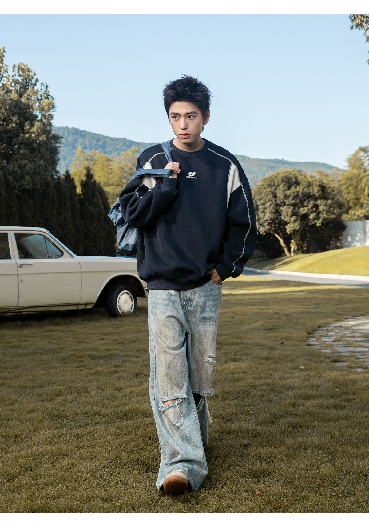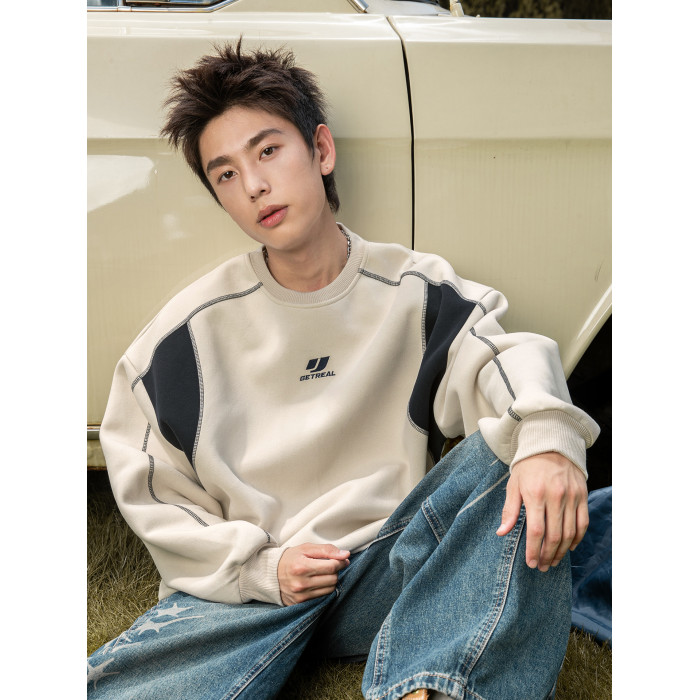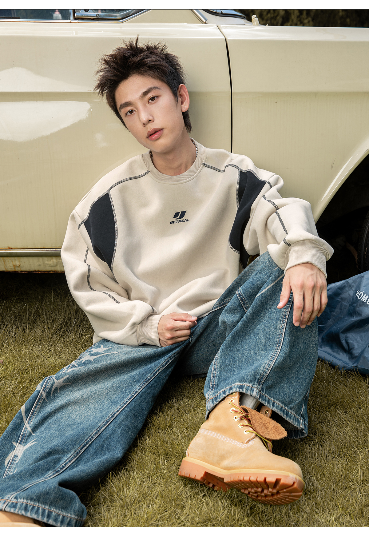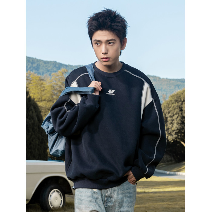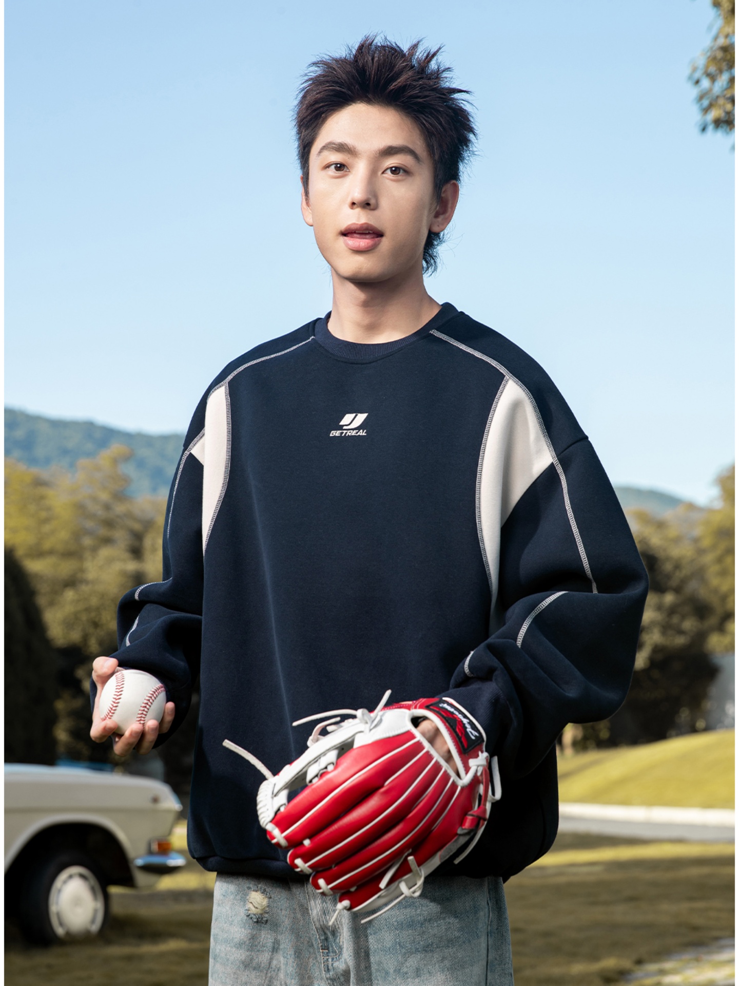400G重磅圓領撞色衛衣冬季高街潮牌寬松運動上衣松弛感休閒外套男