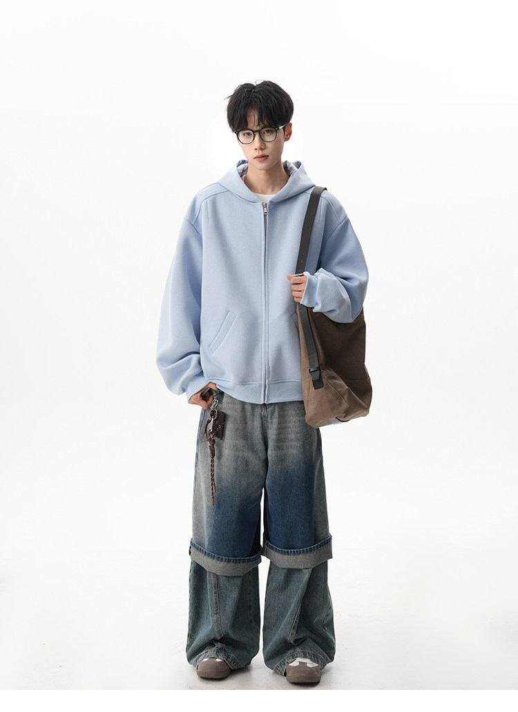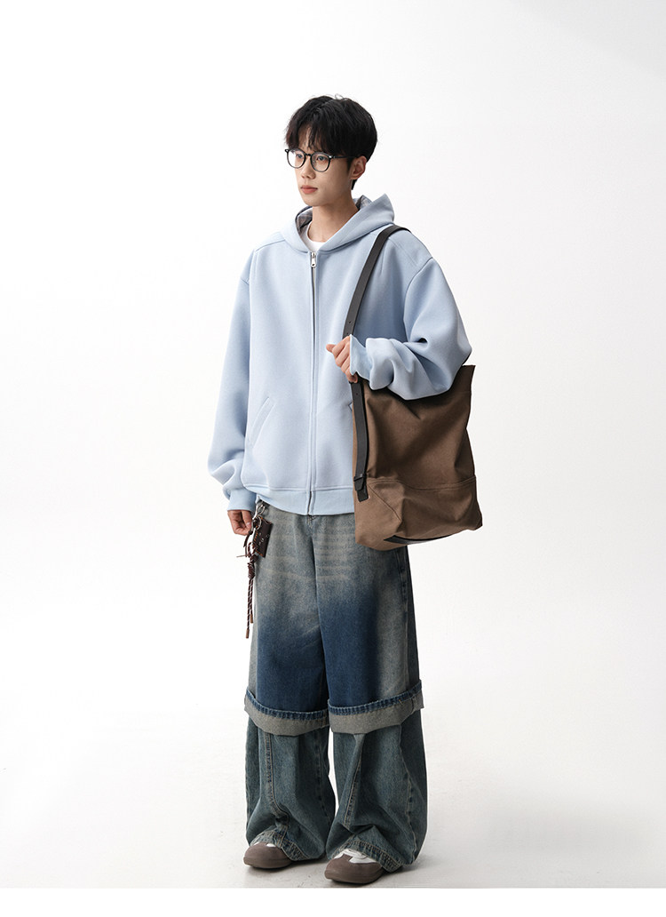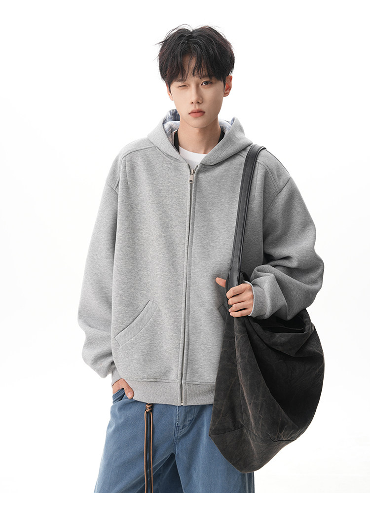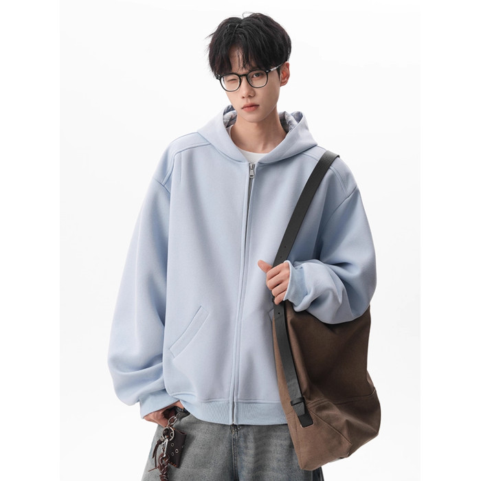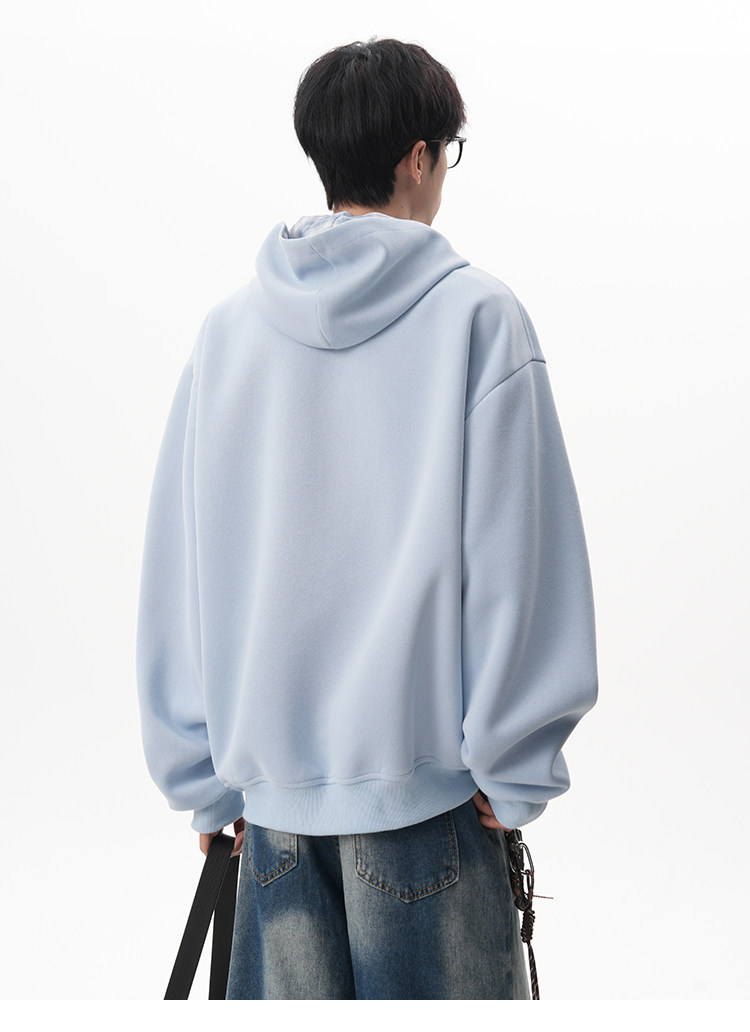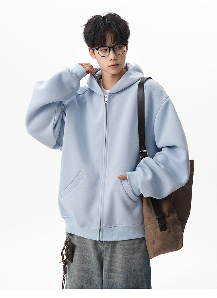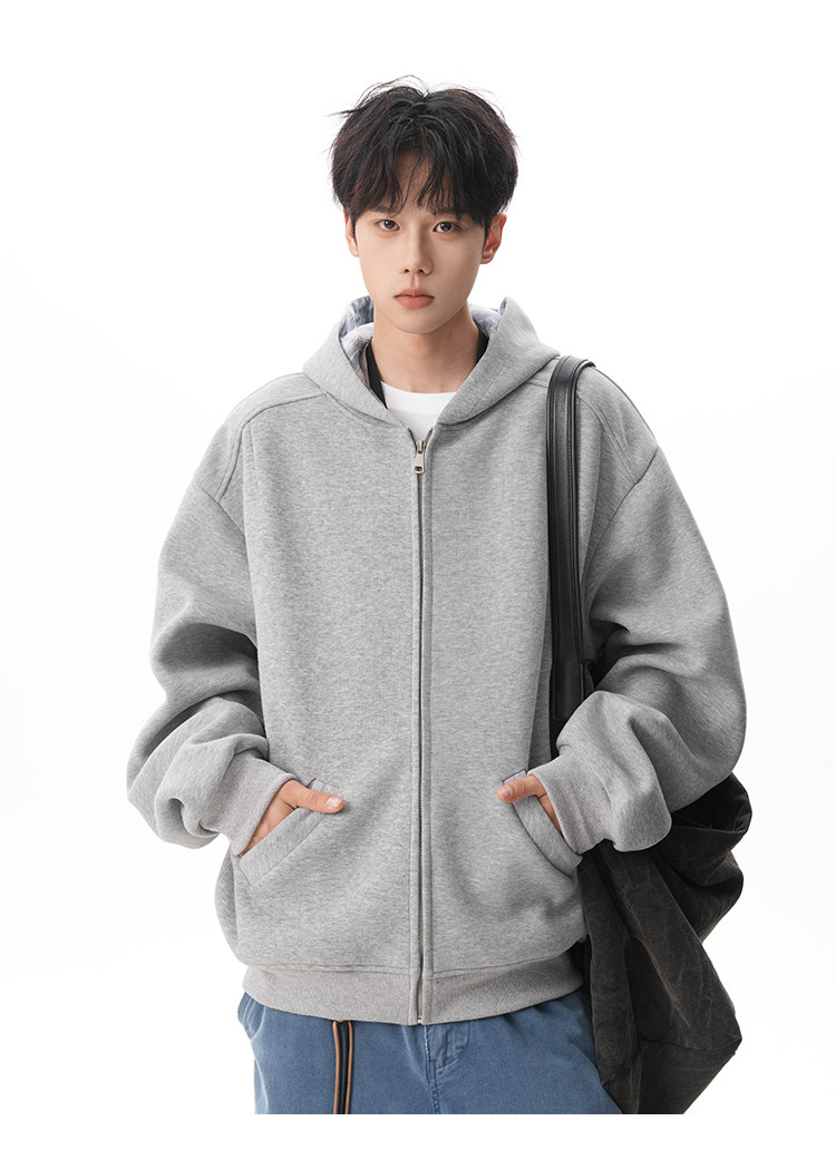 500G重磅美式格紋拼接連帽衛衣男秋季慵懶寬松外套休閒運動夾克