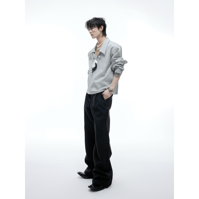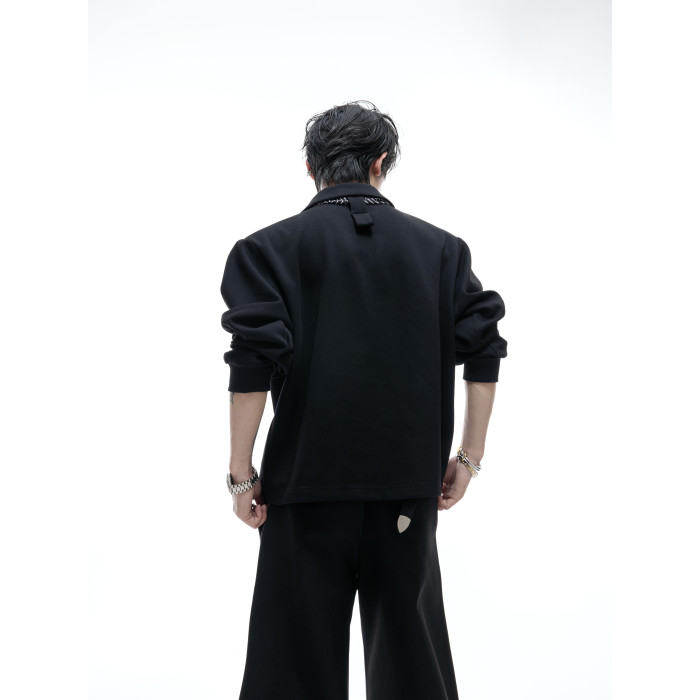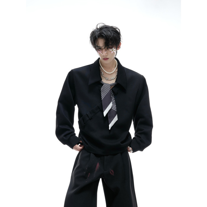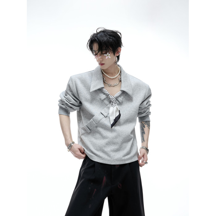 ArguE CulturE歸韻*條紋領巾飄帶拼接V領POLO衫寬松高級長袖衛衣