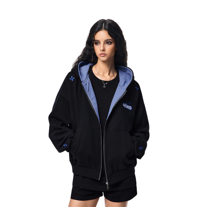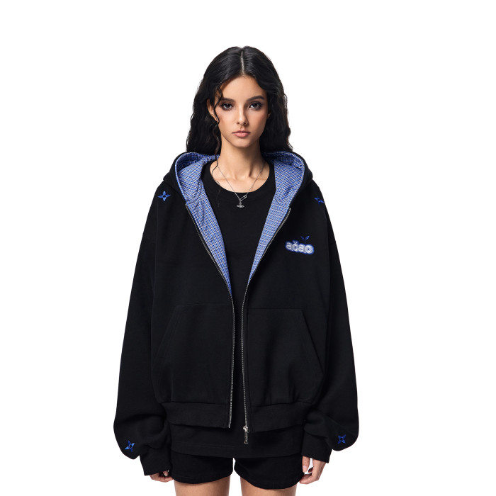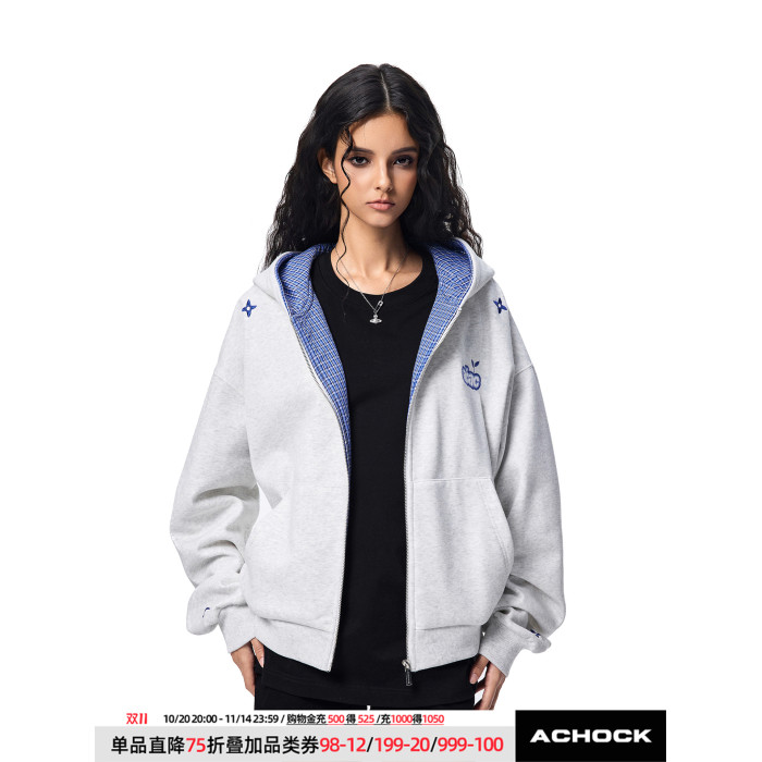 【Achock官方店】美式復古新款格子拼接開衫外套潮牌重磅情侶衛衣