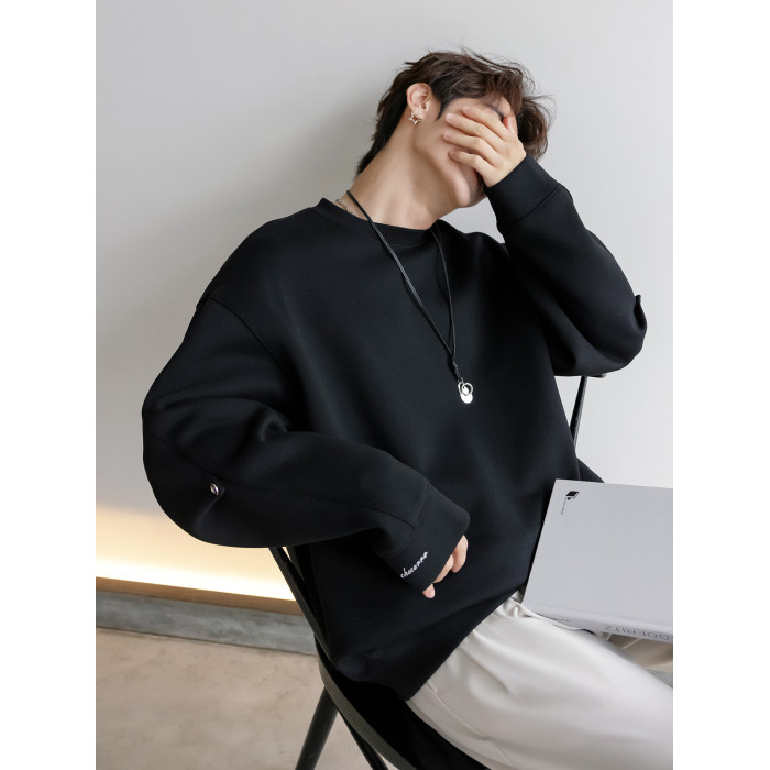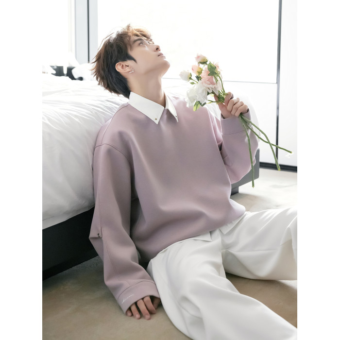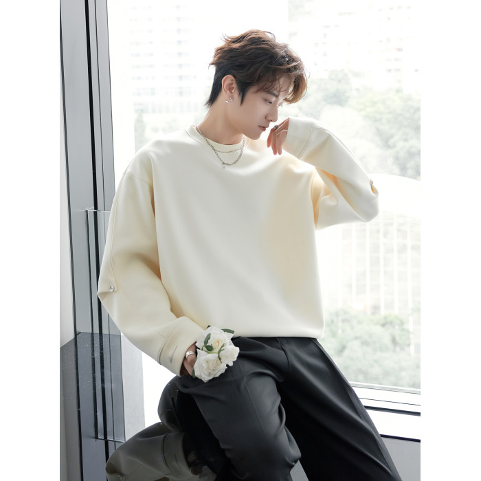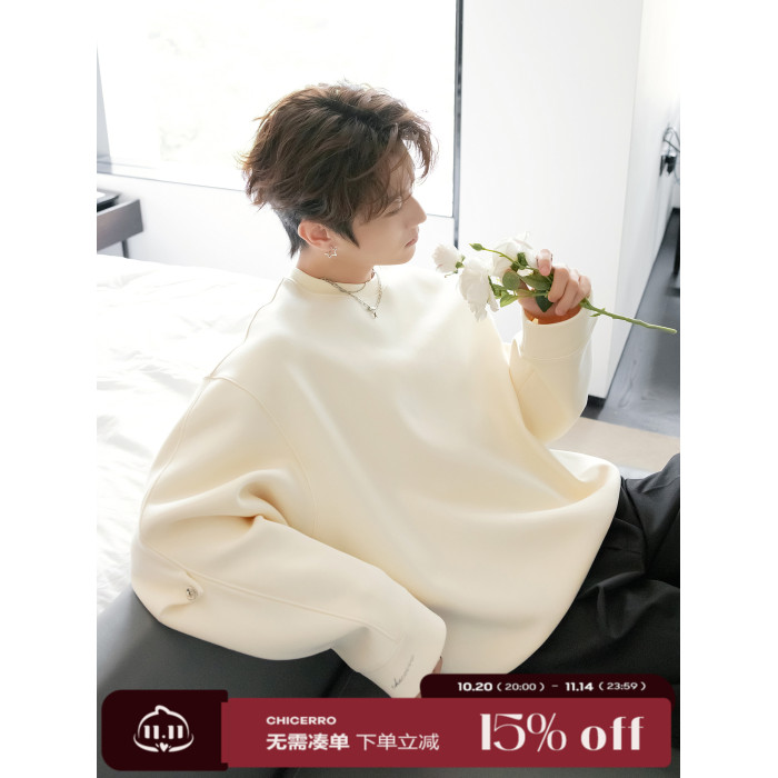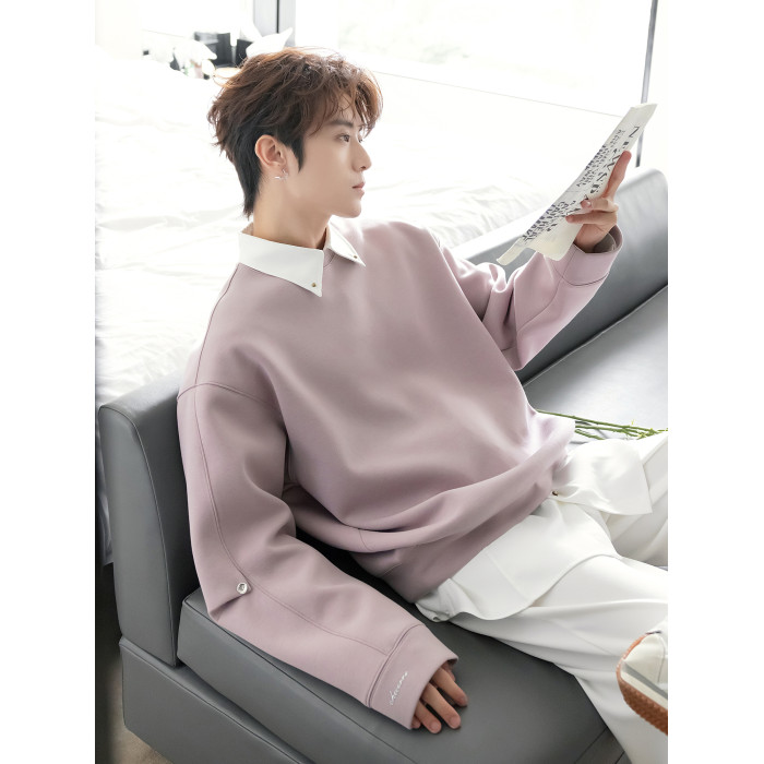 CHICERRO西西裡男裝粉色基礎款學院風金屬釦圓領衛衣男潮百搭高級