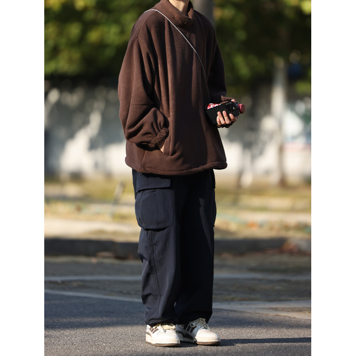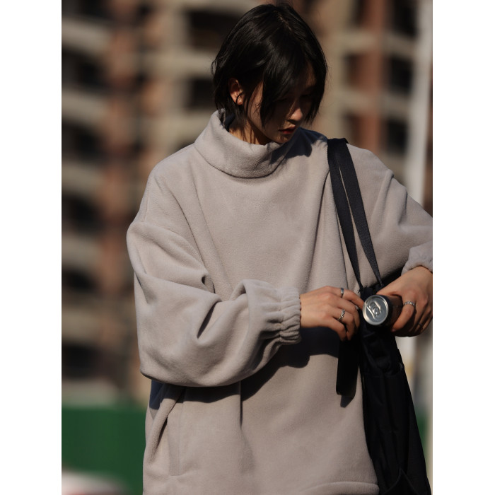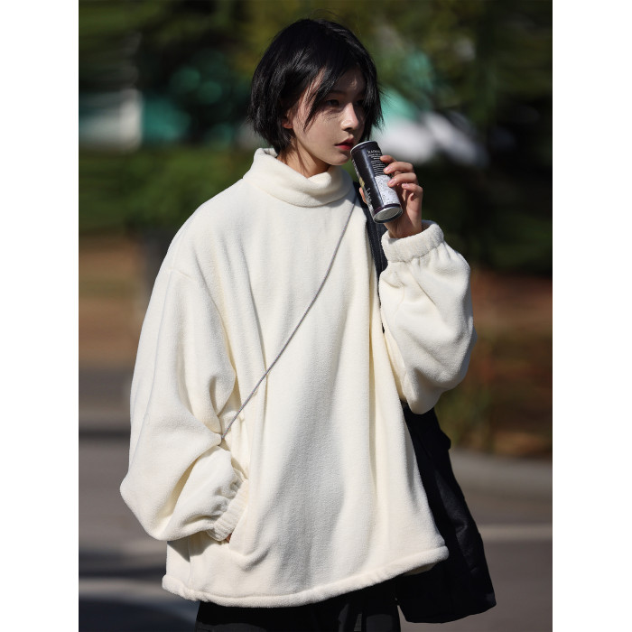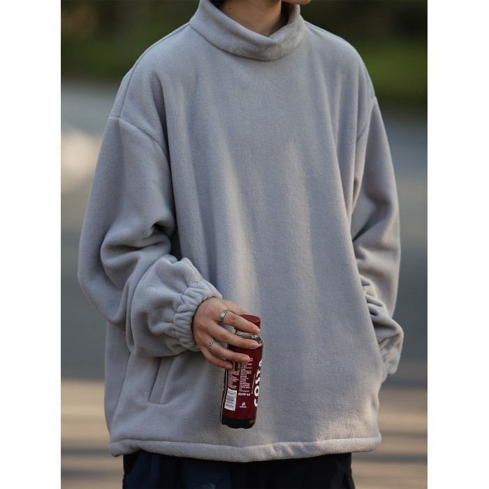 Nobodyknows 春秋基礎日系復古半高領搖粒絨保暖內搭純色情侶衛衣