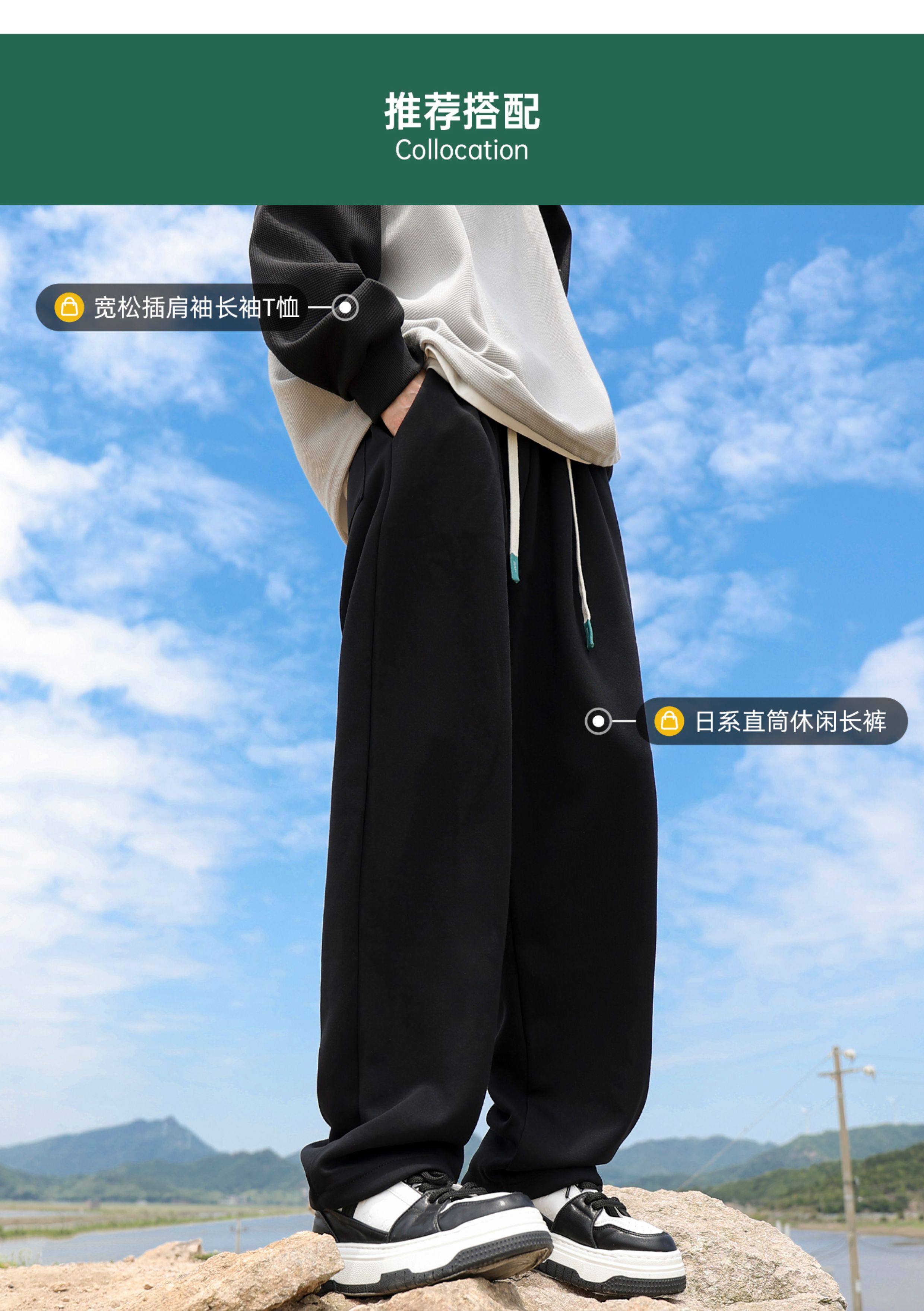 @港仔文藝男 灰色衛褲男春季男款直筒休閒運動長褲男生寬鬆褲子