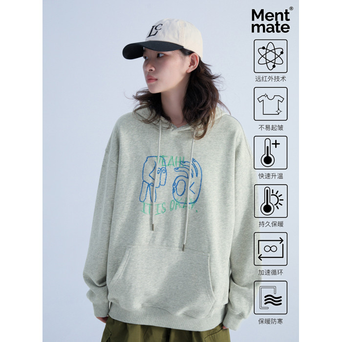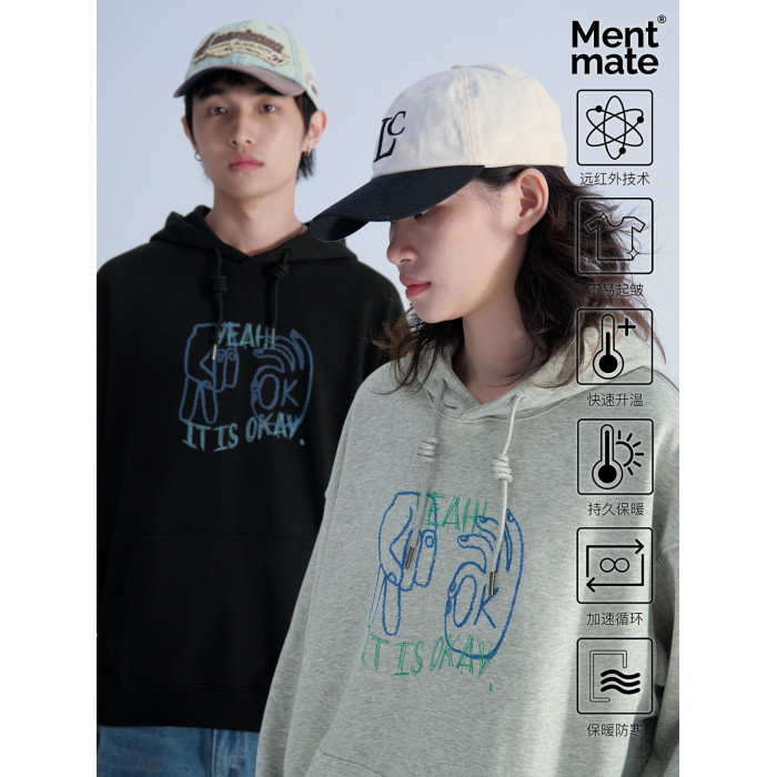 Mentmate 秋冬小衆個性印花帽衫 男女情侶松弛感BF連帽衛衣上衣