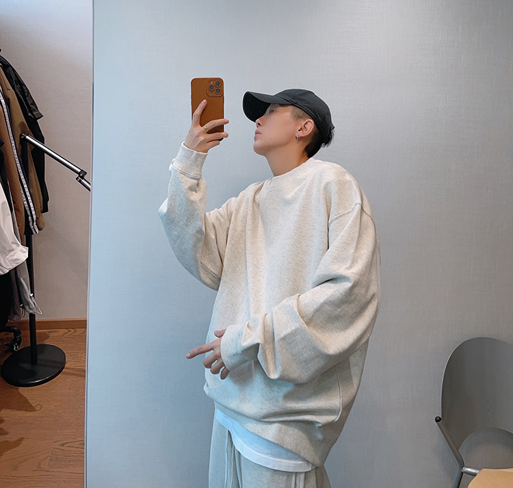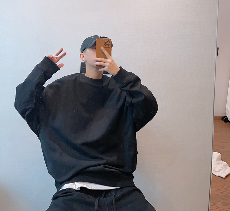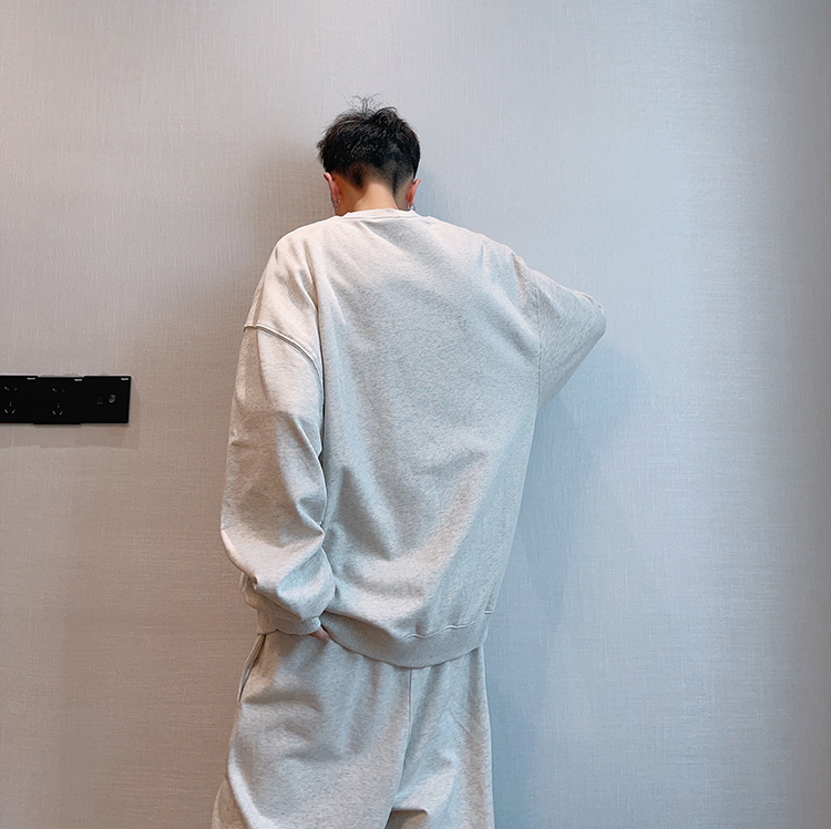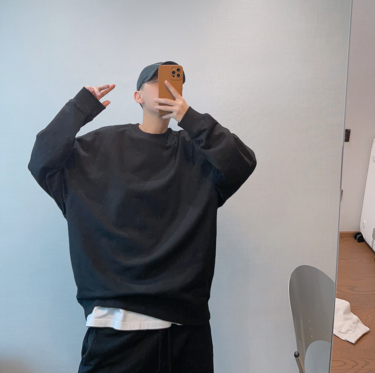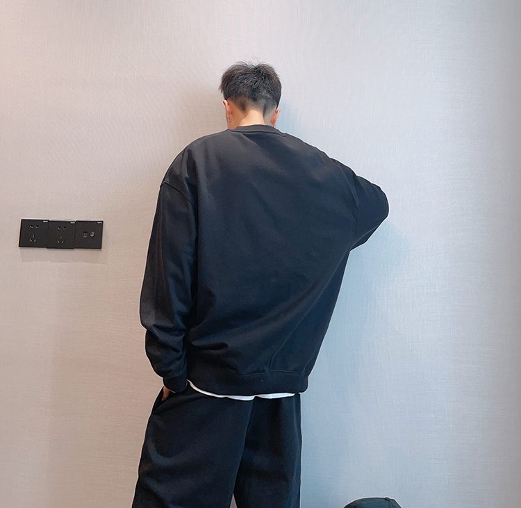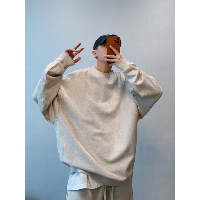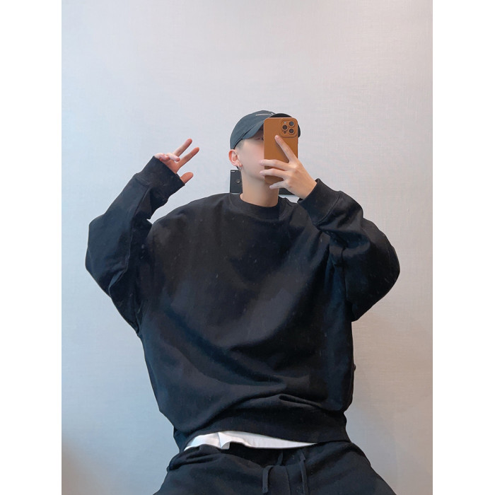 dannyandzee秋季潮牌百搭純色寬松330g毛圈棉套頭情侶圓領衛衣男