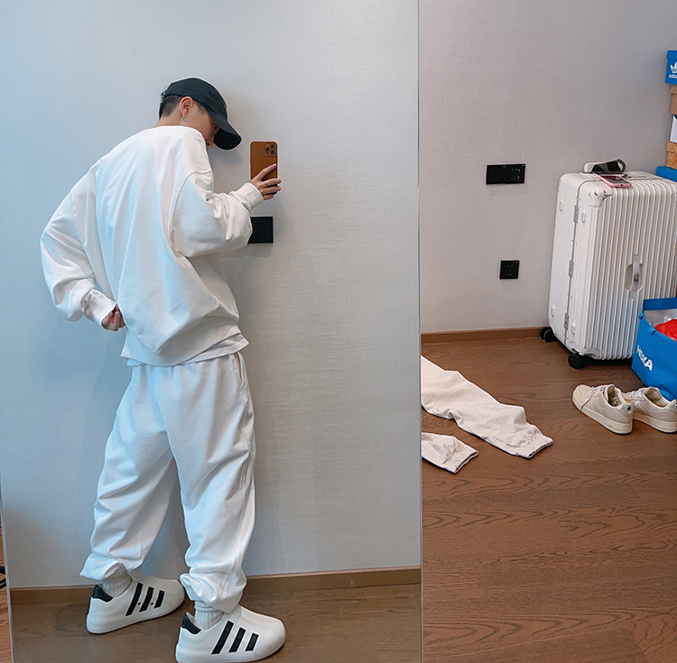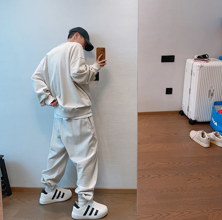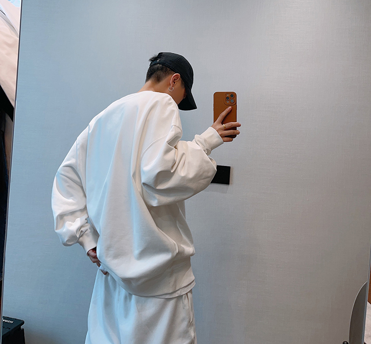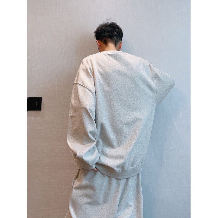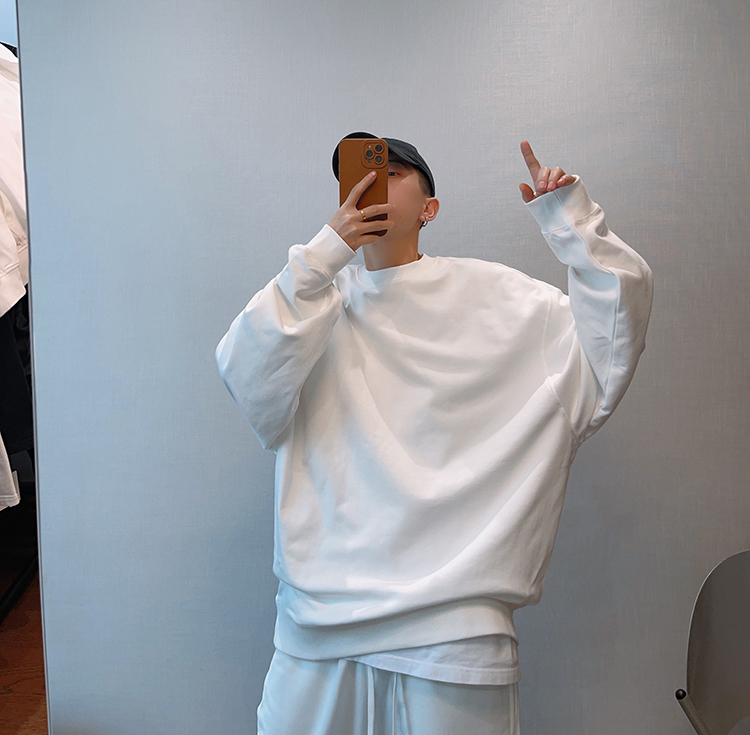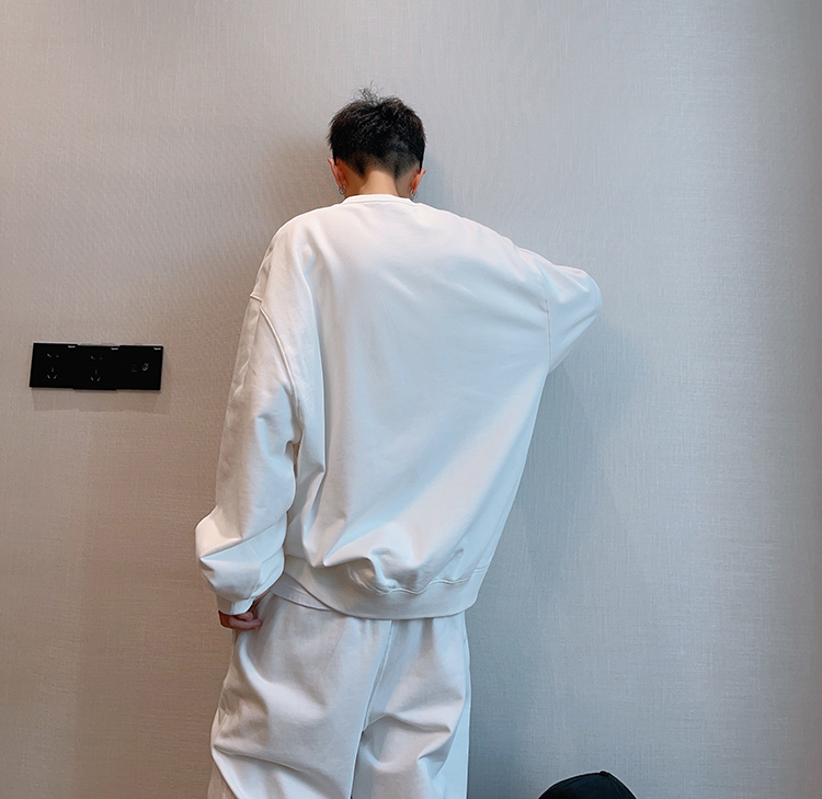 dannyandzee秋季潮牌百搭純色寬松330g毛圈棉套頭情侶圓領衛衣男