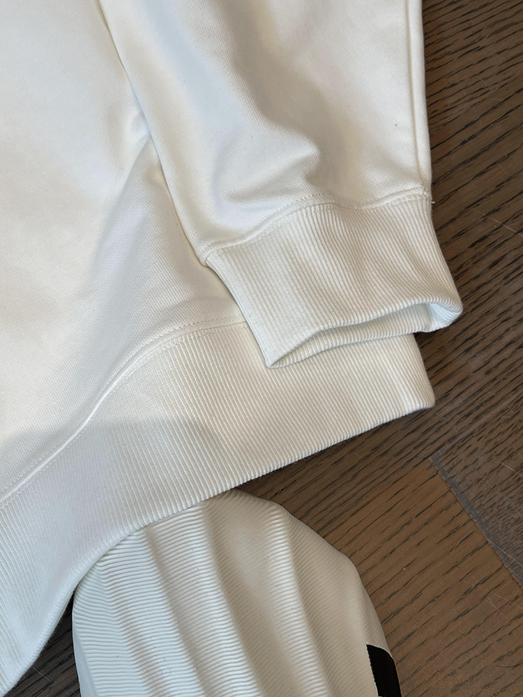 領口二本針 內領包條固定 袖口肩膀下擺 雙線
