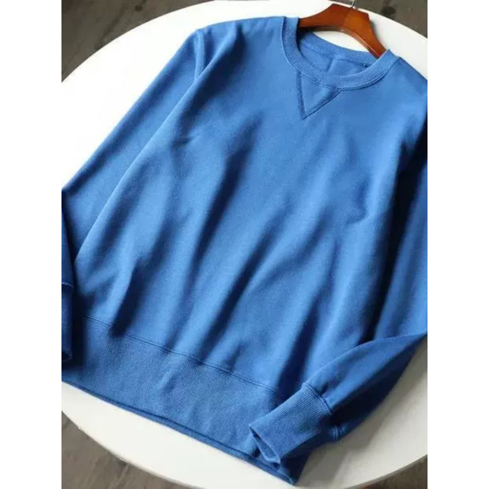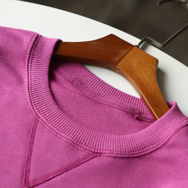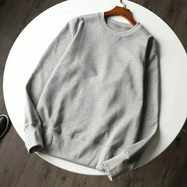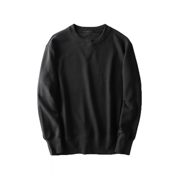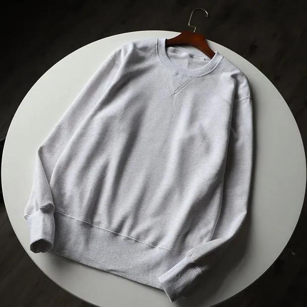 340g重磅純色長袖毛圈布圓領衛衣米白色春季寬松簡約男女款上衣