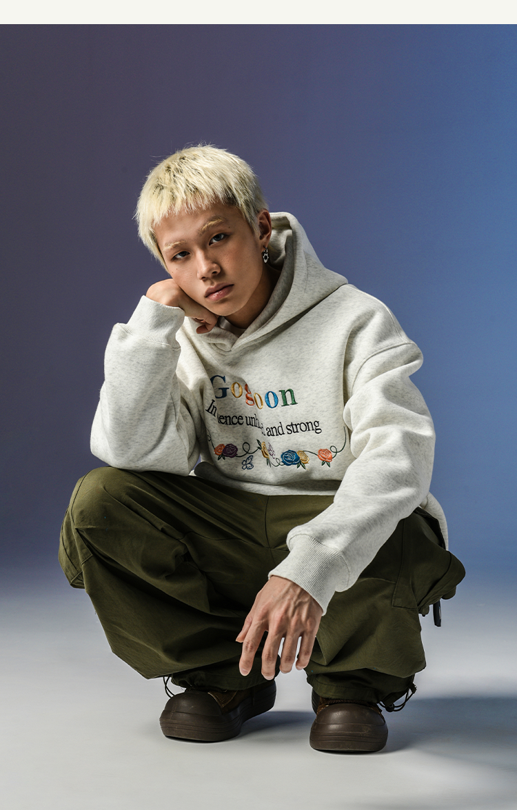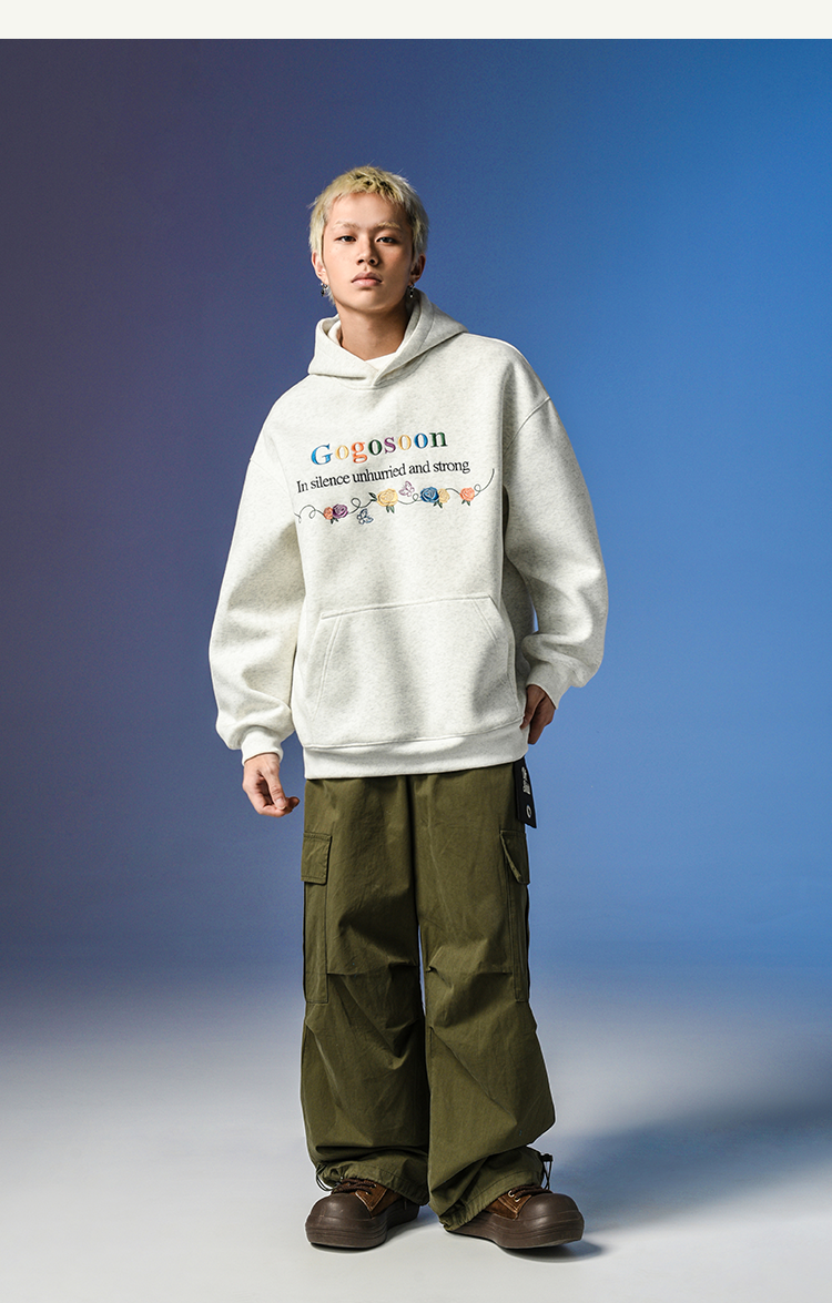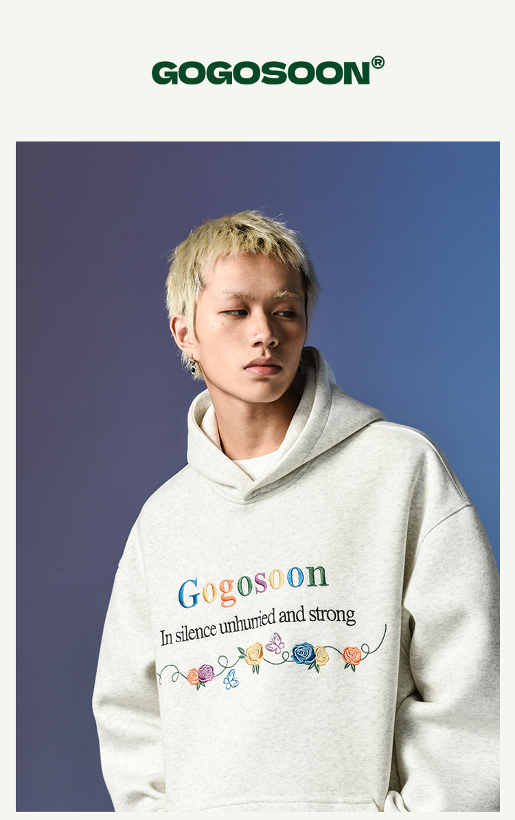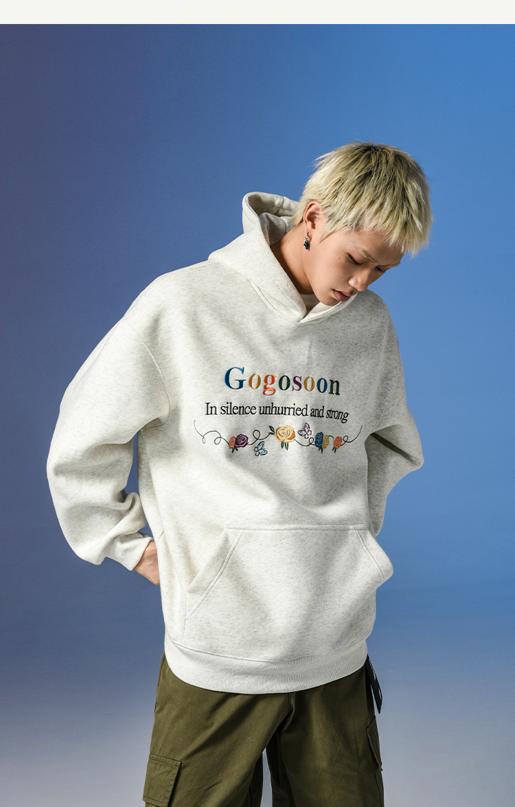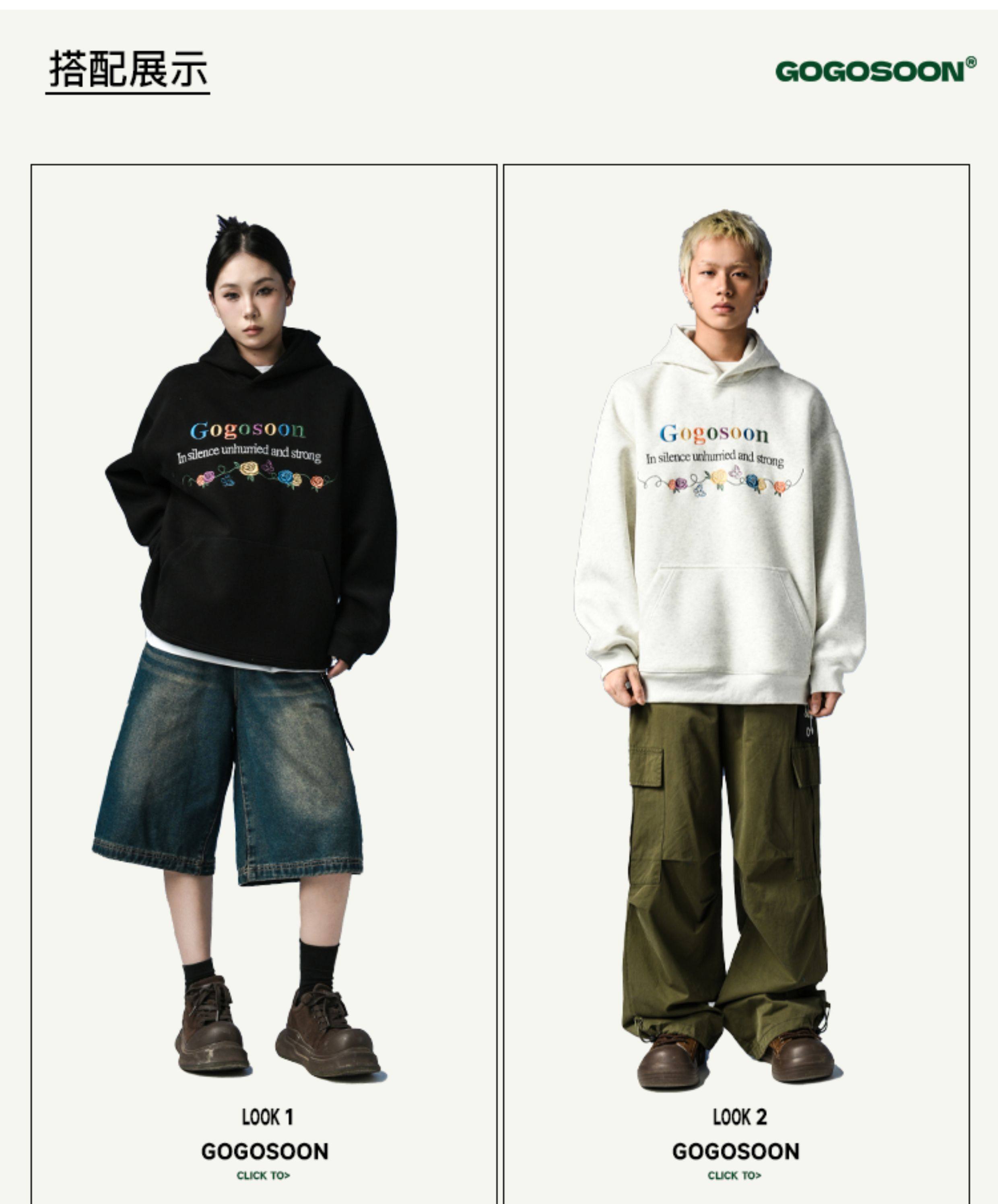 張桂源同款GOGOSOON潮牌刺綉連帽衛衣男春秋新款帶帽美式重磅加絨