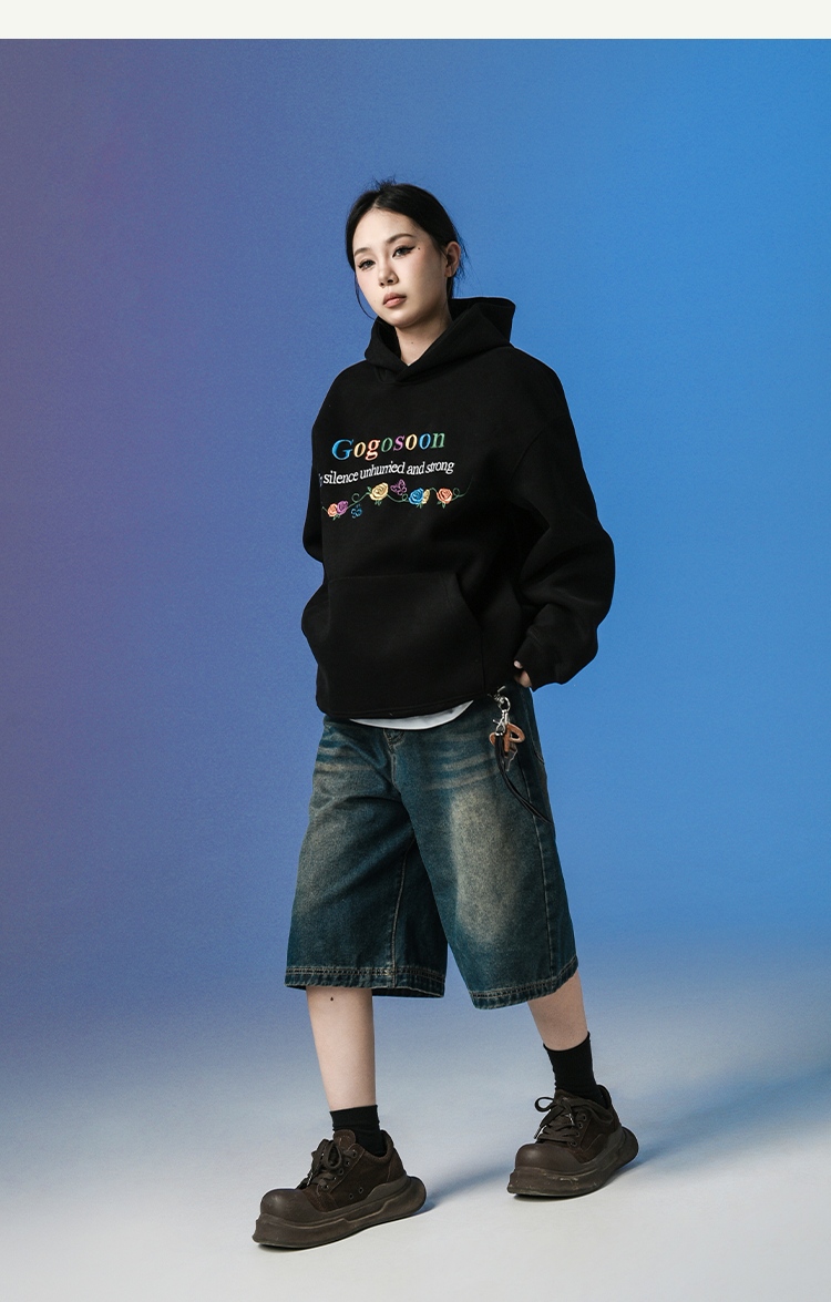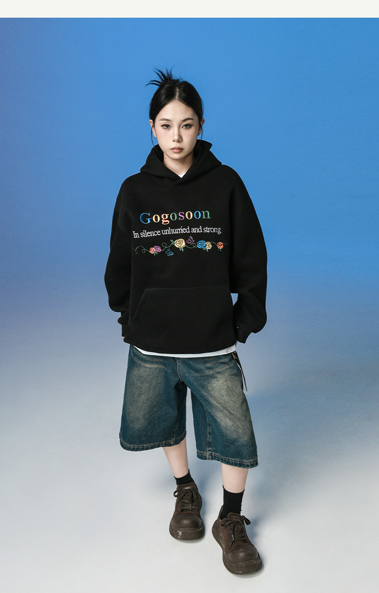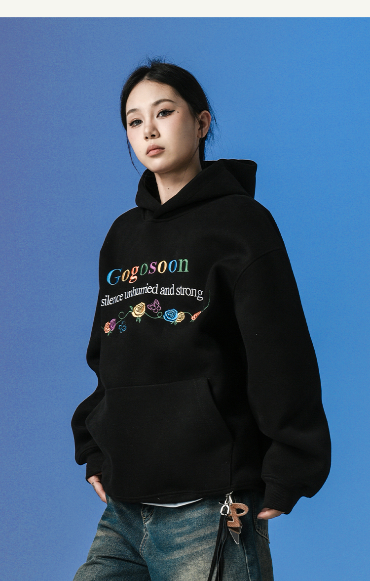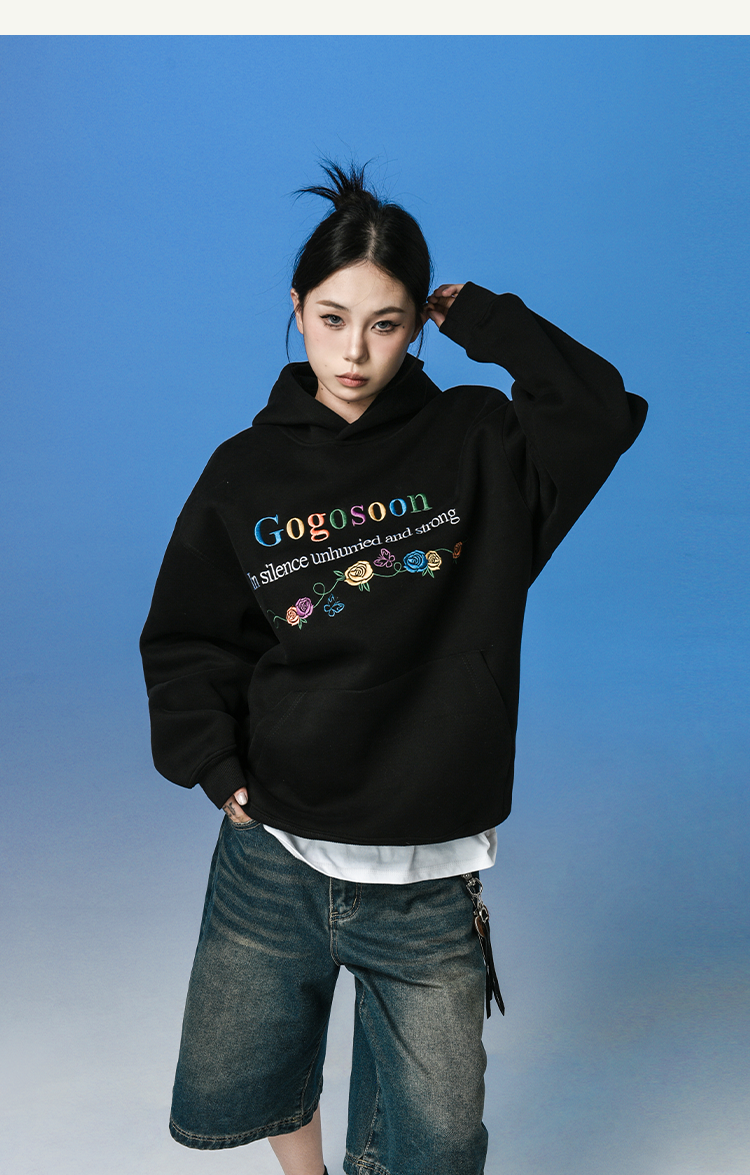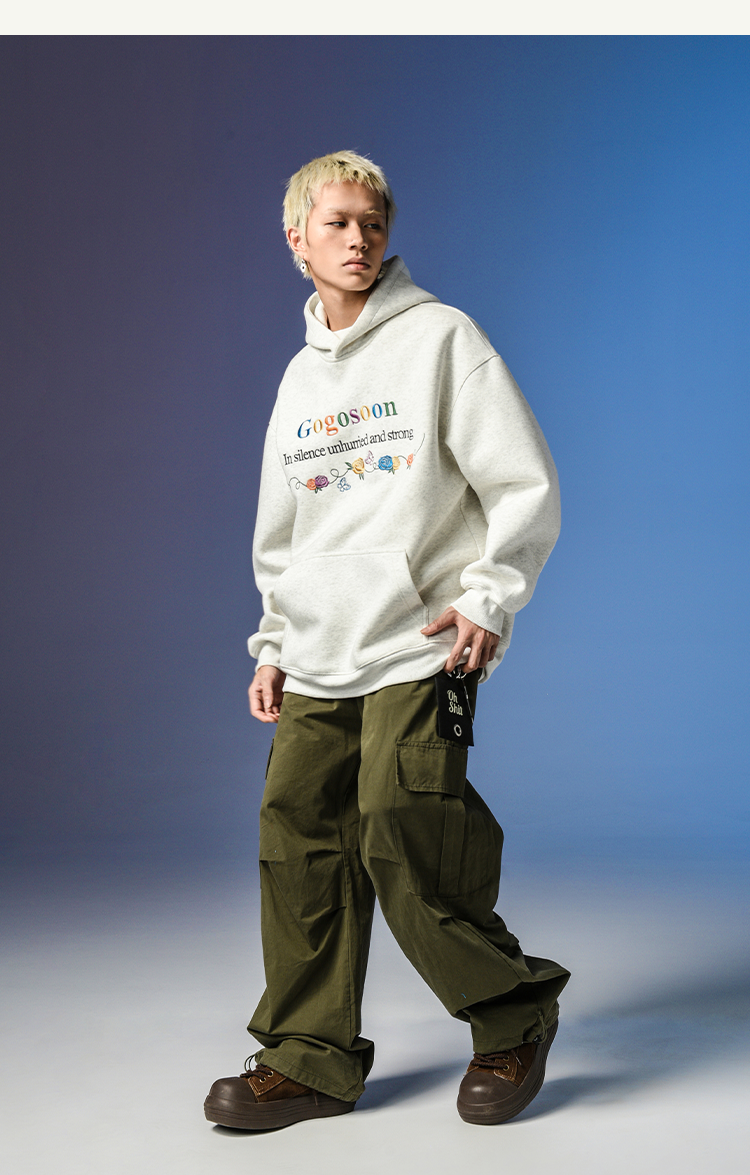 張桂源同款GOGOSOON潮牌刺綉連帽衛衣男春秋新款帶帽美式重磅加絨