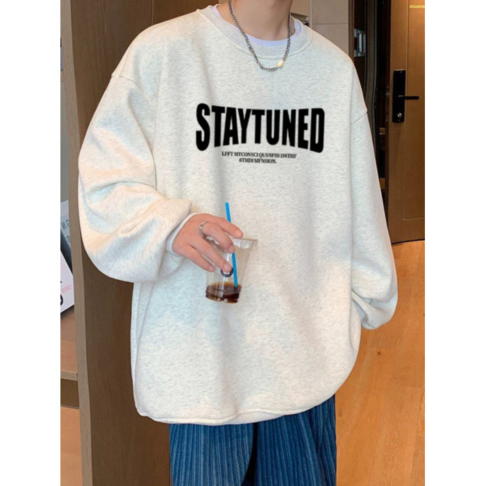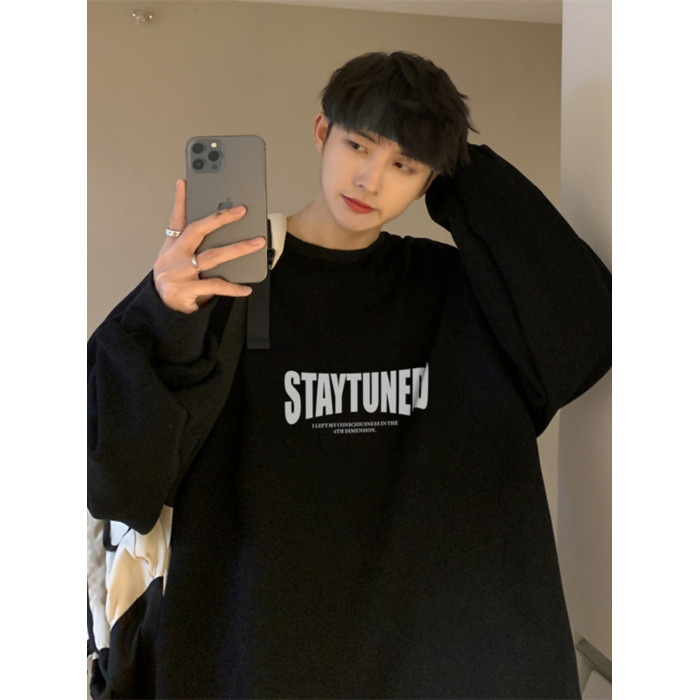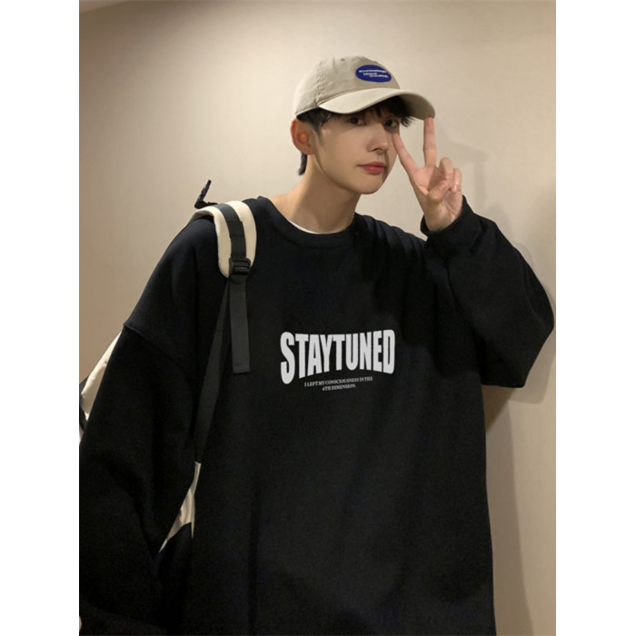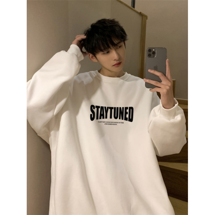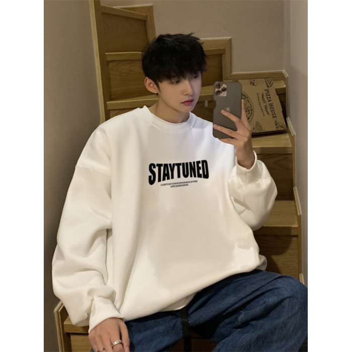 純棉圓領重磅加絨加厚長袖衛衣男韓版無帽美式港風潮牌寬松情侶裝