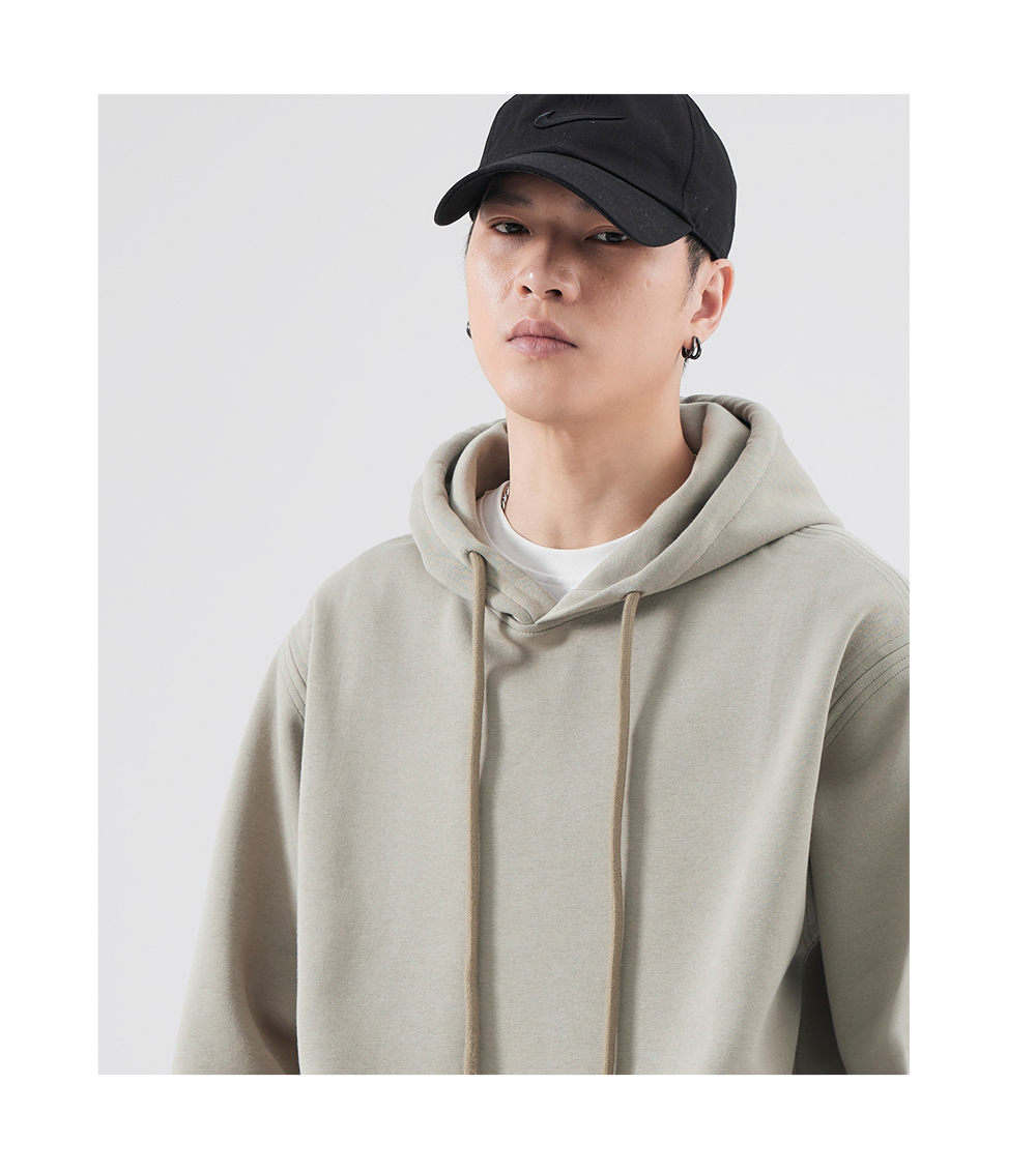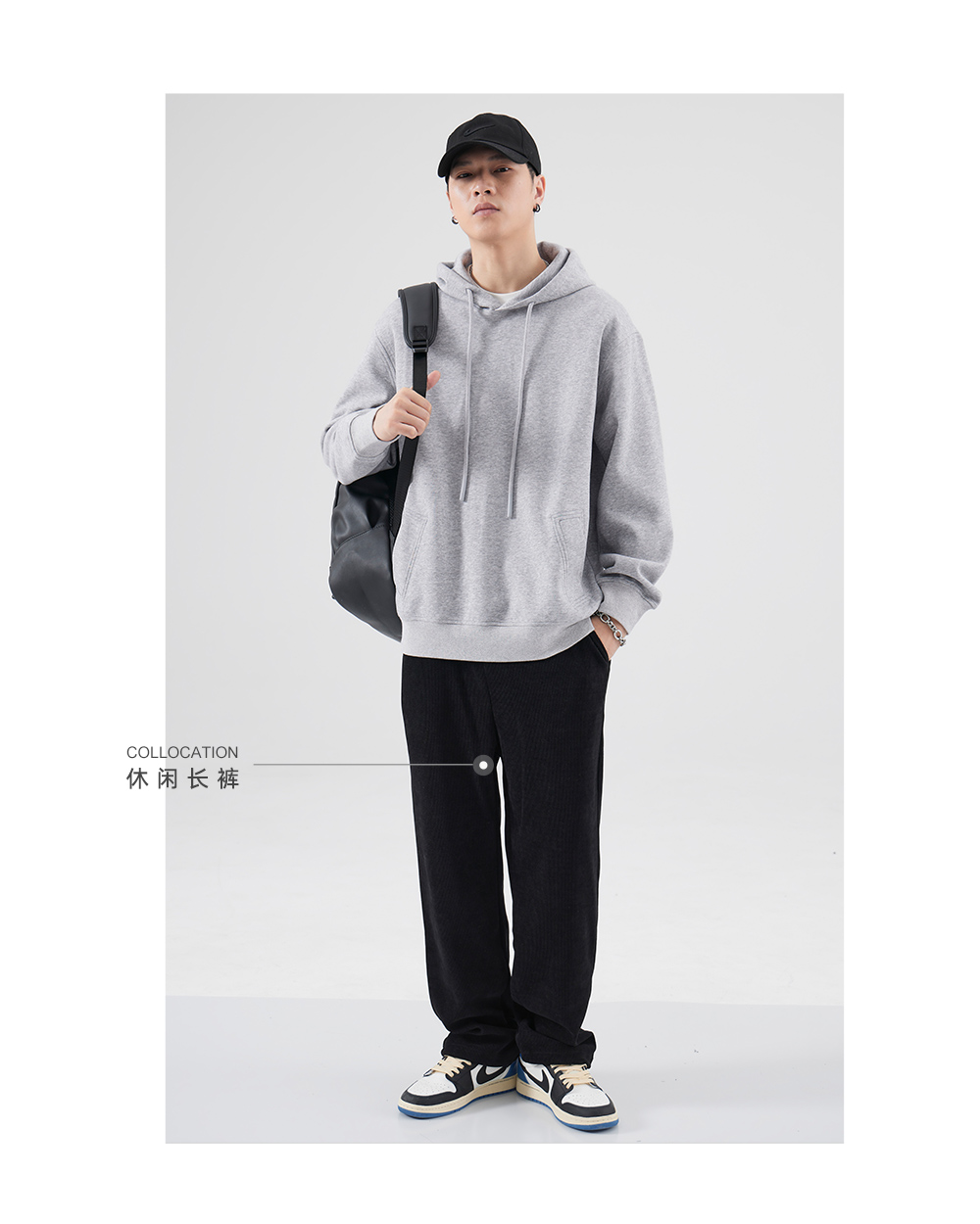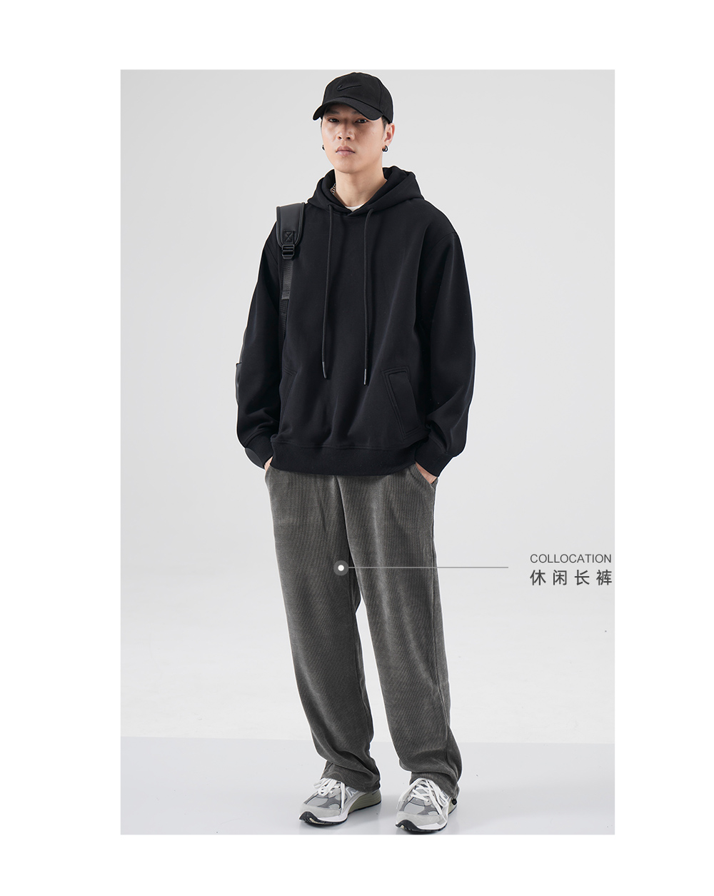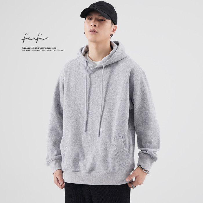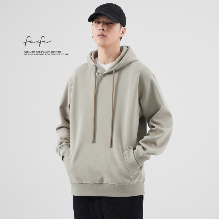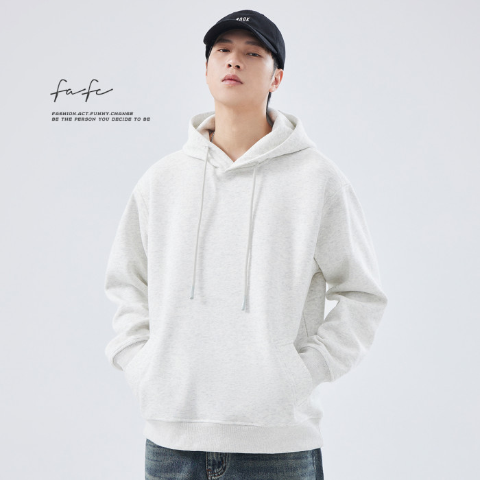 FAFC2024秋季重磅加絨連帽衛衣男士美式潮牌純色套頭帽衫上衣外套