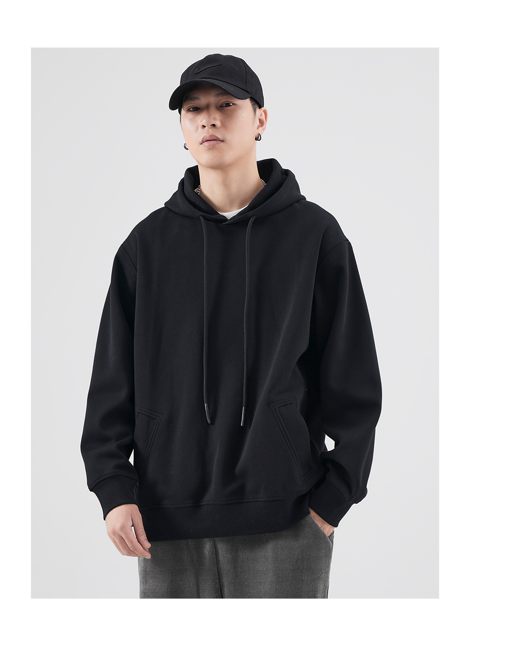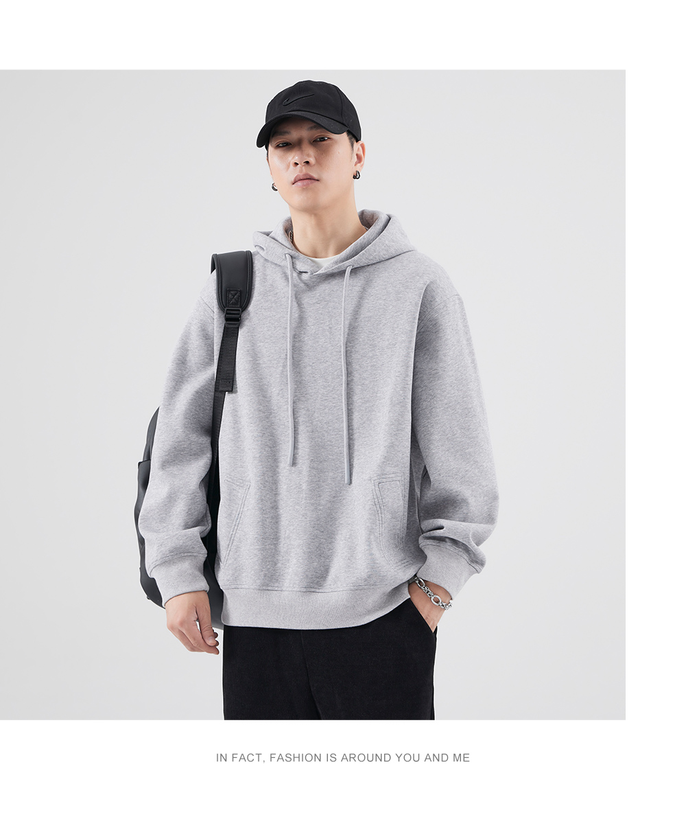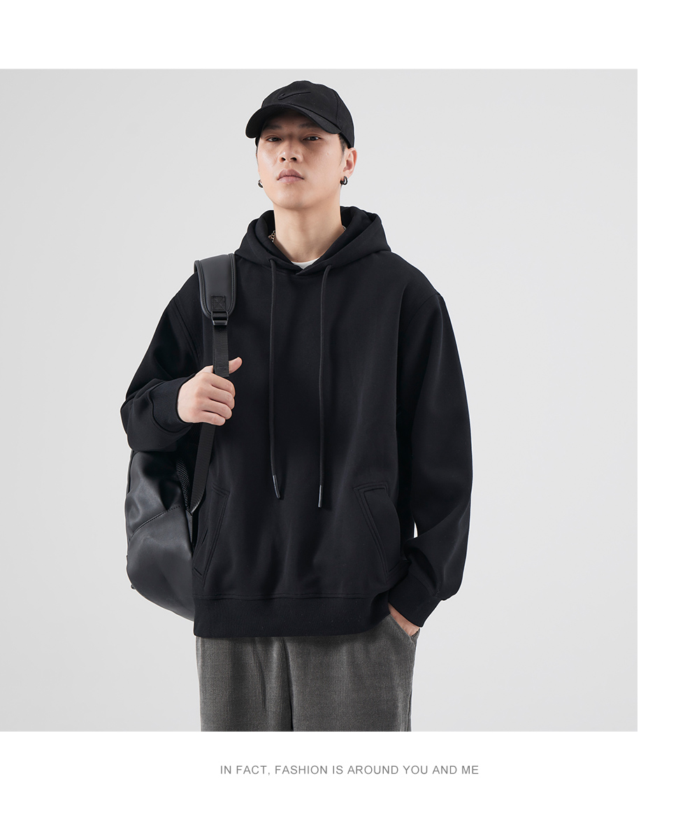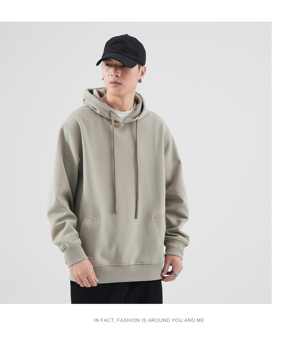 FAFC2024秋季重磅加絨連帽衛衣男士美式潮牌純色套頭帽衫上衣外套