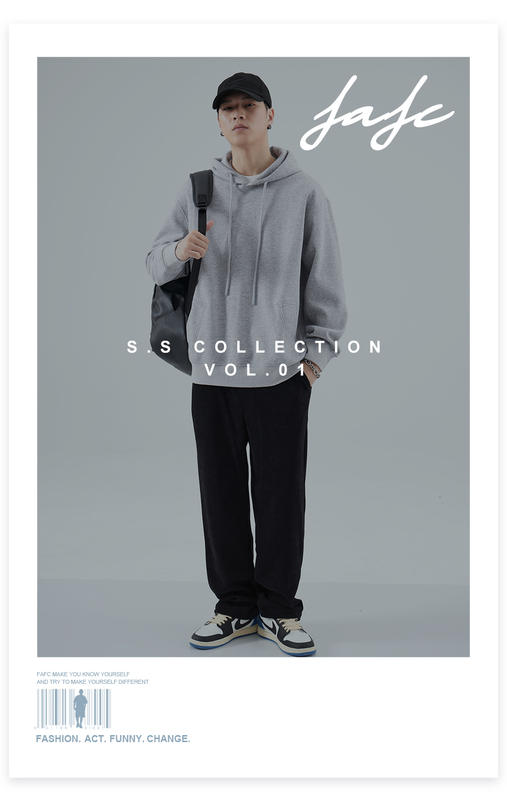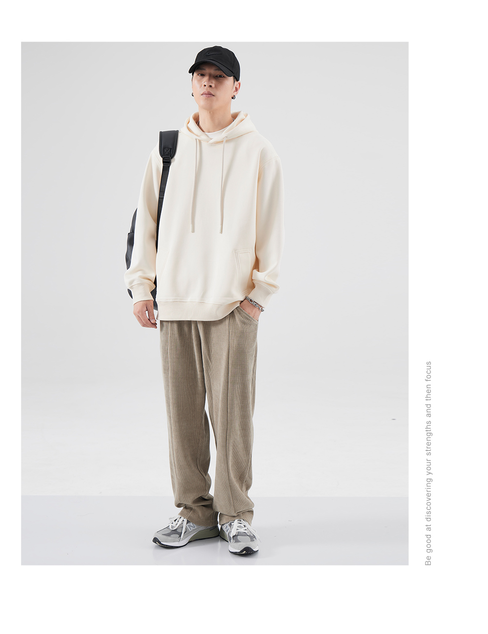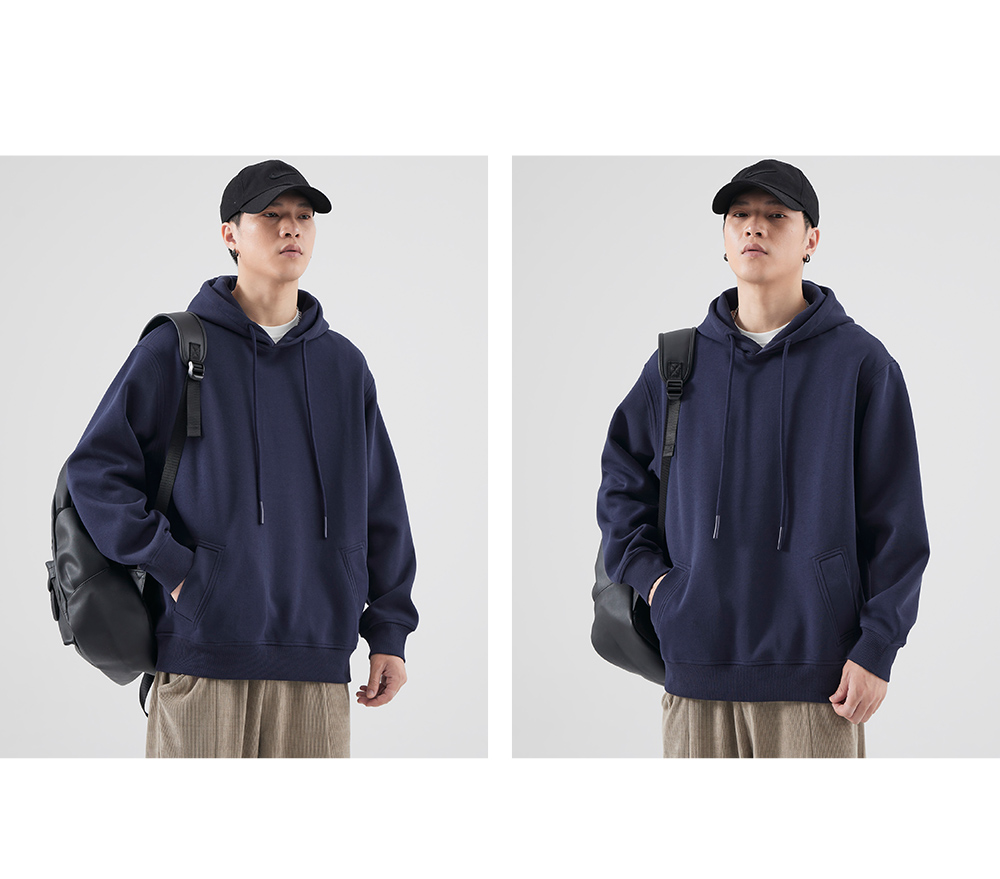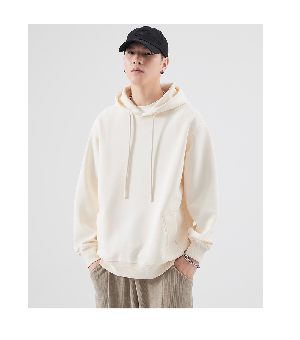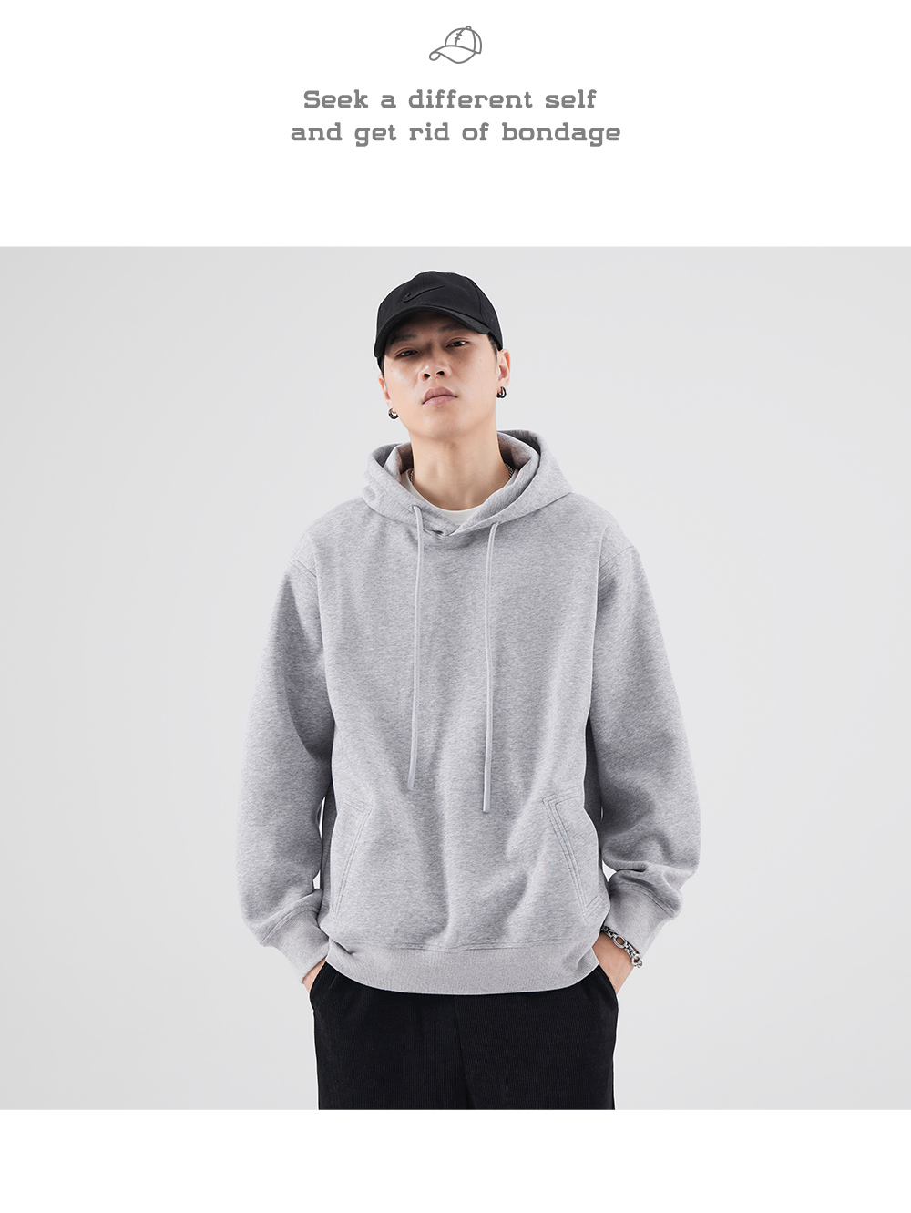 FAFC2024秋季重磅加絨連帽衛衣男士美式潮牌純色套頭帽衫上衣外套