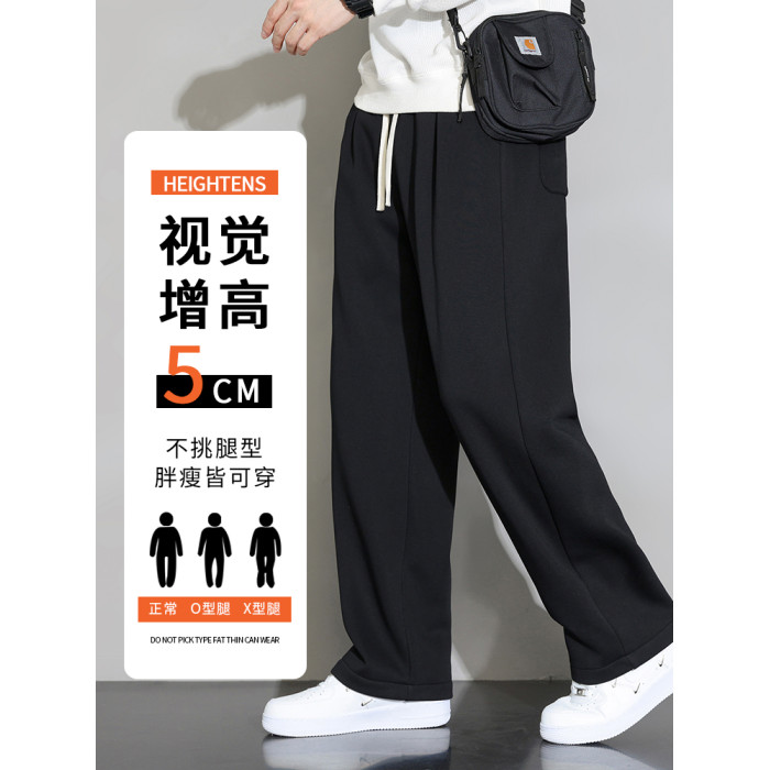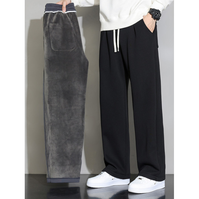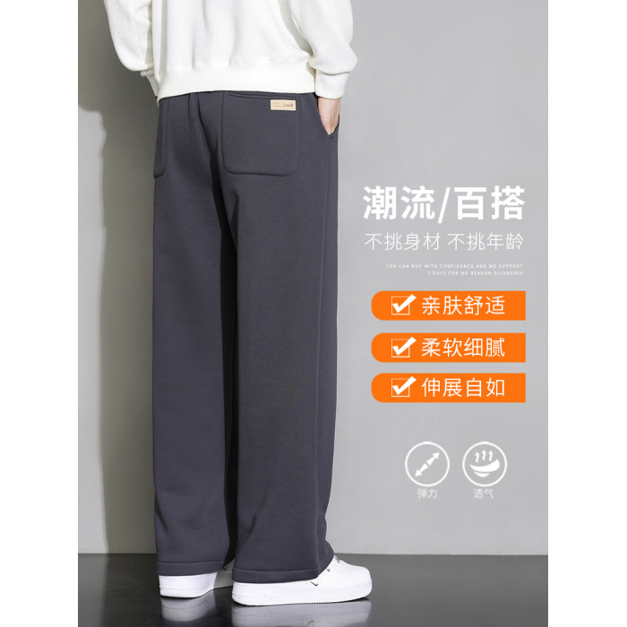秋冬季濶腿褲子男士加絨直筒寬松運動休閒長褲子黑色衛褲2024新款