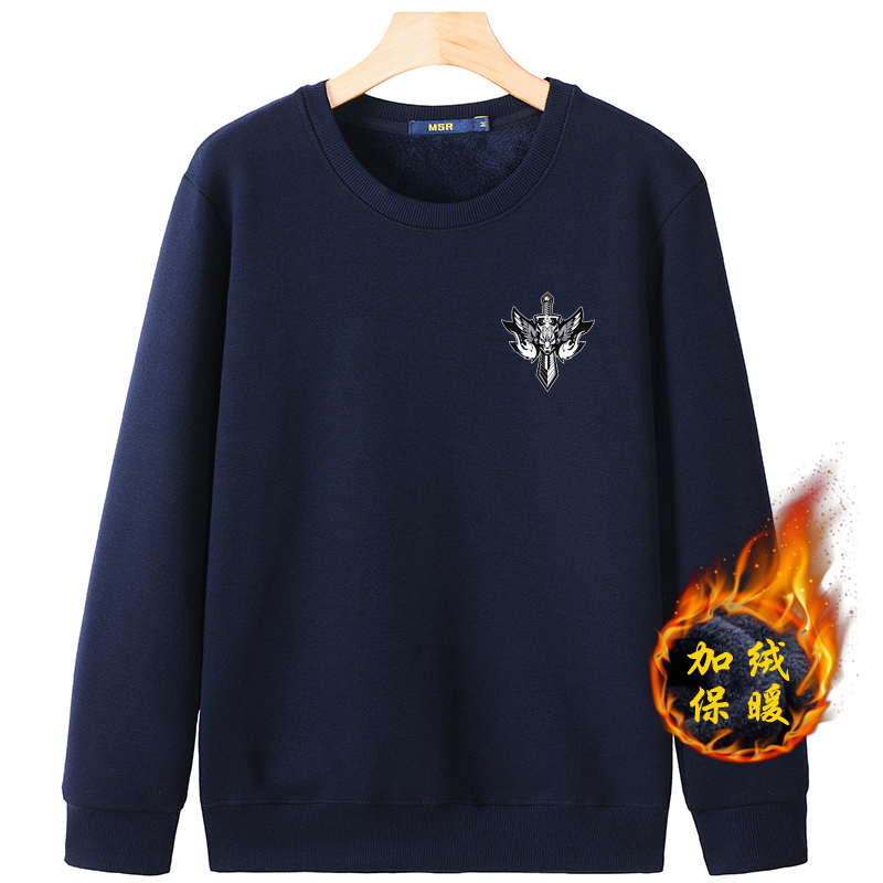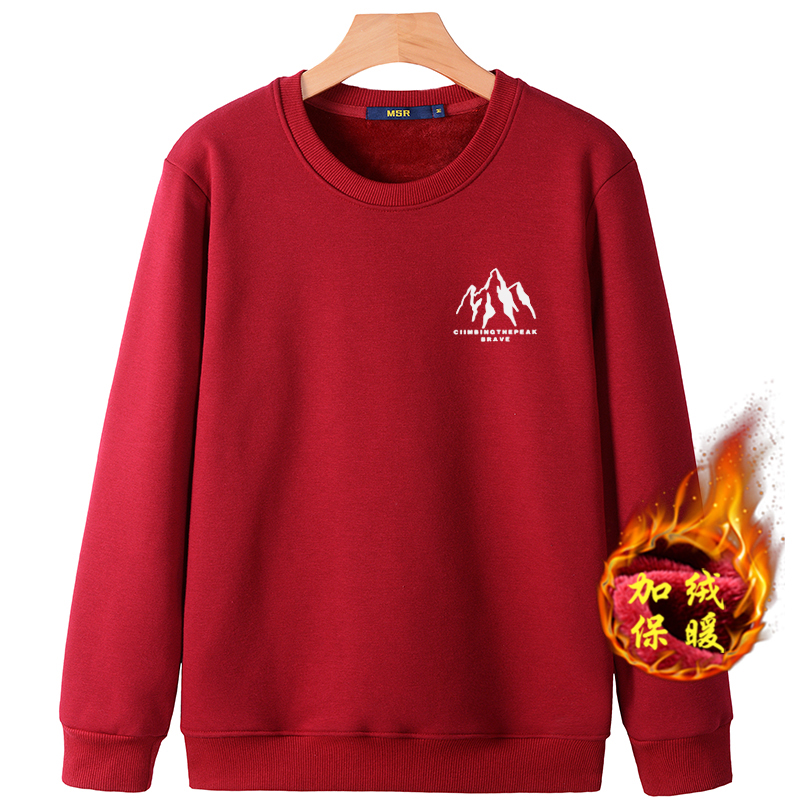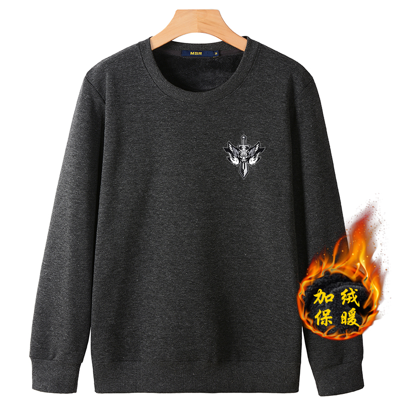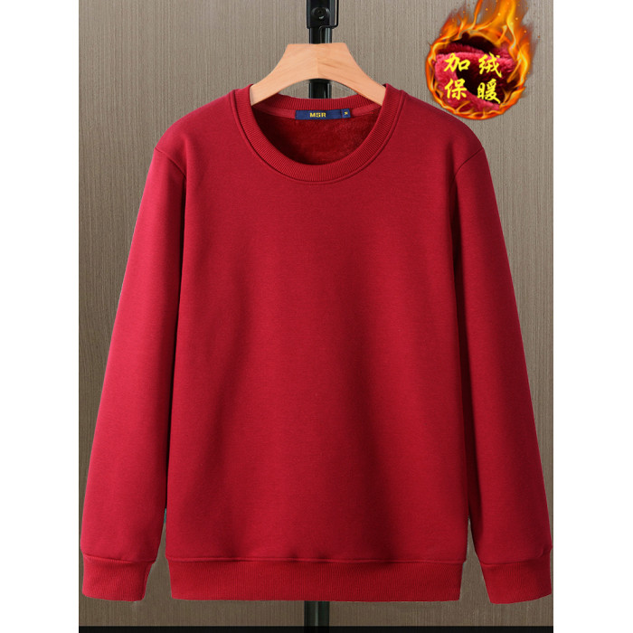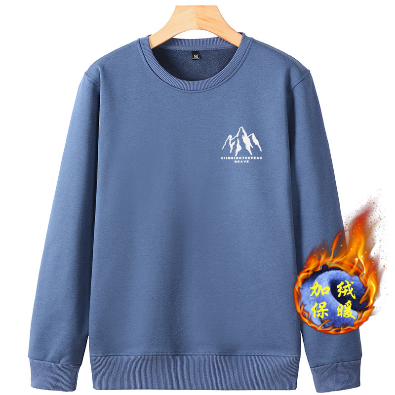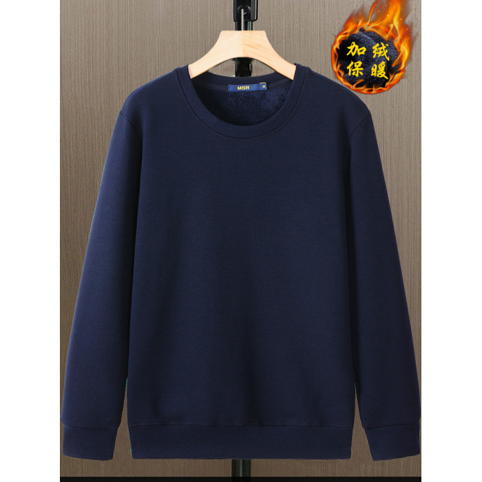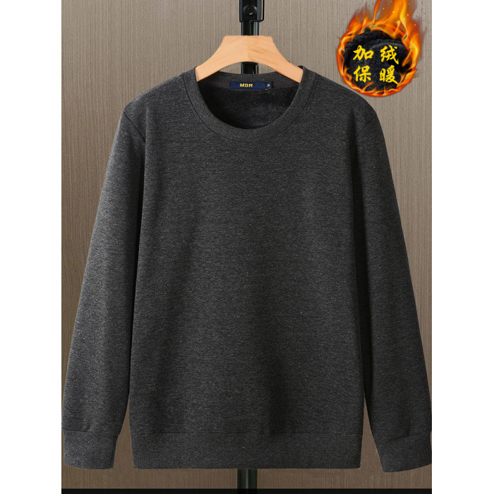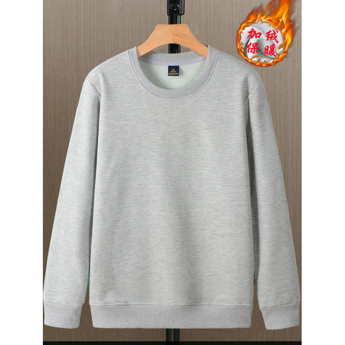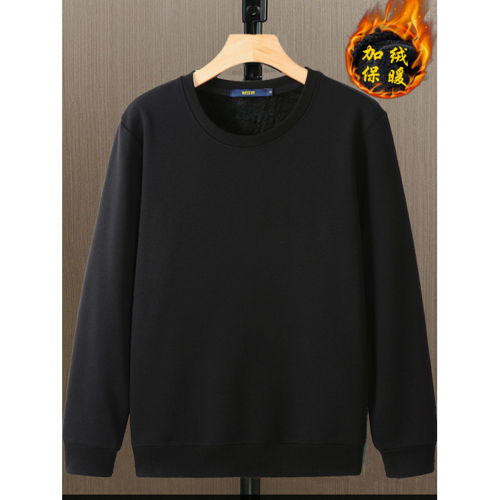 秋冬款加絨加厚衛衣男寬松長袖T恤純色內穿保暖圓領帶絨冬季打底