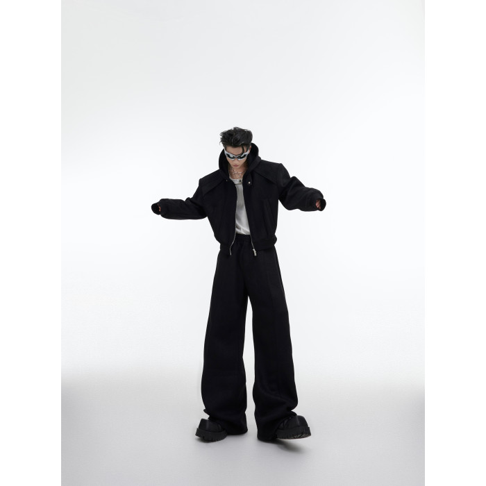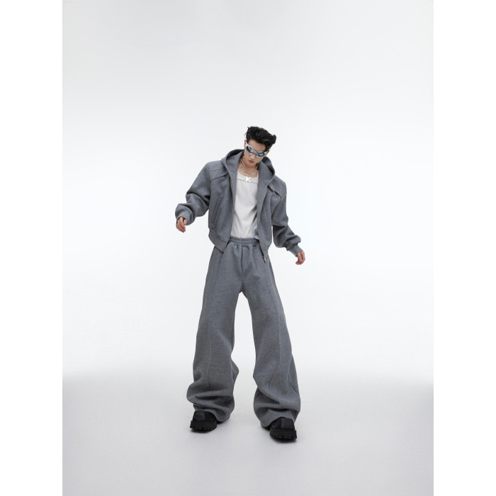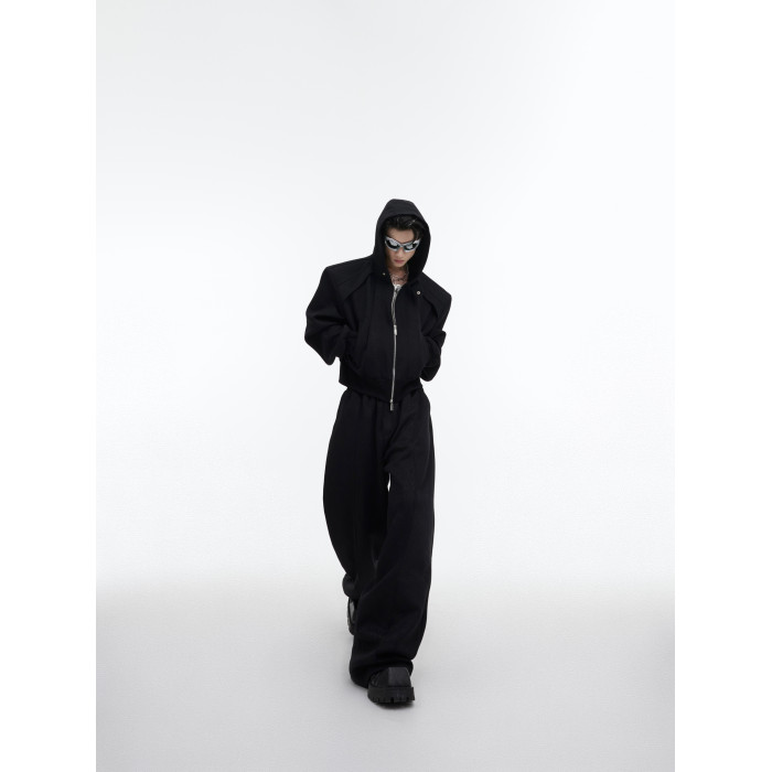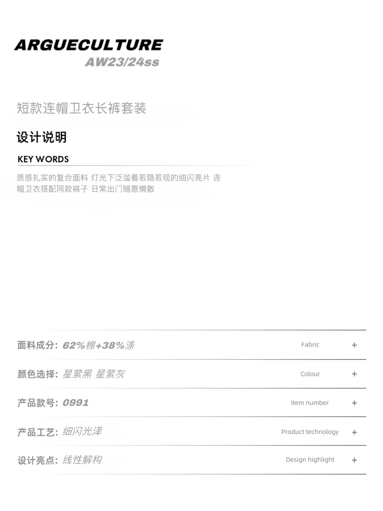 CulturE秋冬小衆立體解搆細閃連帽衛衣套裝亮片設計感拉鍊開衫男