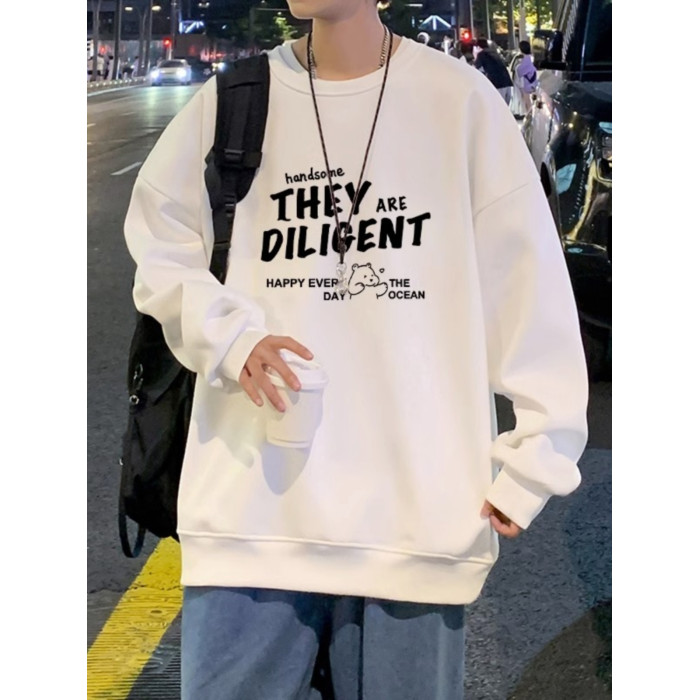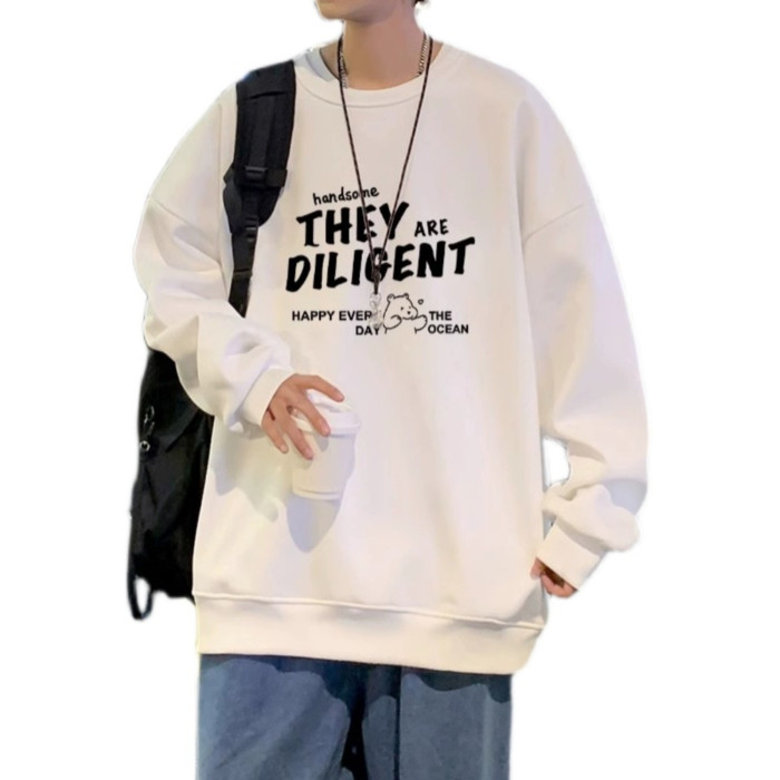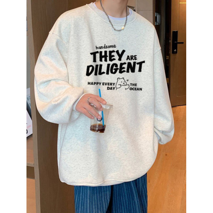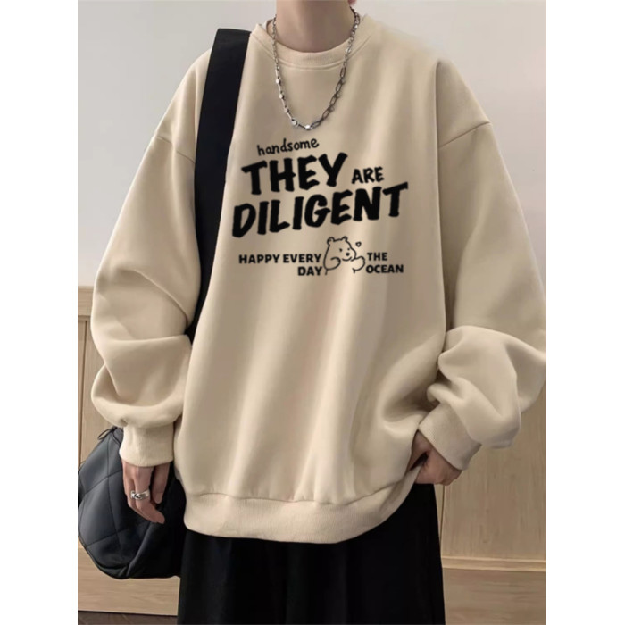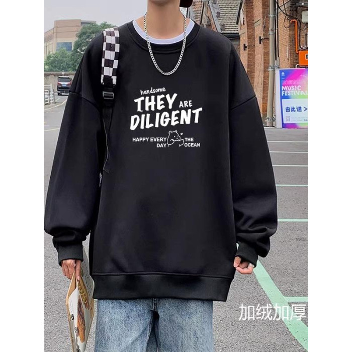 純棉重磅春秋款圓領長袖衛衣男秋冬加絨潮牌美式寬松無帽學生外套