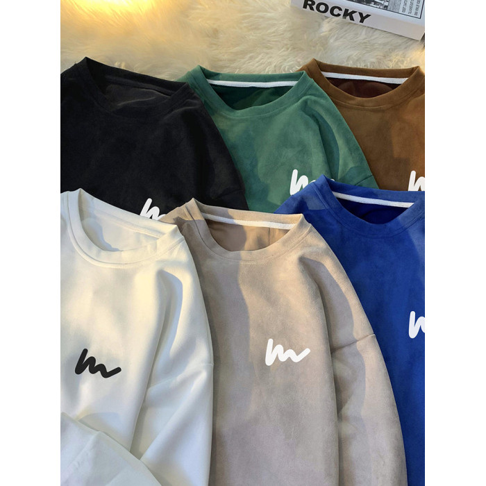 胖胖哥麂皮絨衛衣男款秋oversize潮牌大碼寬鬆外套圓領套頭上衣