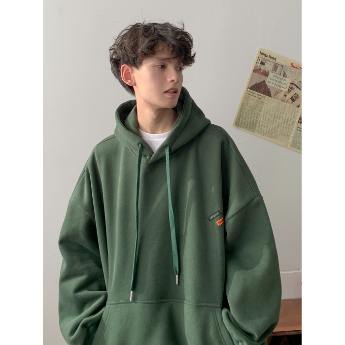 加絨加厚墨綠色重磅cityboy衛衣男秋冬潮連帽衫oversize美式外套