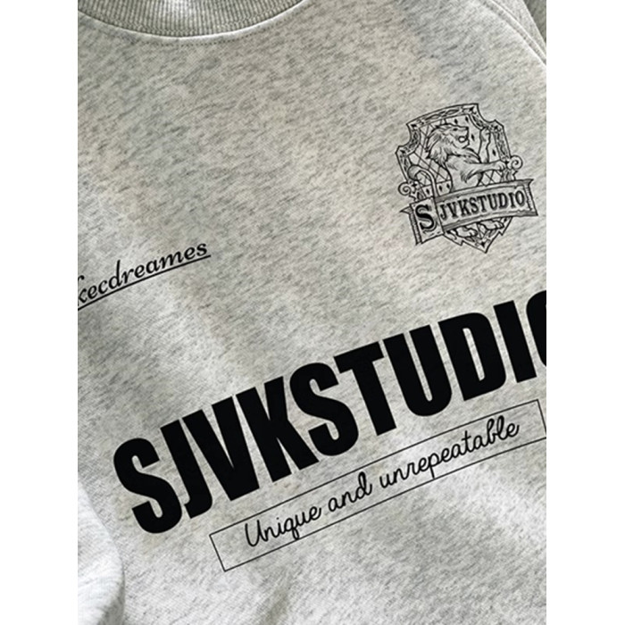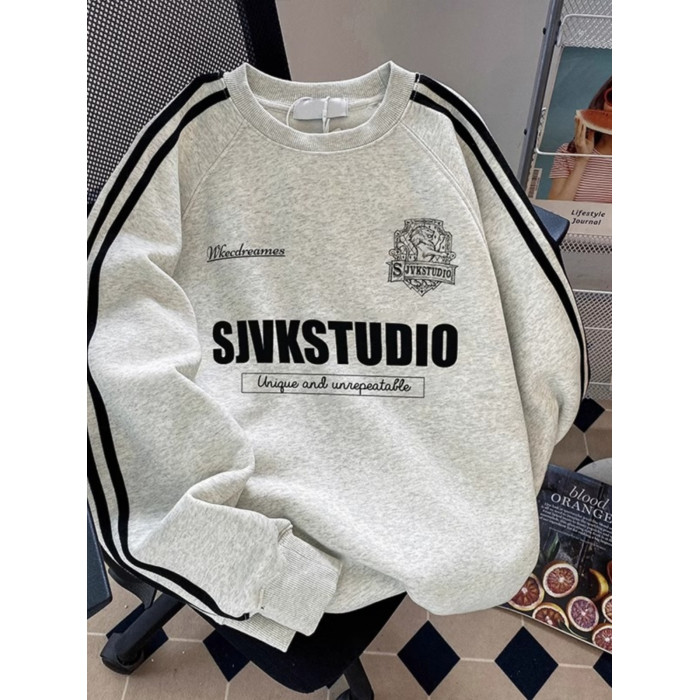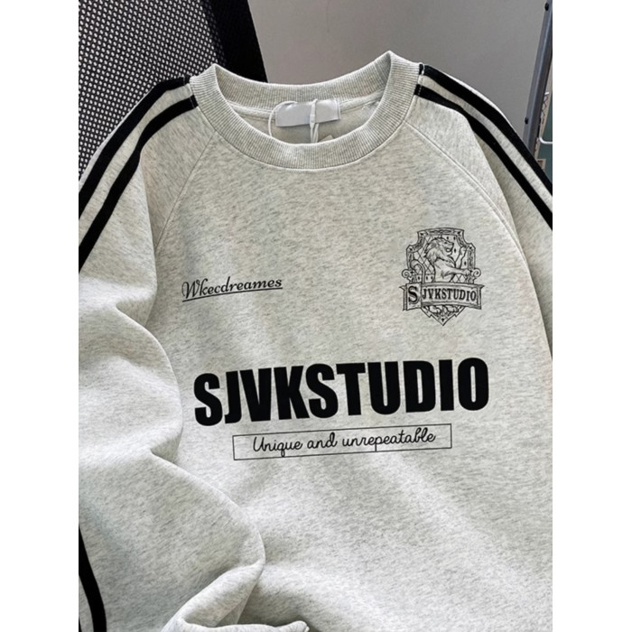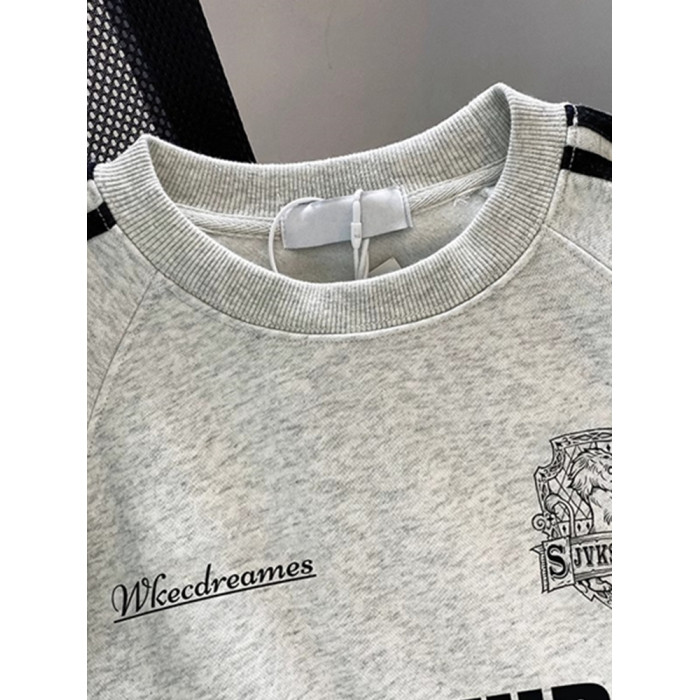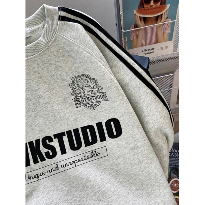 重磅美式復古高街風三杠衛衣秋冬加絨加厚百搭款男女圓領寬松上衣