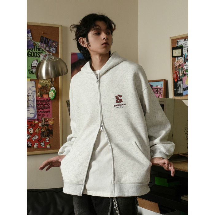 田嘉瑞同款GOGOSOON加絨衛衣外套男新2025秋冬連帽拉鍊開衫青少年