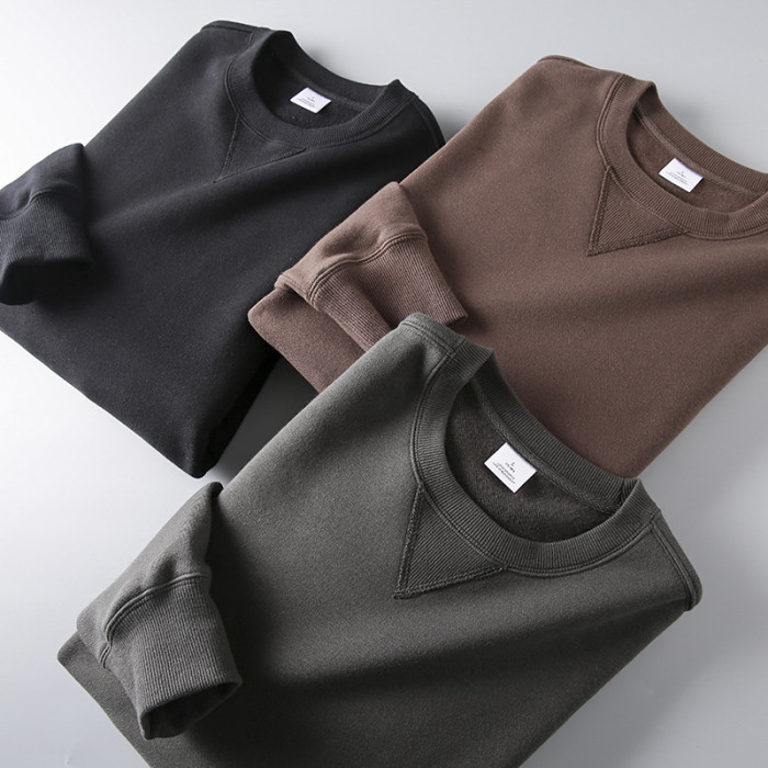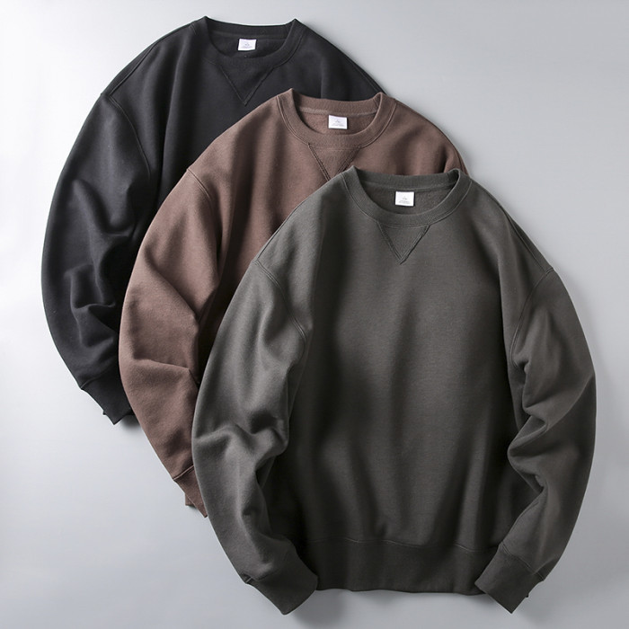 阿美哢嘰復古!高克重!25春季男士純色百搭休閒寬松圓領長袖衛衣