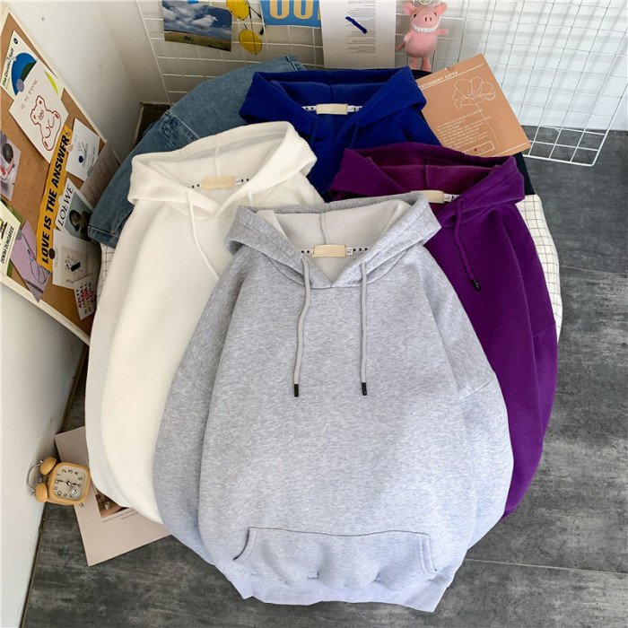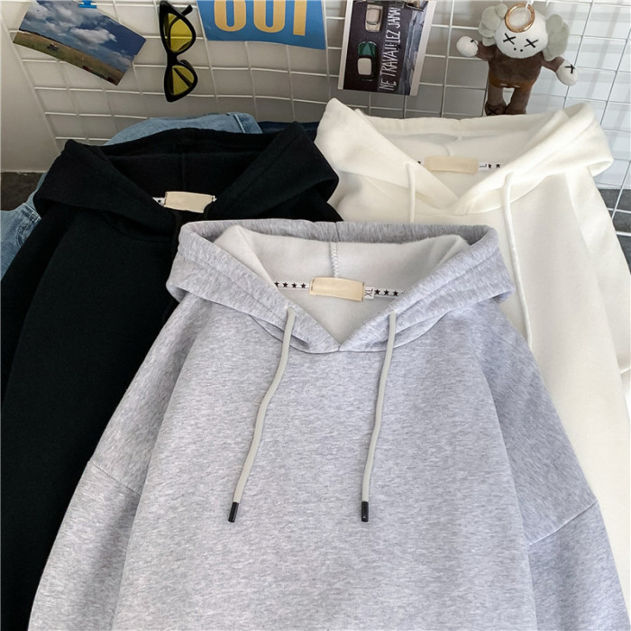 bf原宿風新款純色衛衣男女套頭秋冬季休閒韓版寬松帶帽加絨帽衫潮