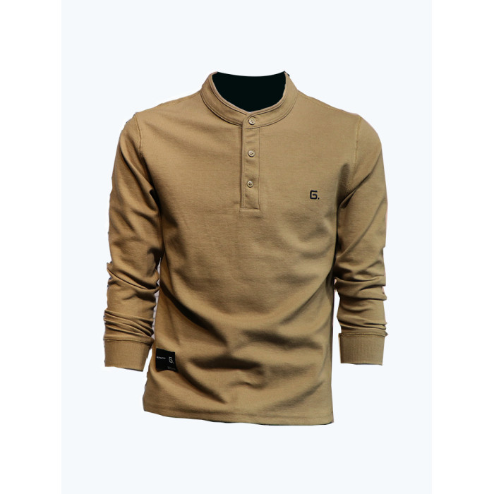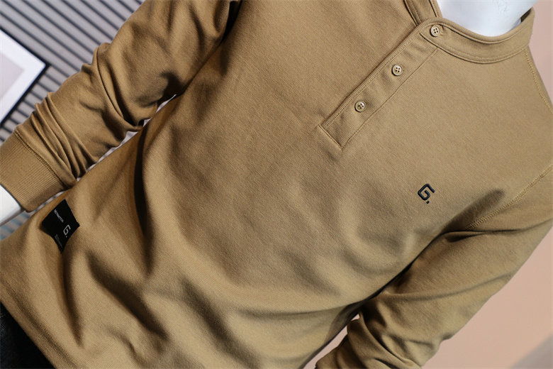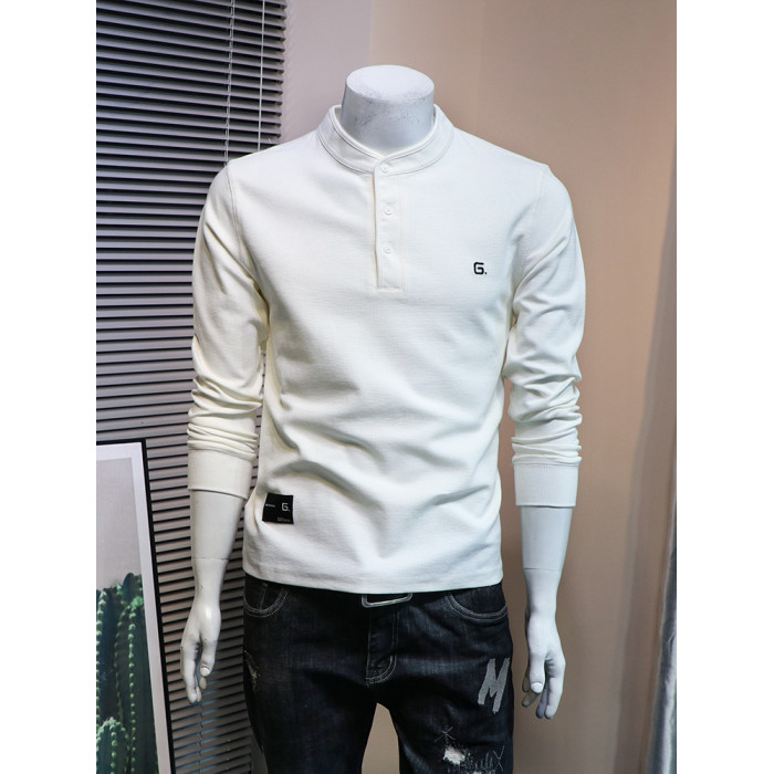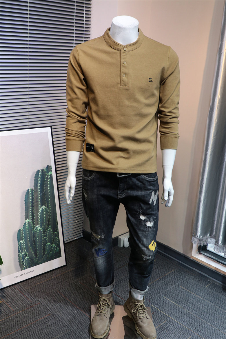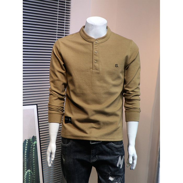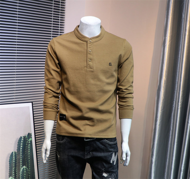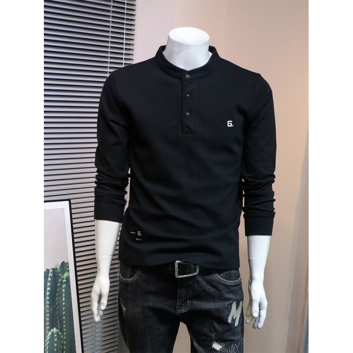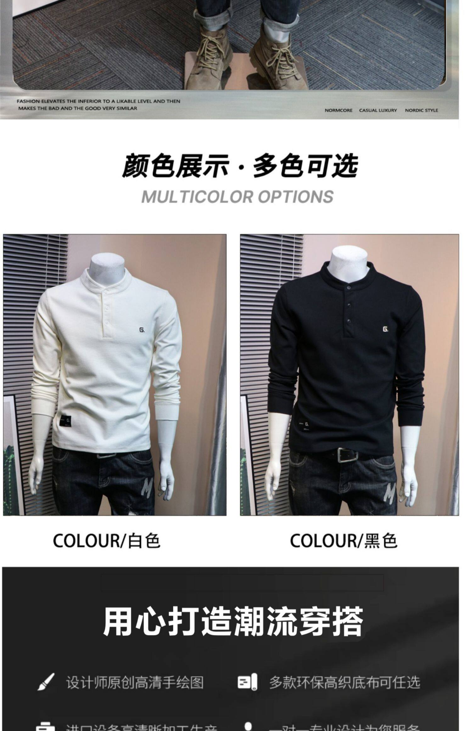 歐洲站秋冬新款帥氣衛衣男潮休閒簡約純色刺綉潮男亨利領長袖T恤