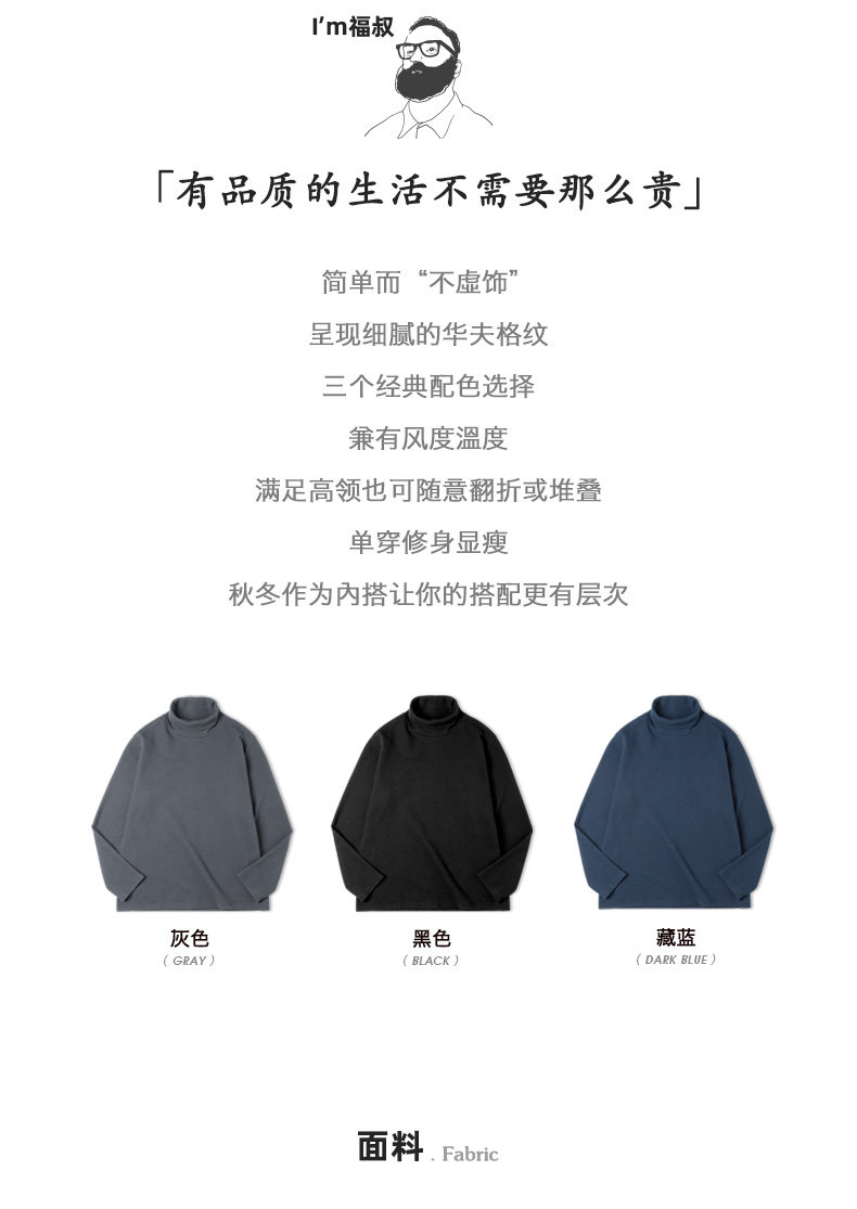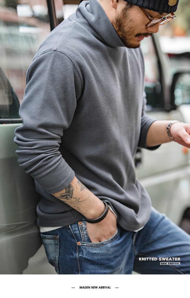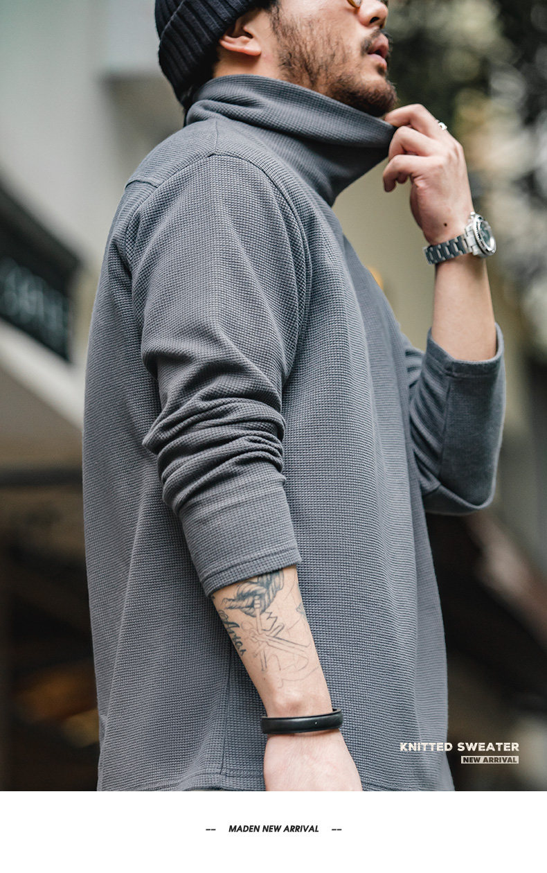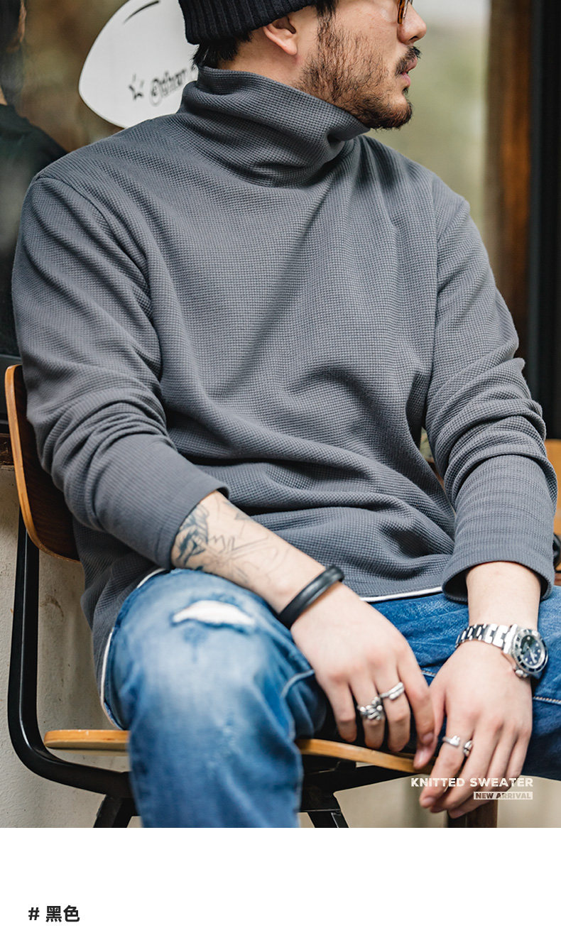 馬登工裝 美式休閒灰色衛衣華夫格高領保暖內搭長袖T恤打底衫男春
