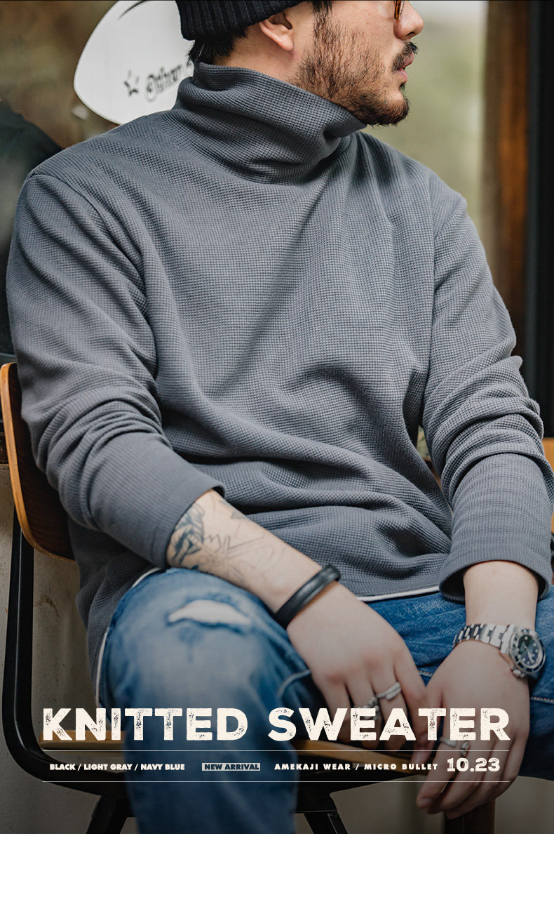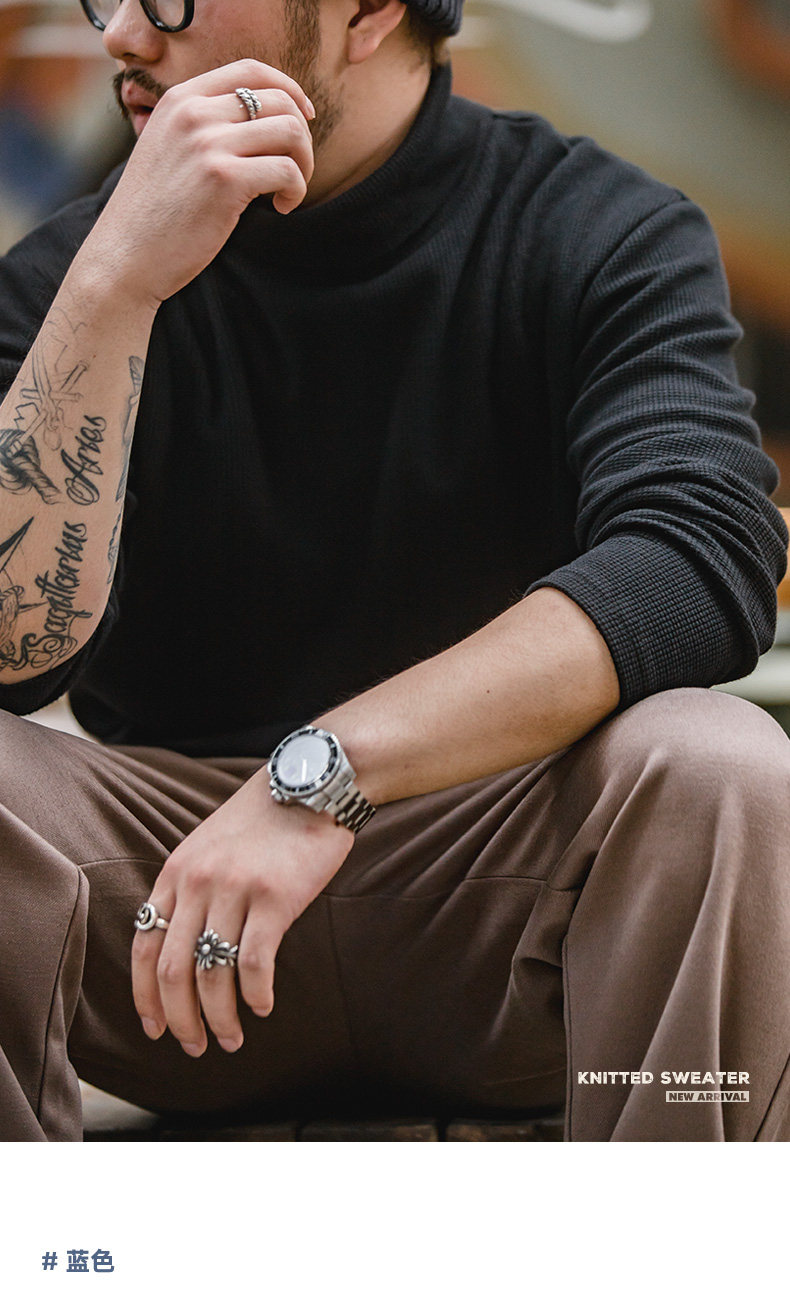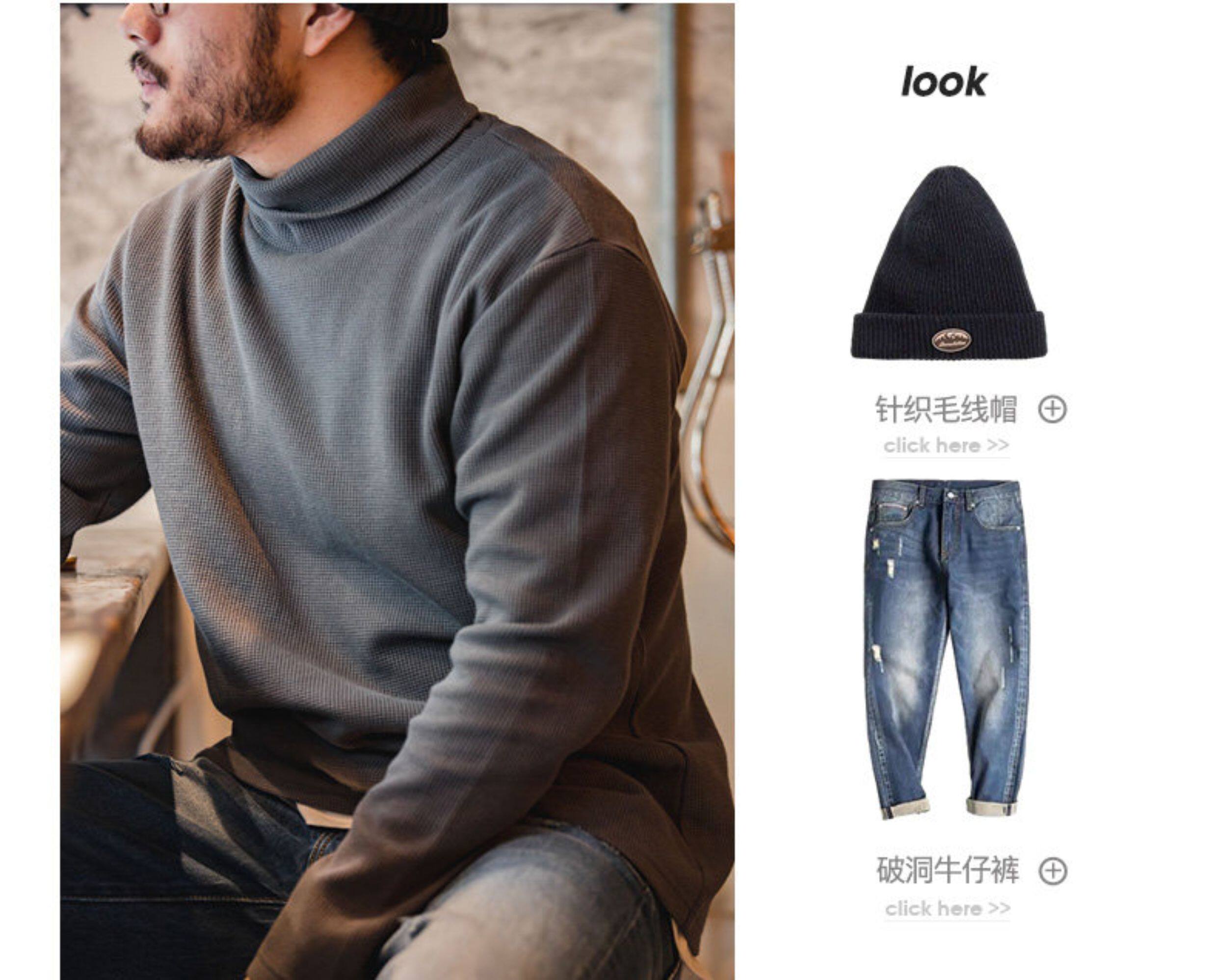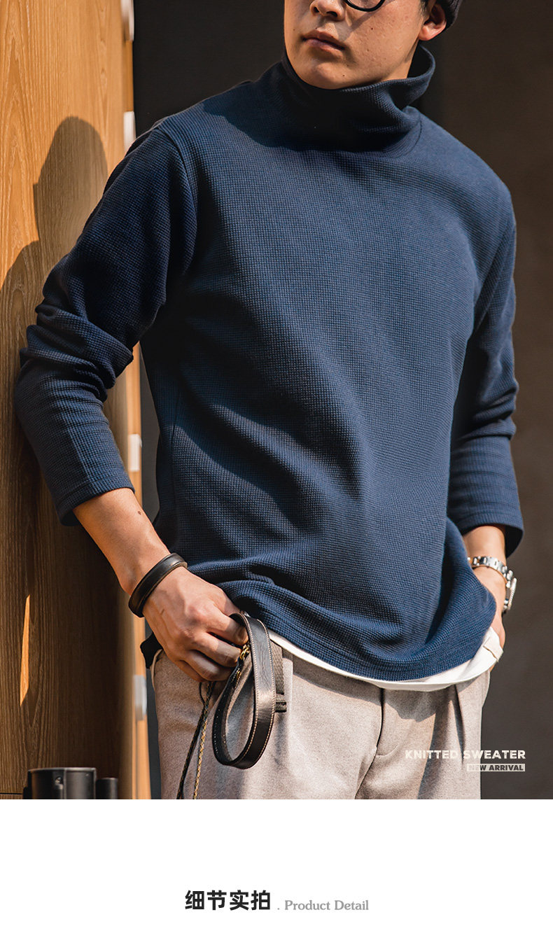 馬登工裝 美式休閒灰色衛衣華夫格高領保暖內搭長袖T恤打底衫男春