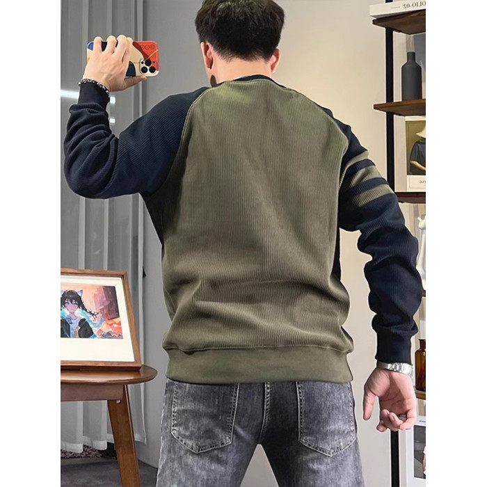 歐貨高級潮牌衛衣男秋冬季加絨加厚網紅時尚男裝圓領套頭長袖上衣
