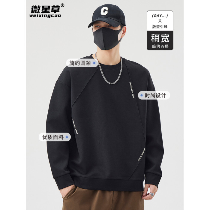 圓領衛衣男士春秋季2025新款百搭無帽男生長袖t恤打底衫上衣春裝