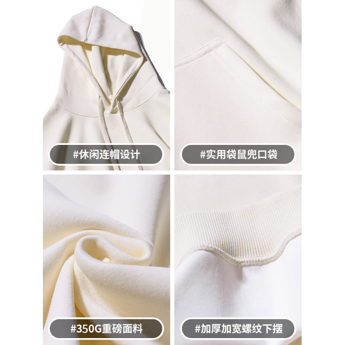 350g重磅衛衣男連帽秋冬季美式復古純色休閒百搭上衣寬松潮流帽衫
