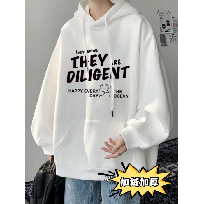 重磅純棉春秋款連帽衛衣男冬季加絨加厚潮牌美式休閒寬松學生外套