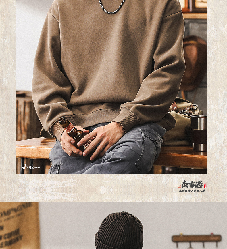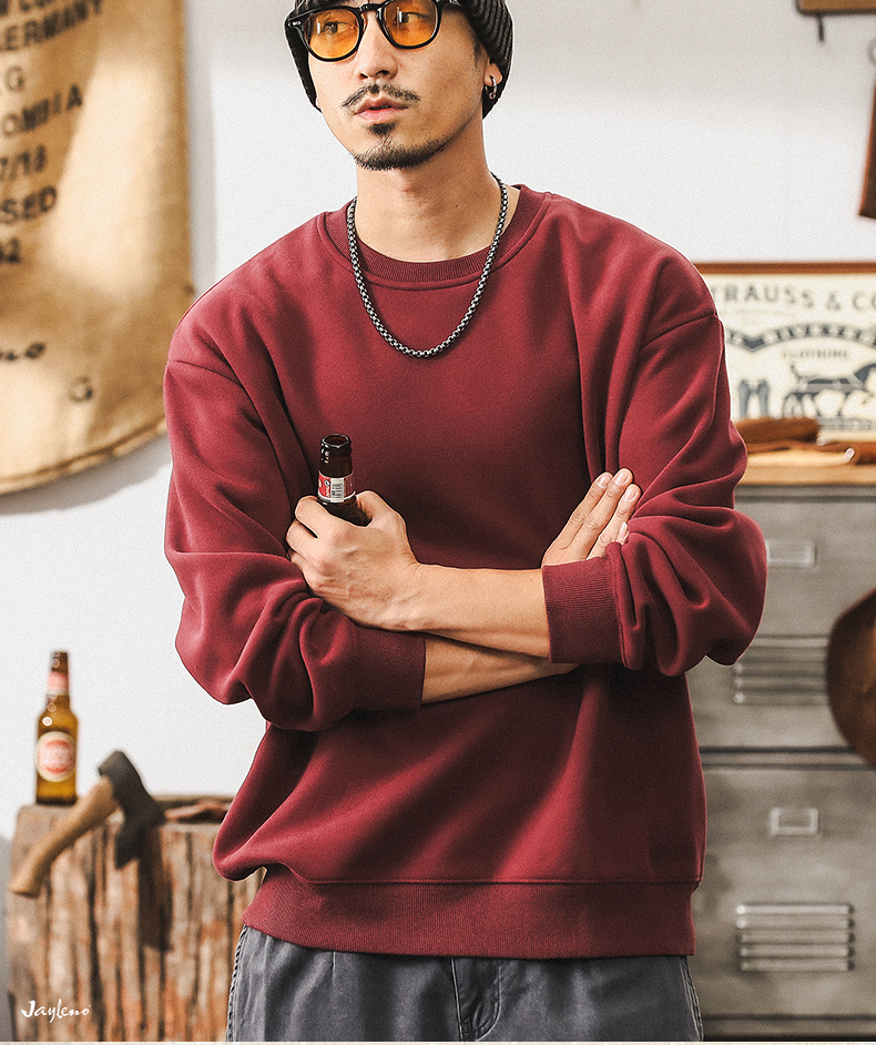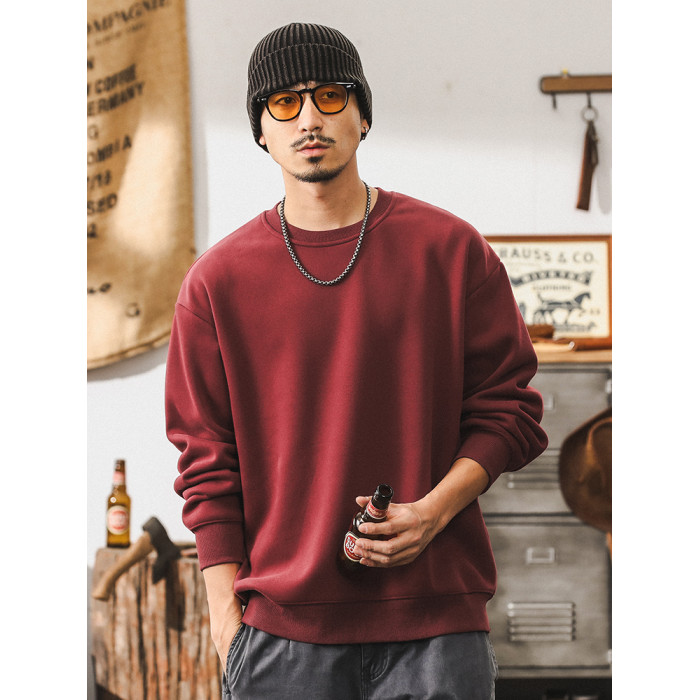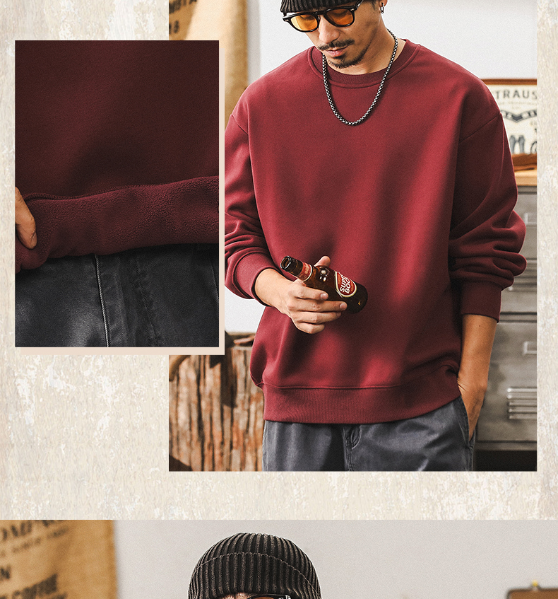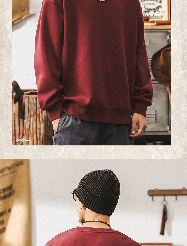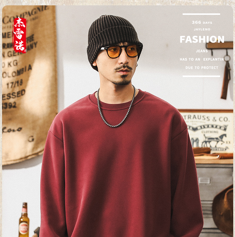 美式復古360g重磅加絨衛衣男秋季2025新款潮牌寬松男士棗紅色上衣