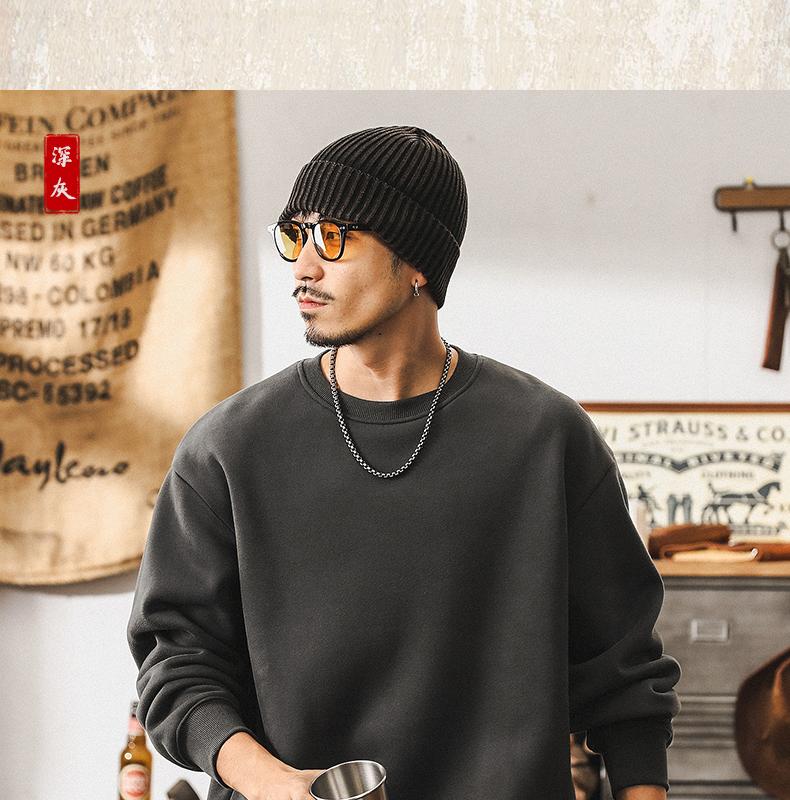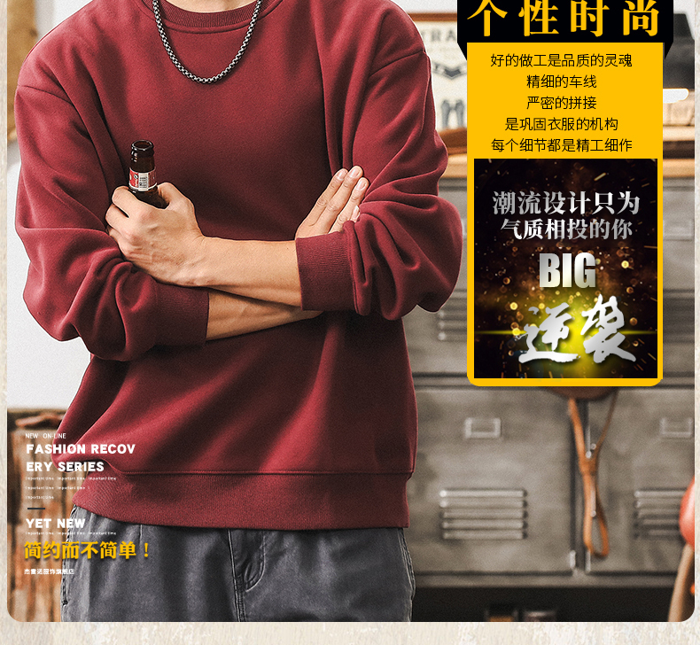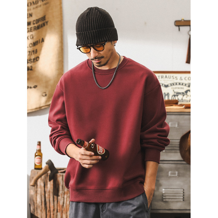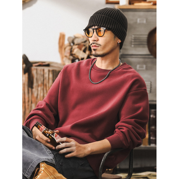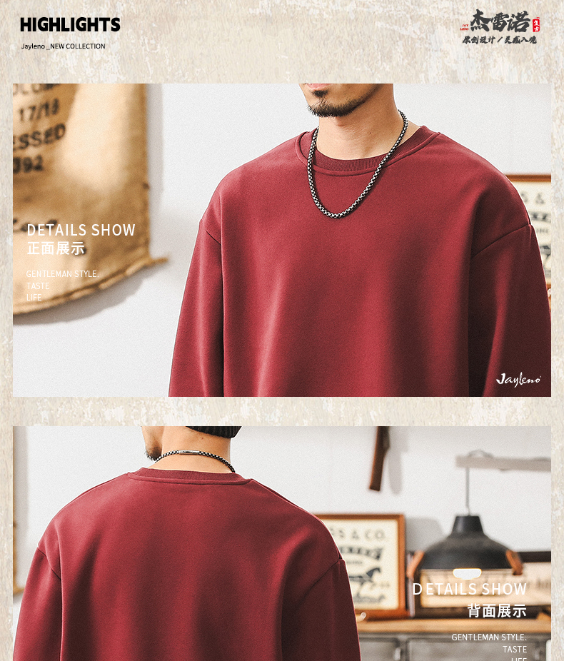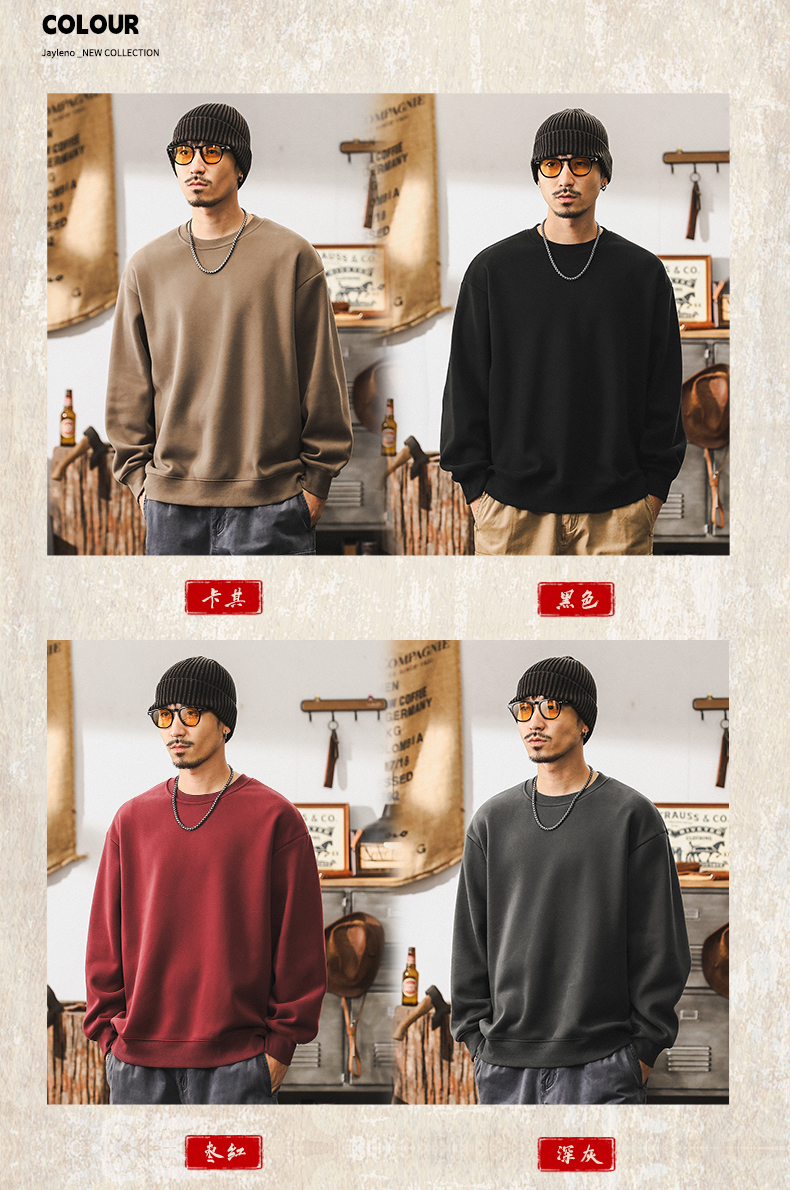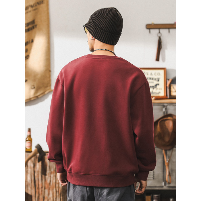 美式復古360g重磅加絨衛衣男秋季2025新款潮牌寬松男士棗紅色上衣