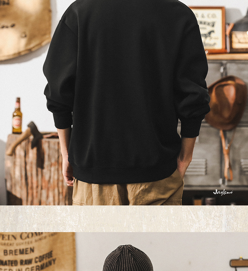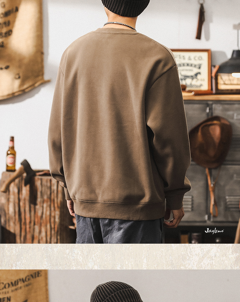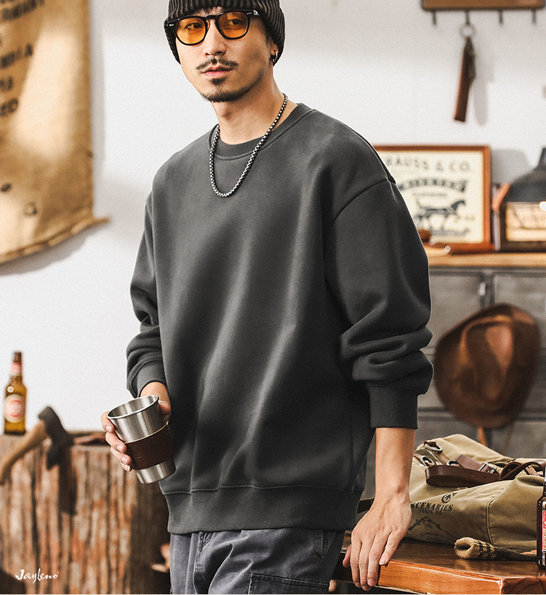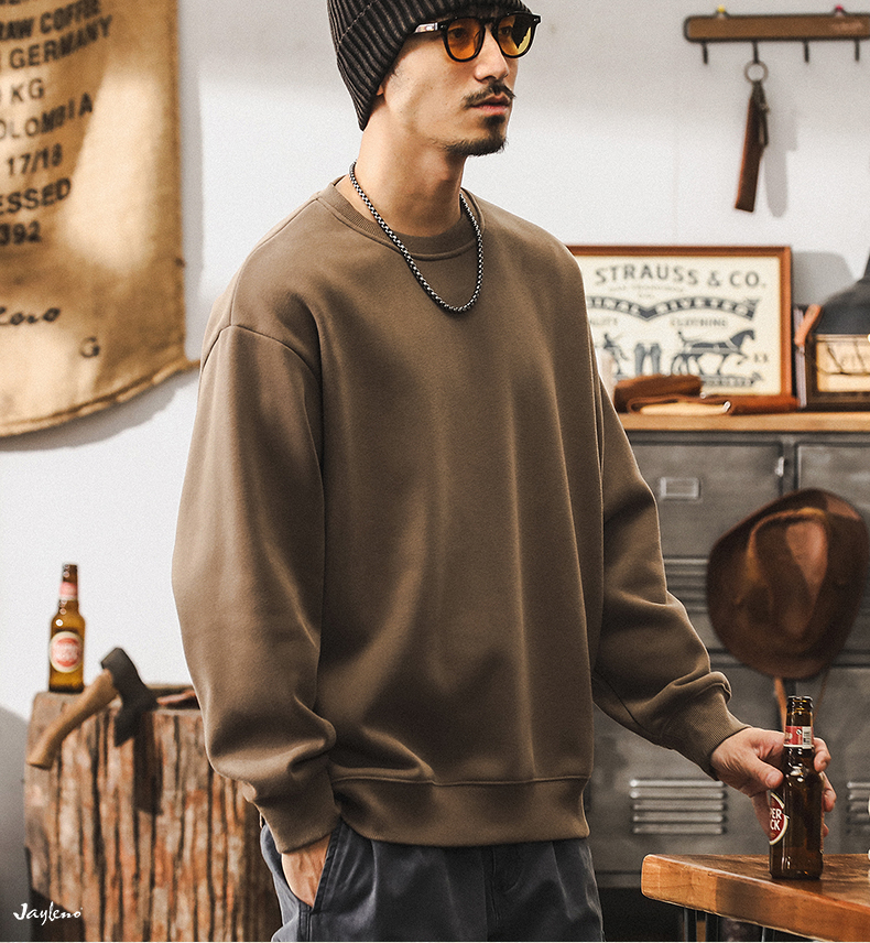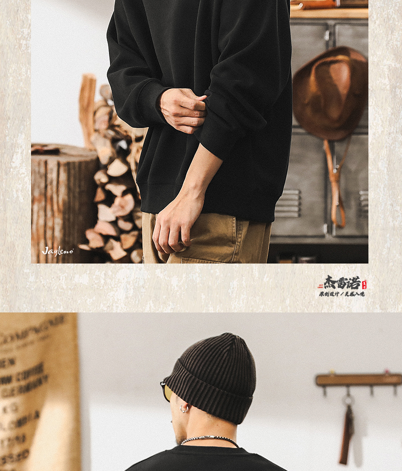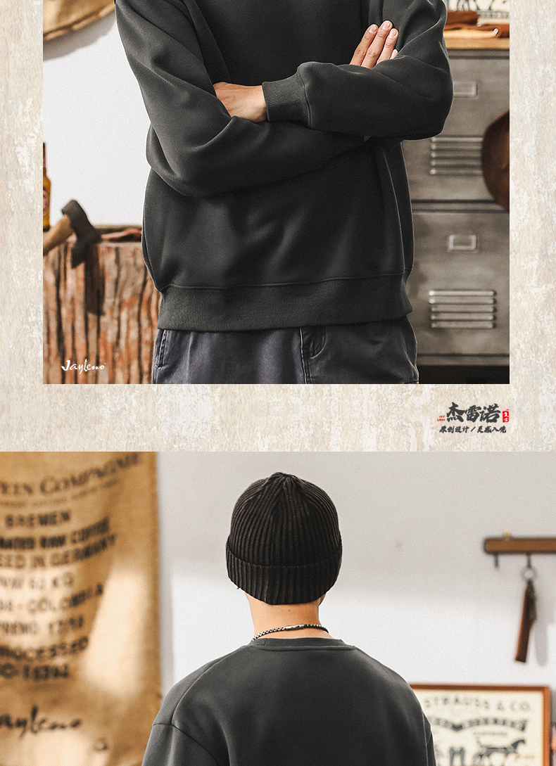 美式復古360g重磅加絨衛衣男秋季2025新款潮牌寬松男士棗紅色上衣