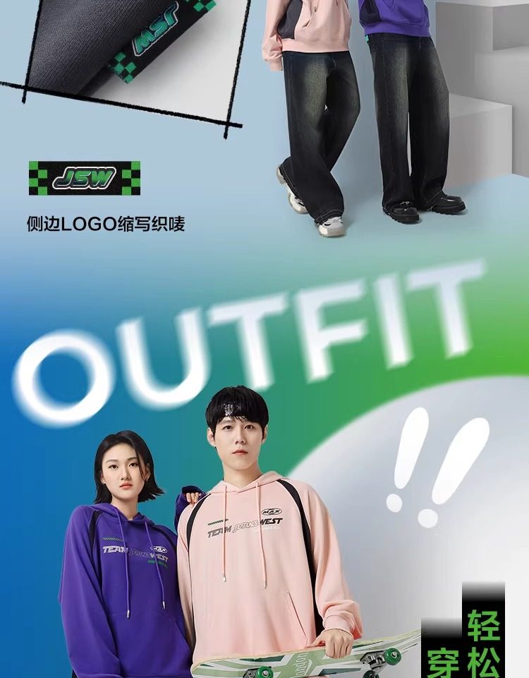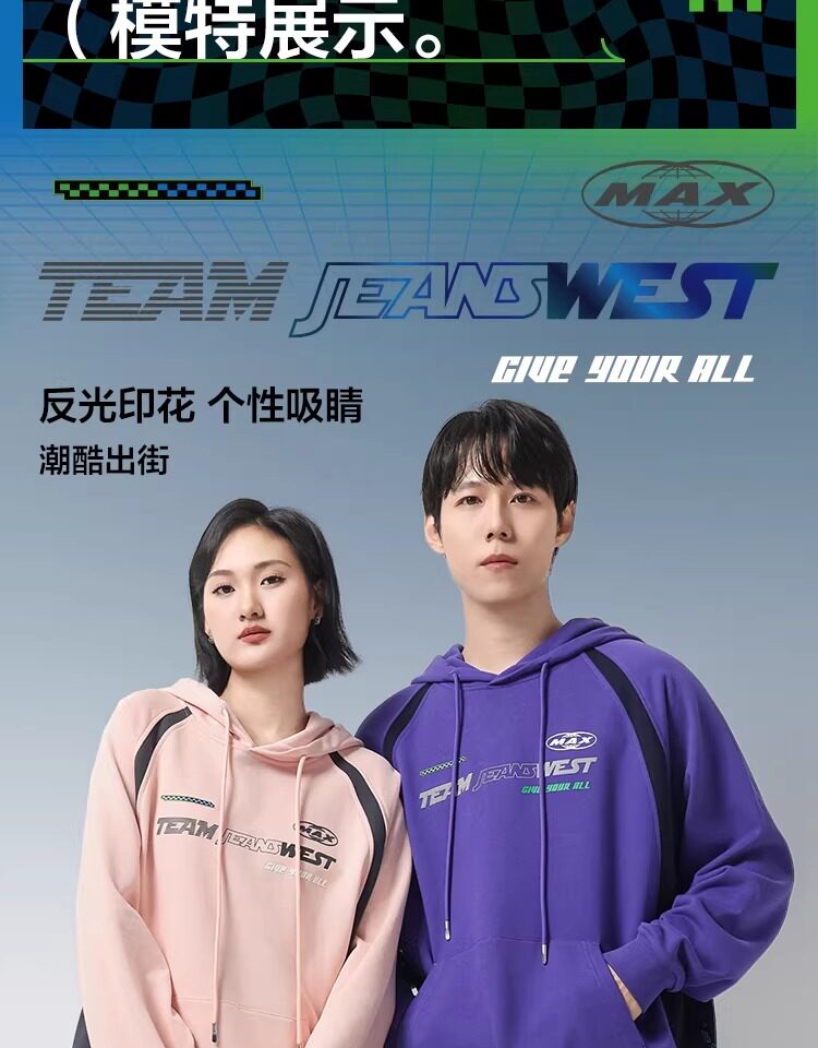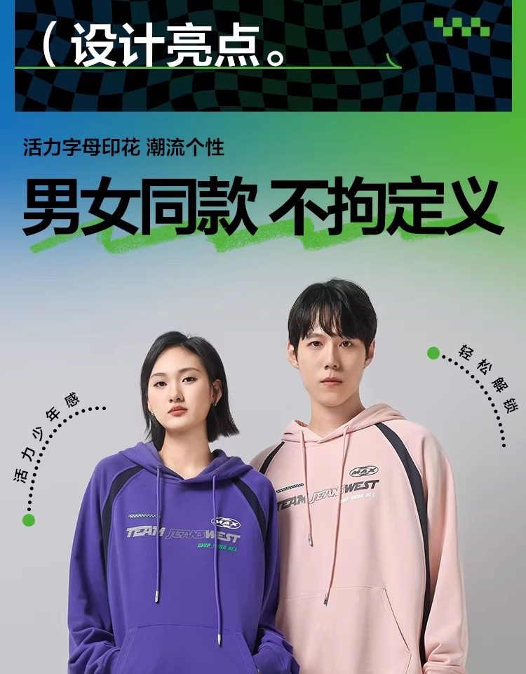 【王一博同款】真維斯男女同款連帽衛衣秋季美式340G潮流上衣J9