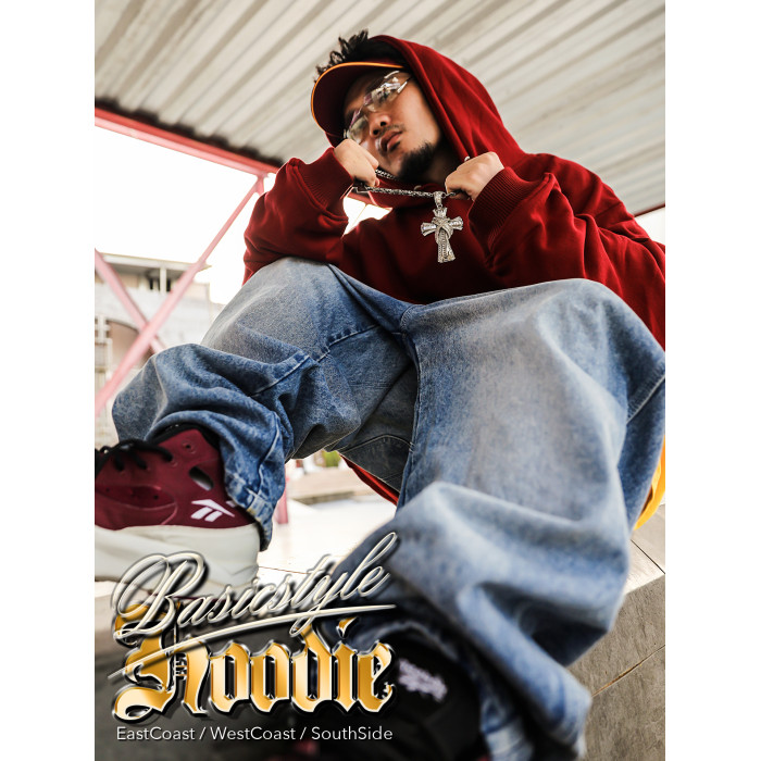 hiphop純色加絨帽衫嘻哈說唱街舞90s美式街頭寬松套頭衛衣男秋冬