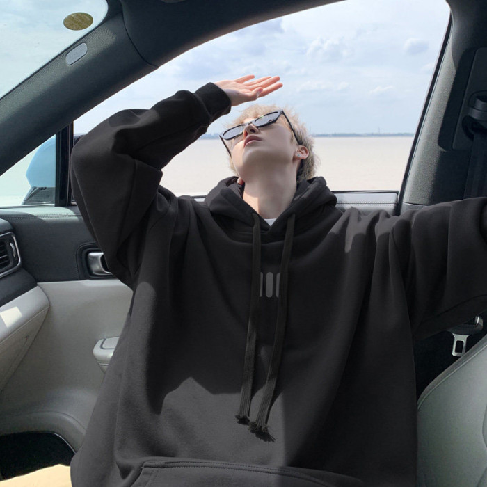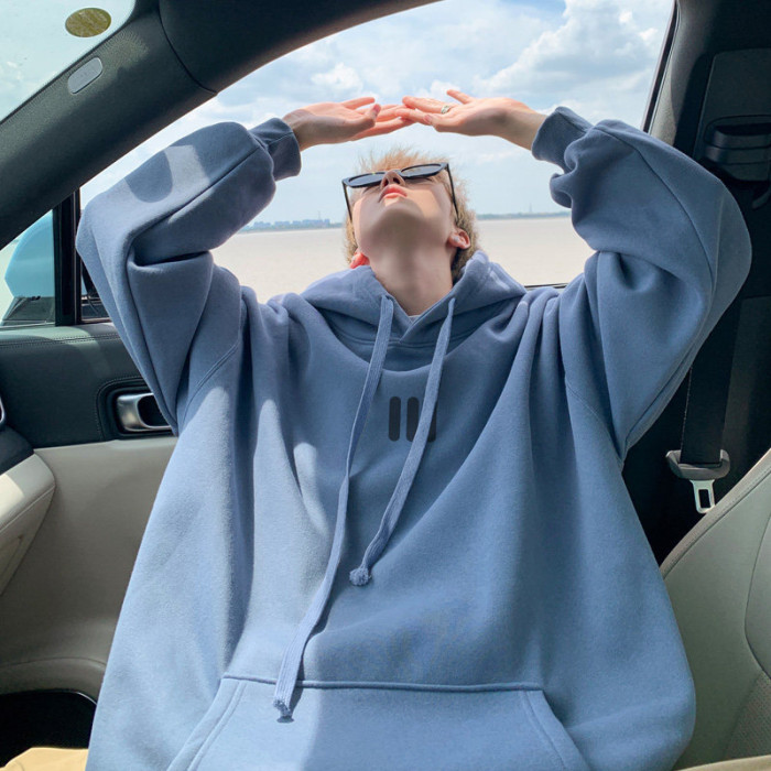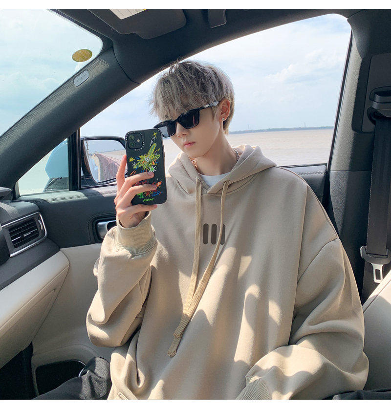 網紅600G重磅加絨衛衣男秋冬季寬松大碼打底衫情侶裝顯瘦外套潮流