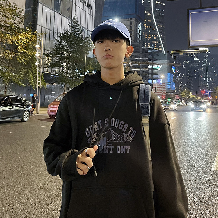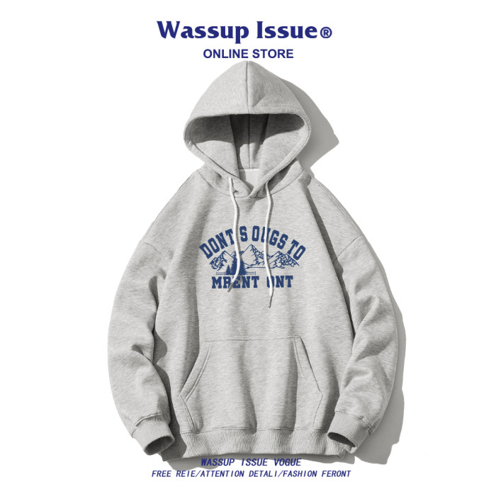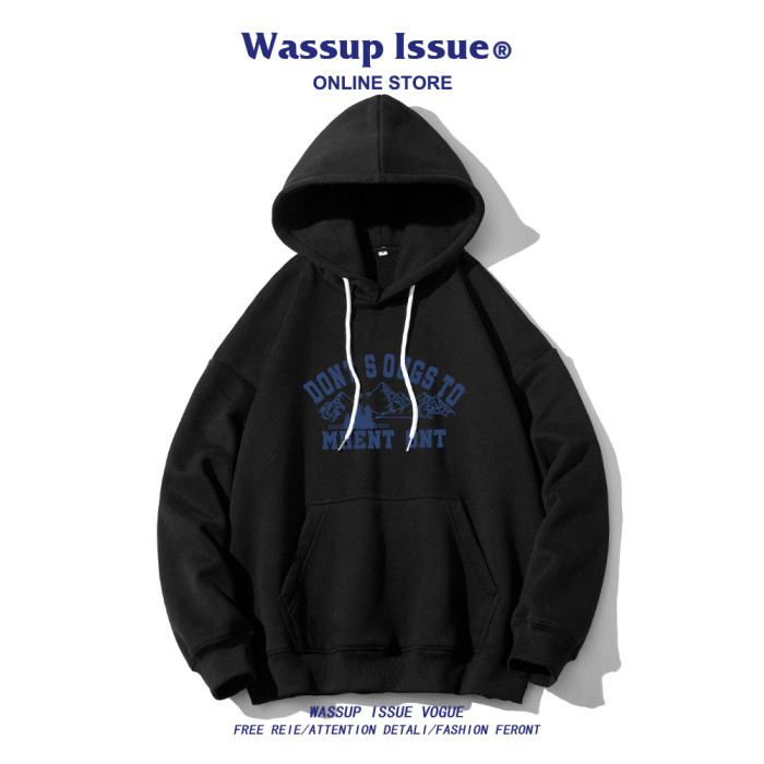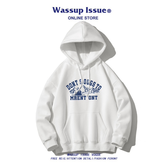 WASSUP ISSUE日系復古雪山印花連帽衛衣男款春秋潮牌街頭百搭上衣