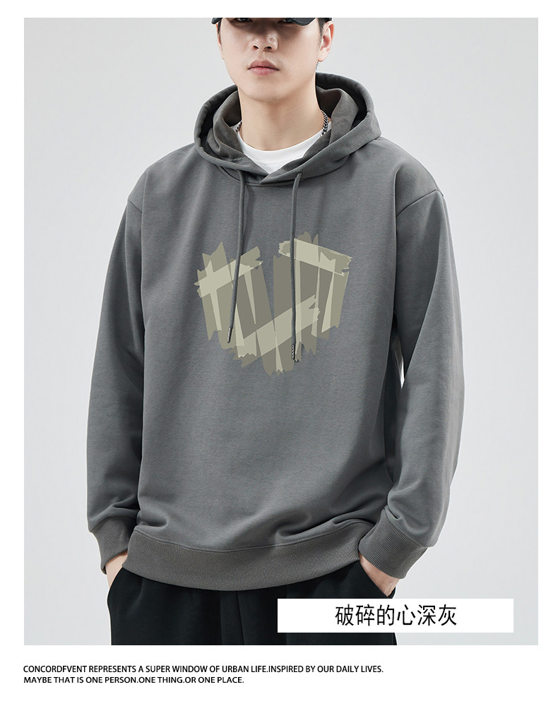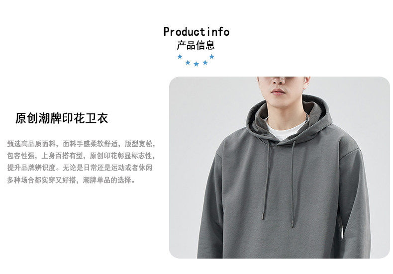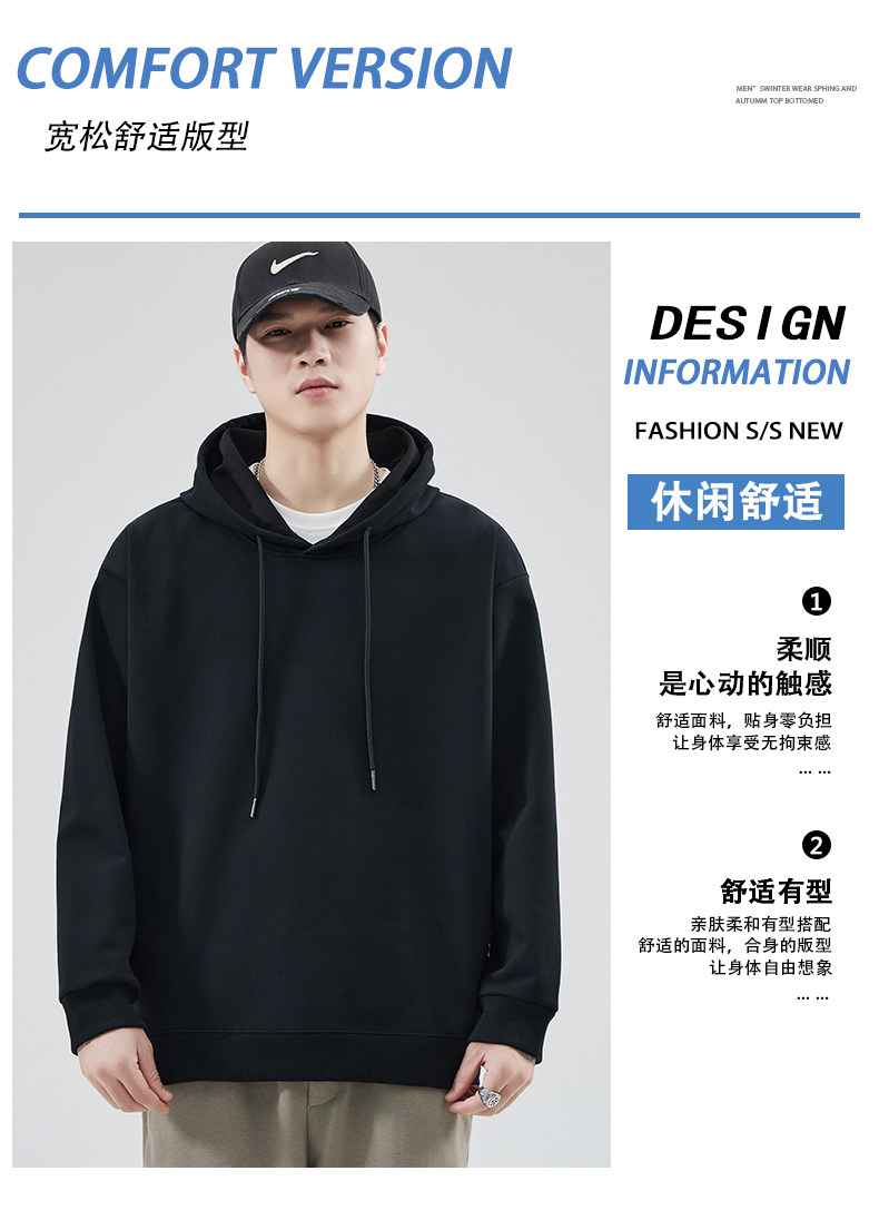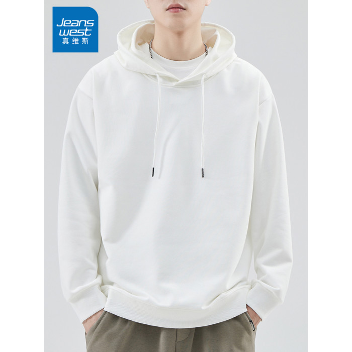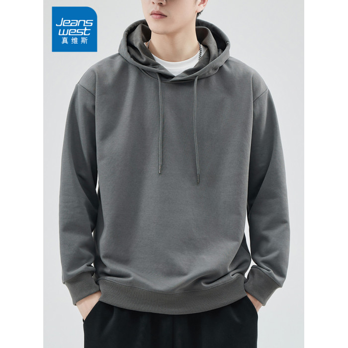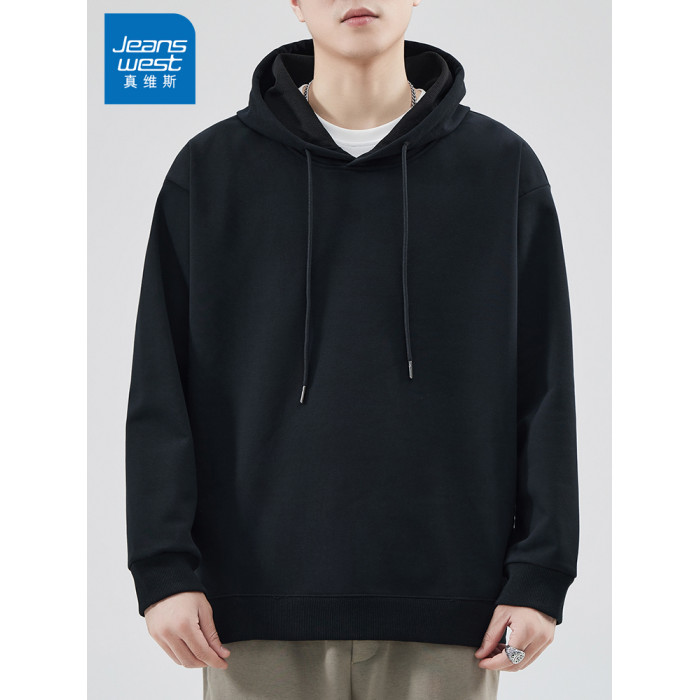 真維斯時尚連帽衛衣男士春秋季加絨潮牌美式寬松上衣青少年打底衫
