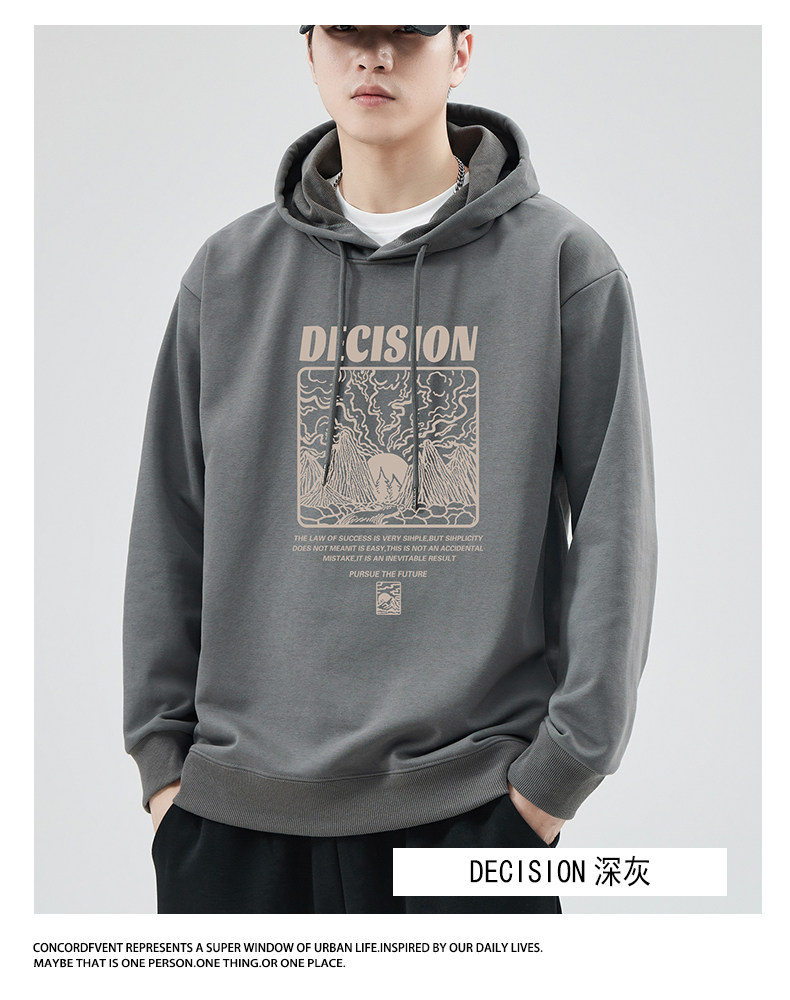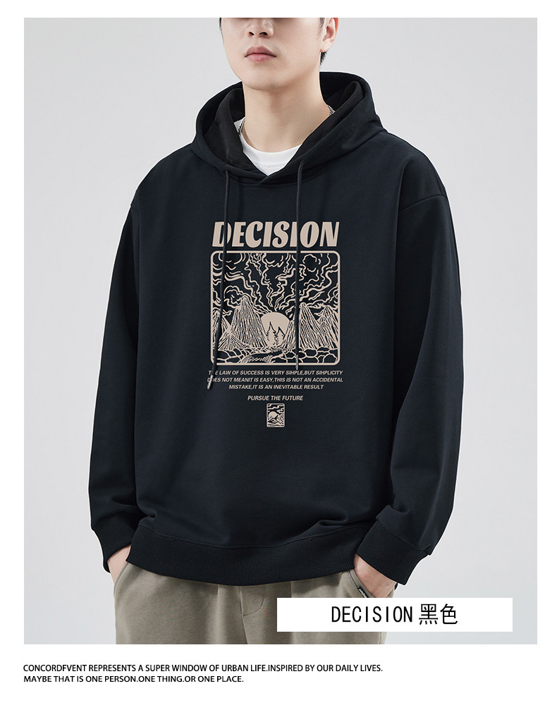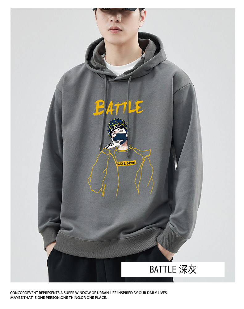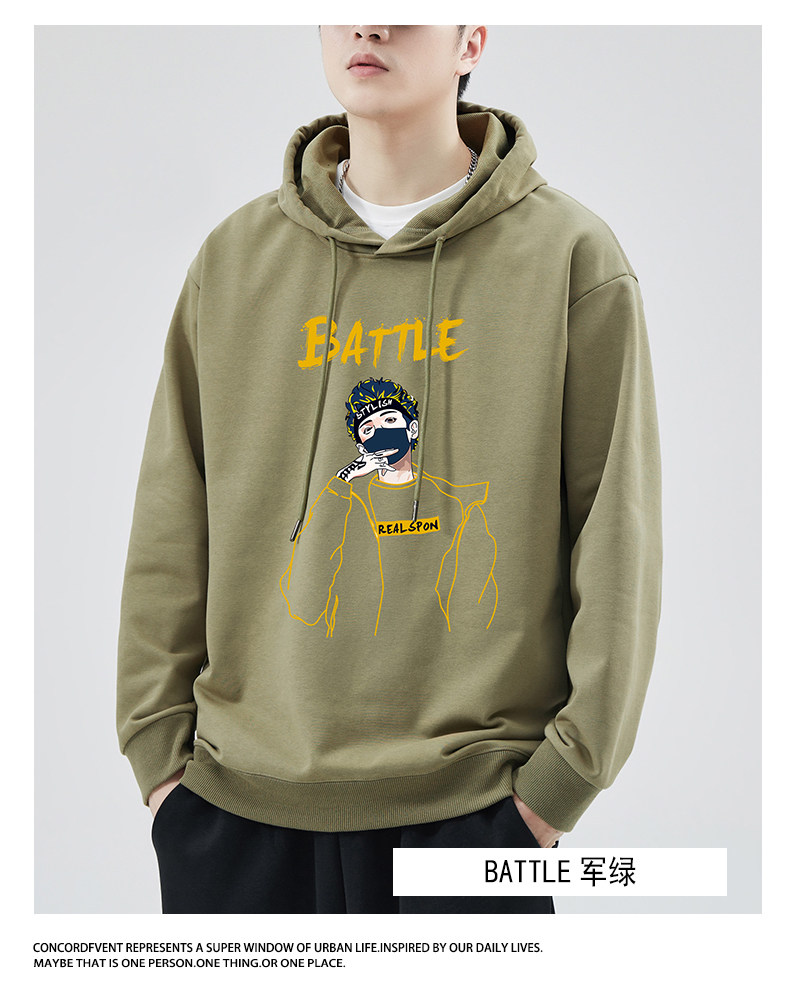 真維斯時尚連帽衛衣男士春秋季加絨潮牌美式寬松上衣青少年打底衫