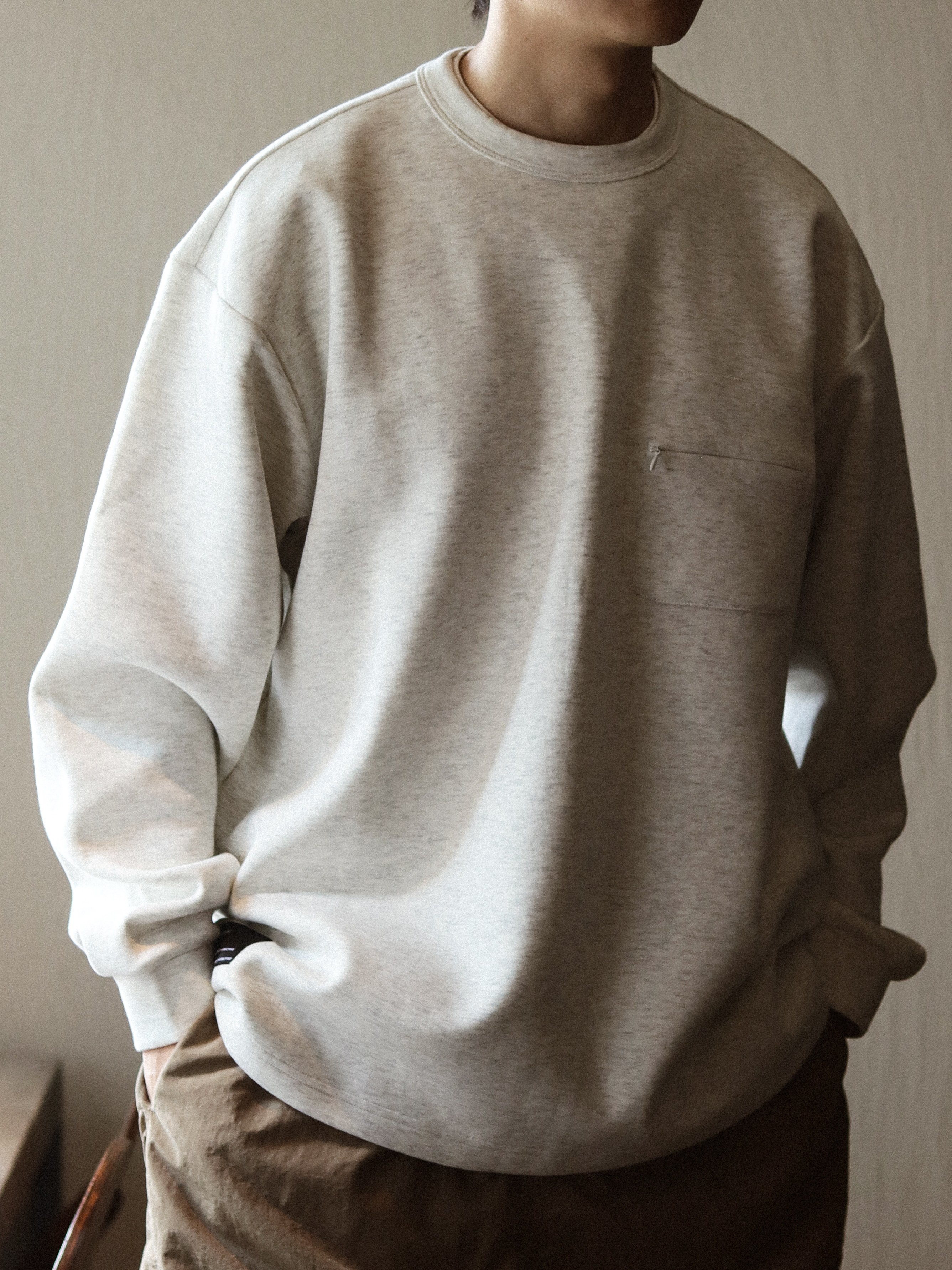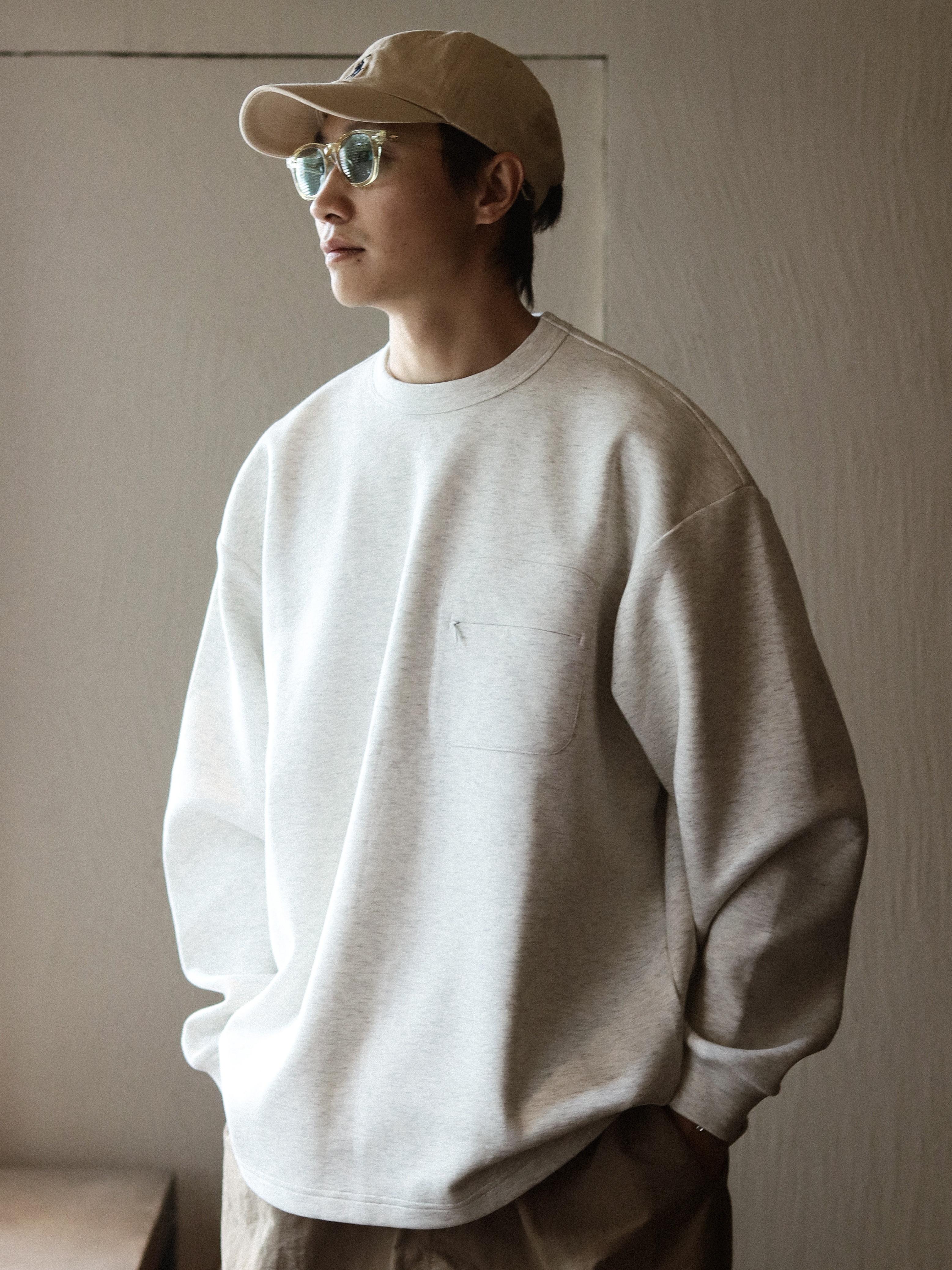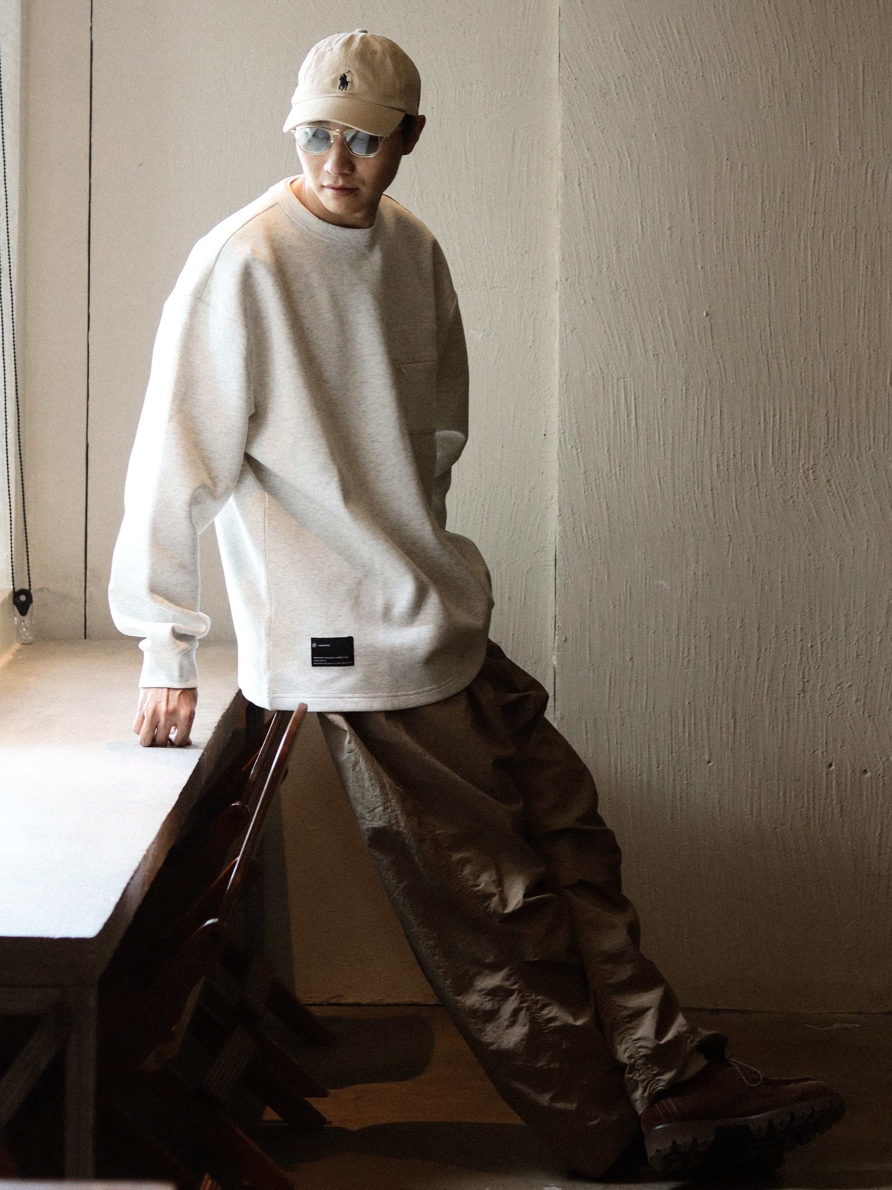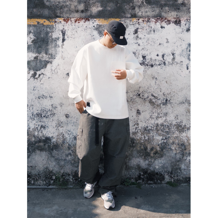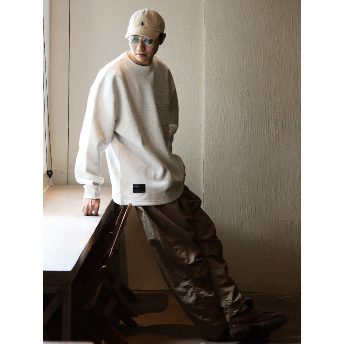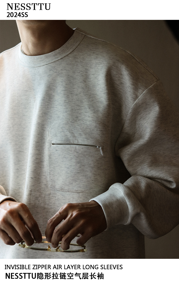 NESSTTU 24SS日系空氣層圓領長袖衛衣春季新款寬松休閒基礎上衣男